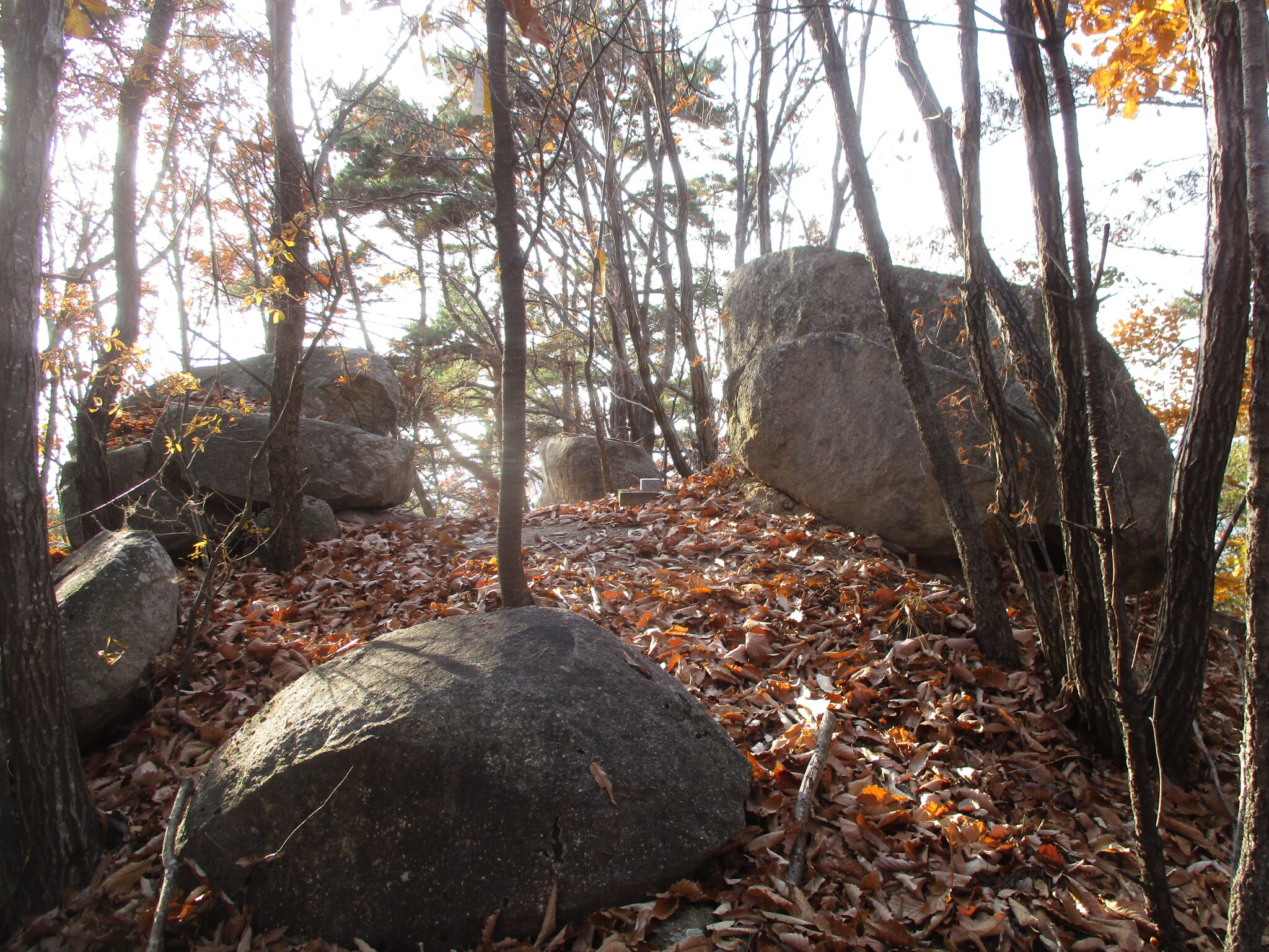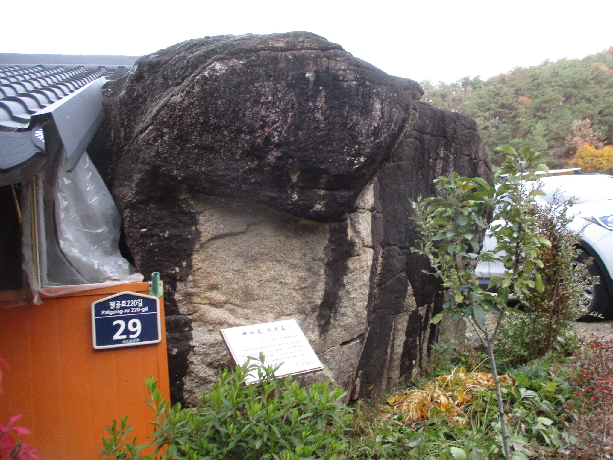 백련사 지붕 사이에 낑기가 있는 바우가 먼공 시퍼가 가차이 가보이 백안동지석묘라고!~