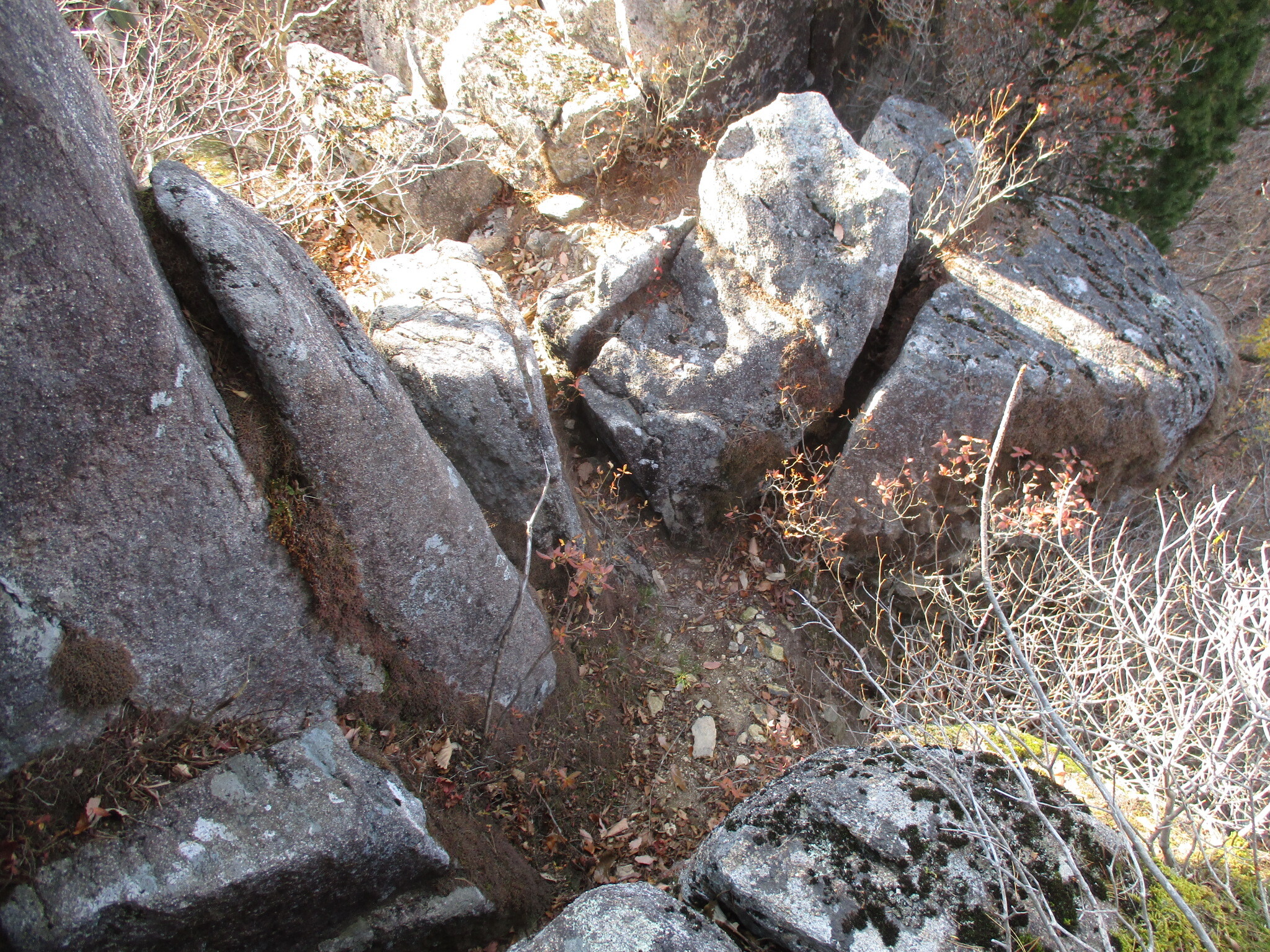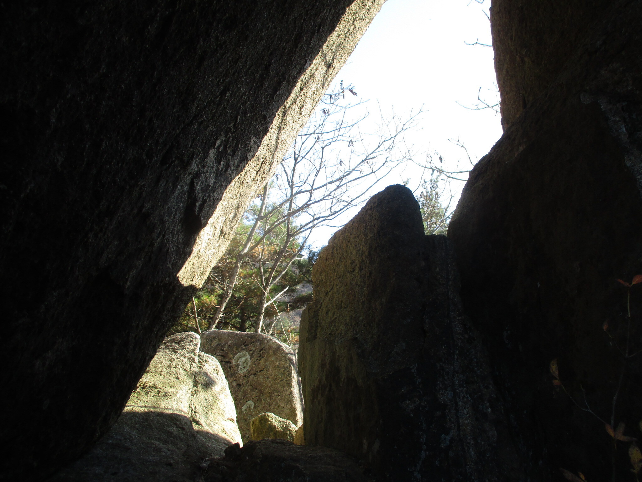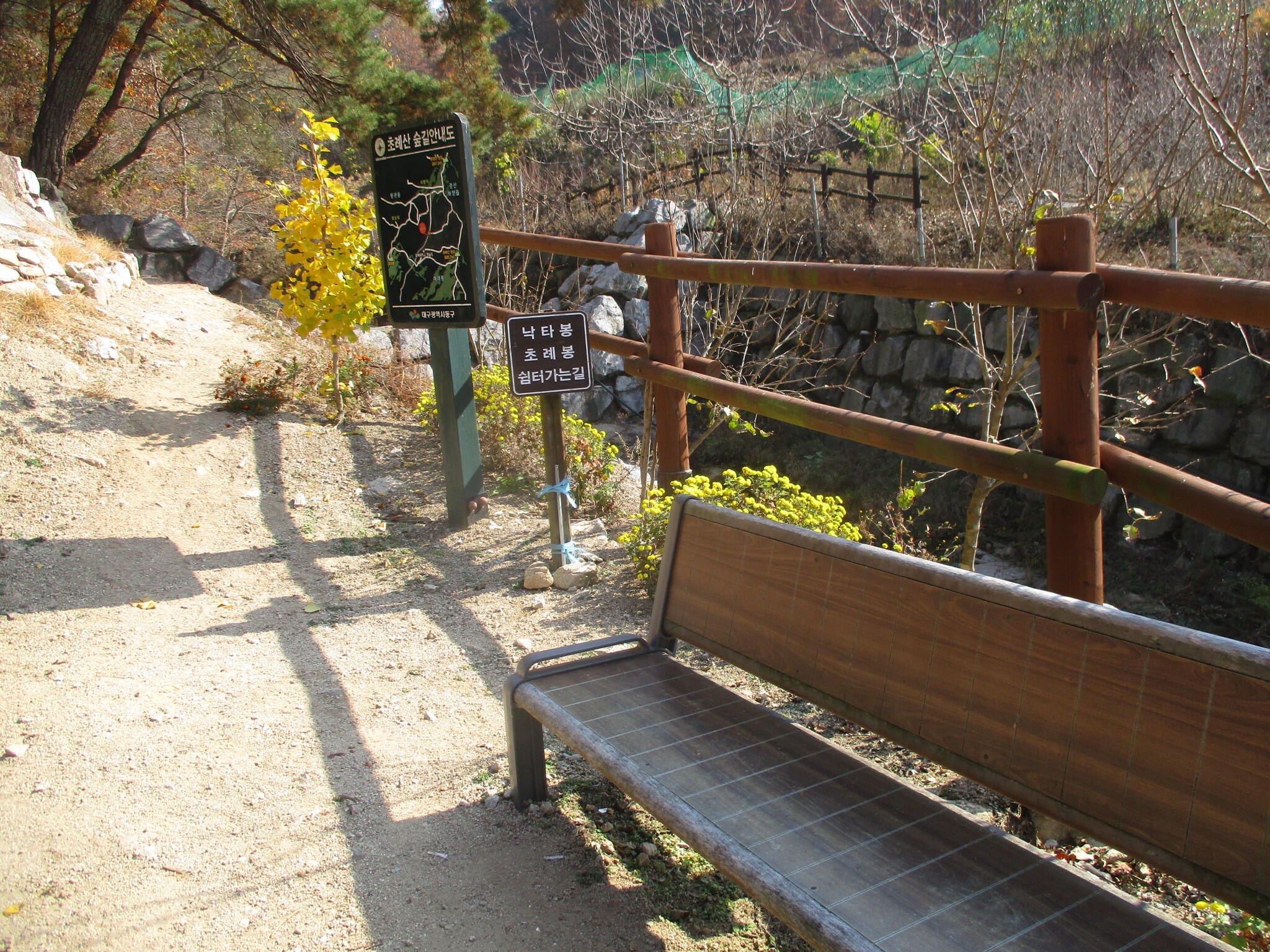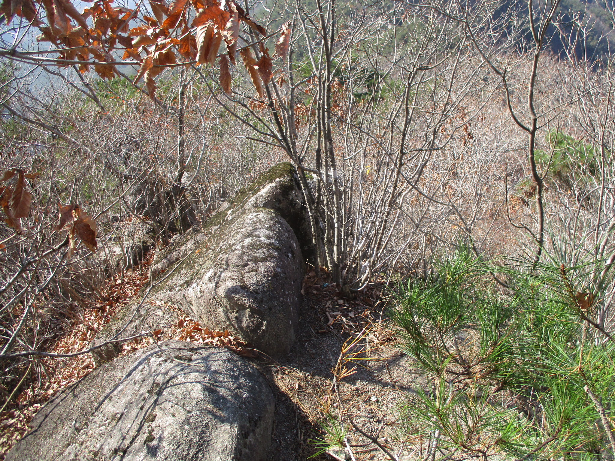 왼쪽으로 휘어져 미끄러분 길을 조슴조슴 내리서면 만나는 봉우리에서도 왼쪽 우회길로 들어서고~, 이끼긴 바우에서는