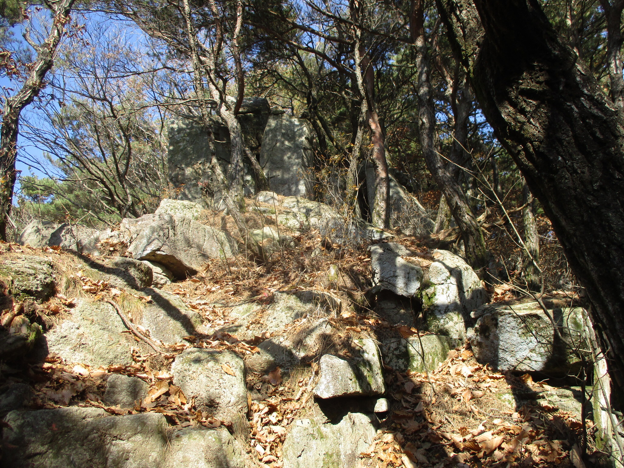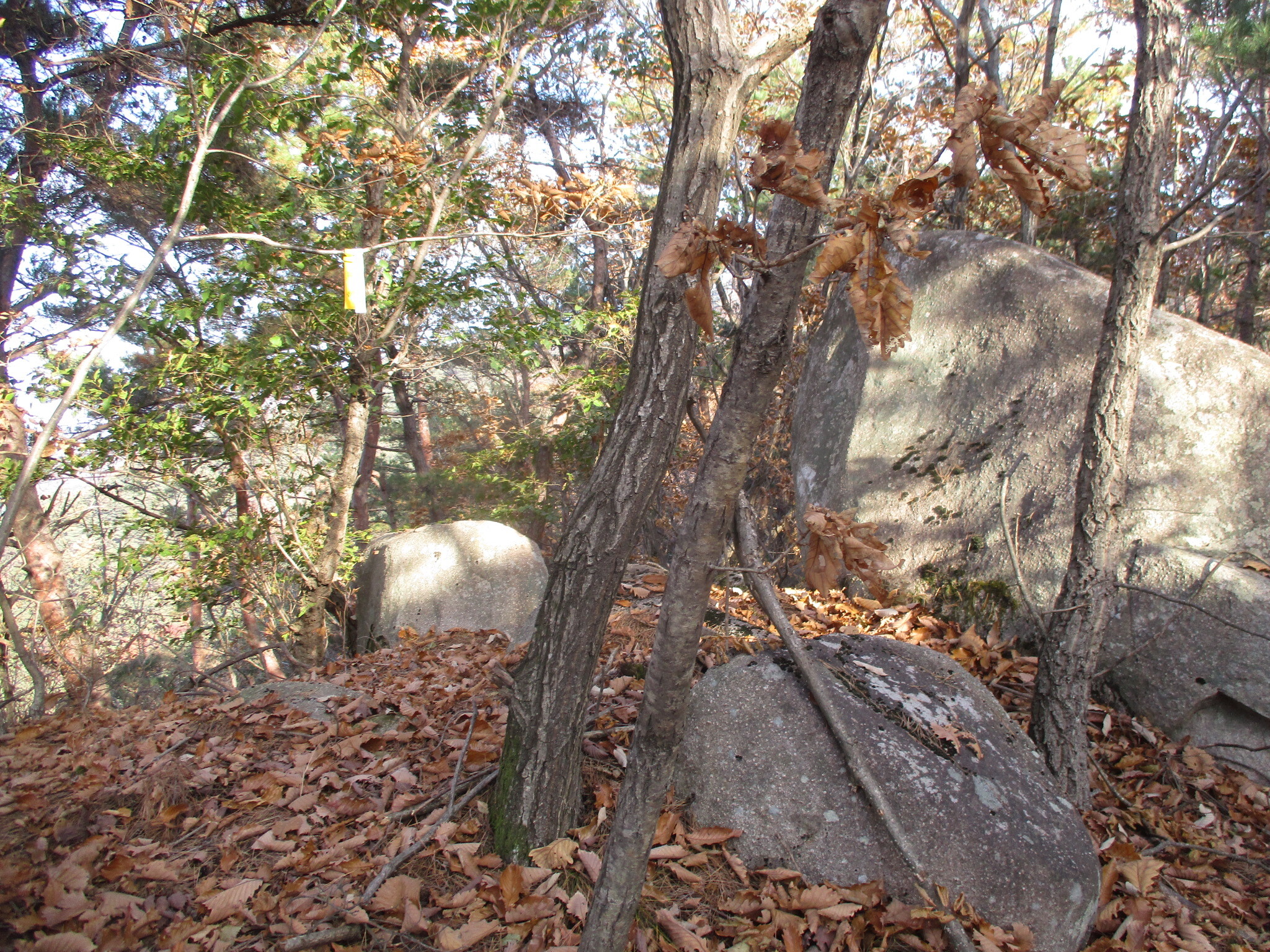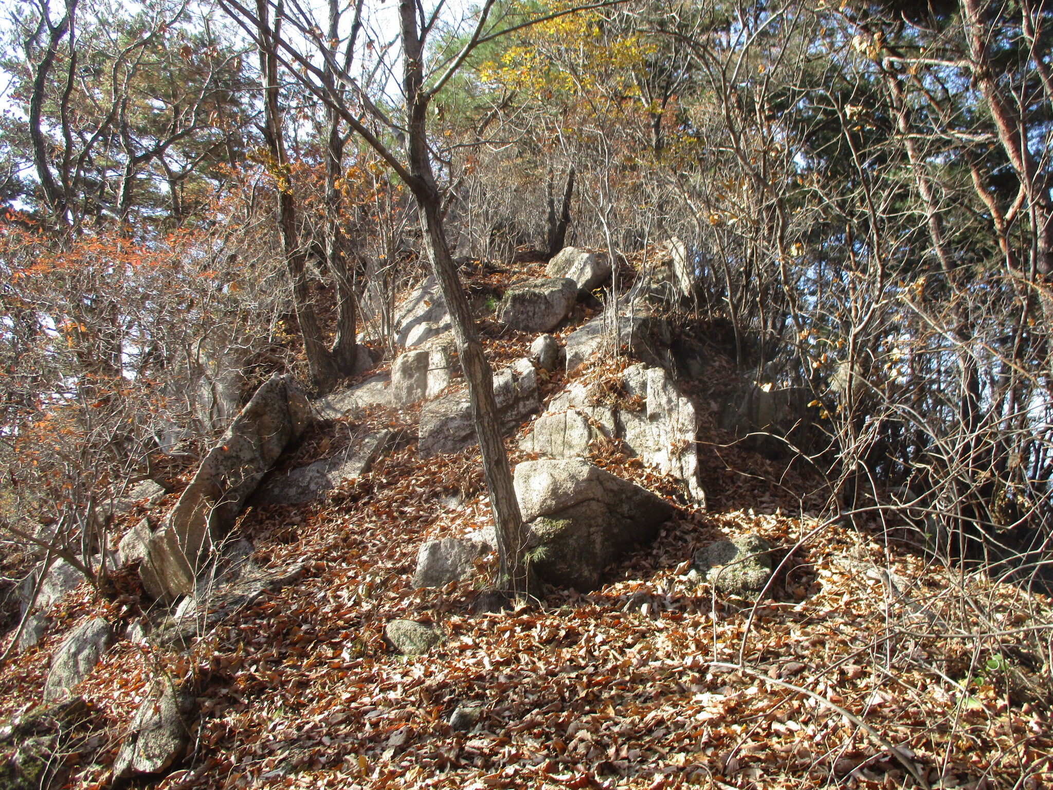 안부~바위봉우리 오름~미끄러운 마사토길~570.4봉~밋밋한 봉우리 지나~오른쪽 바위봉우리 오르지 않고 왼쪽