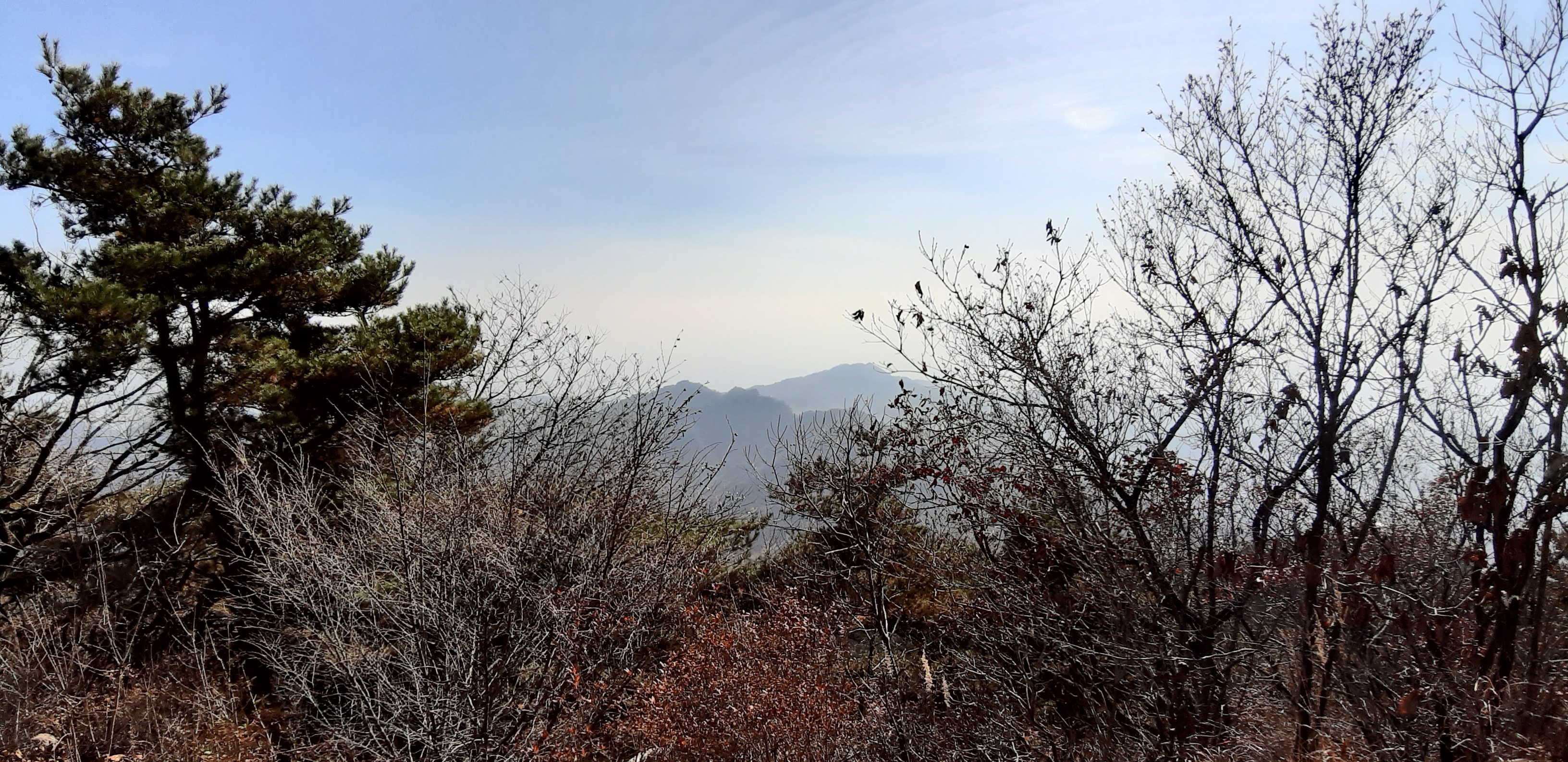 오른쪽 나무가지 사이로 보이는 팔공산 주능선이 명산답게 우람한 알통을 자랑하고 있다!~