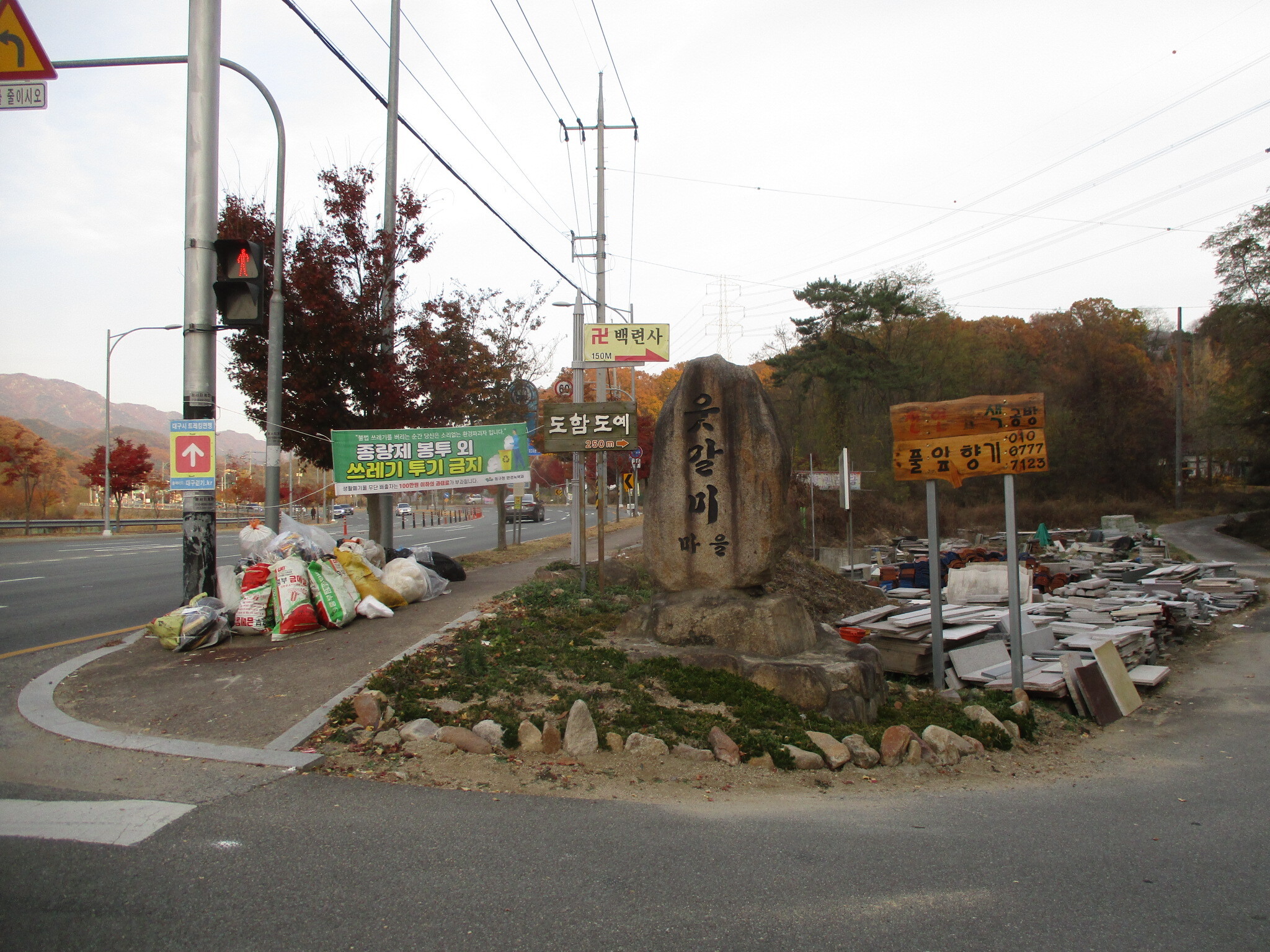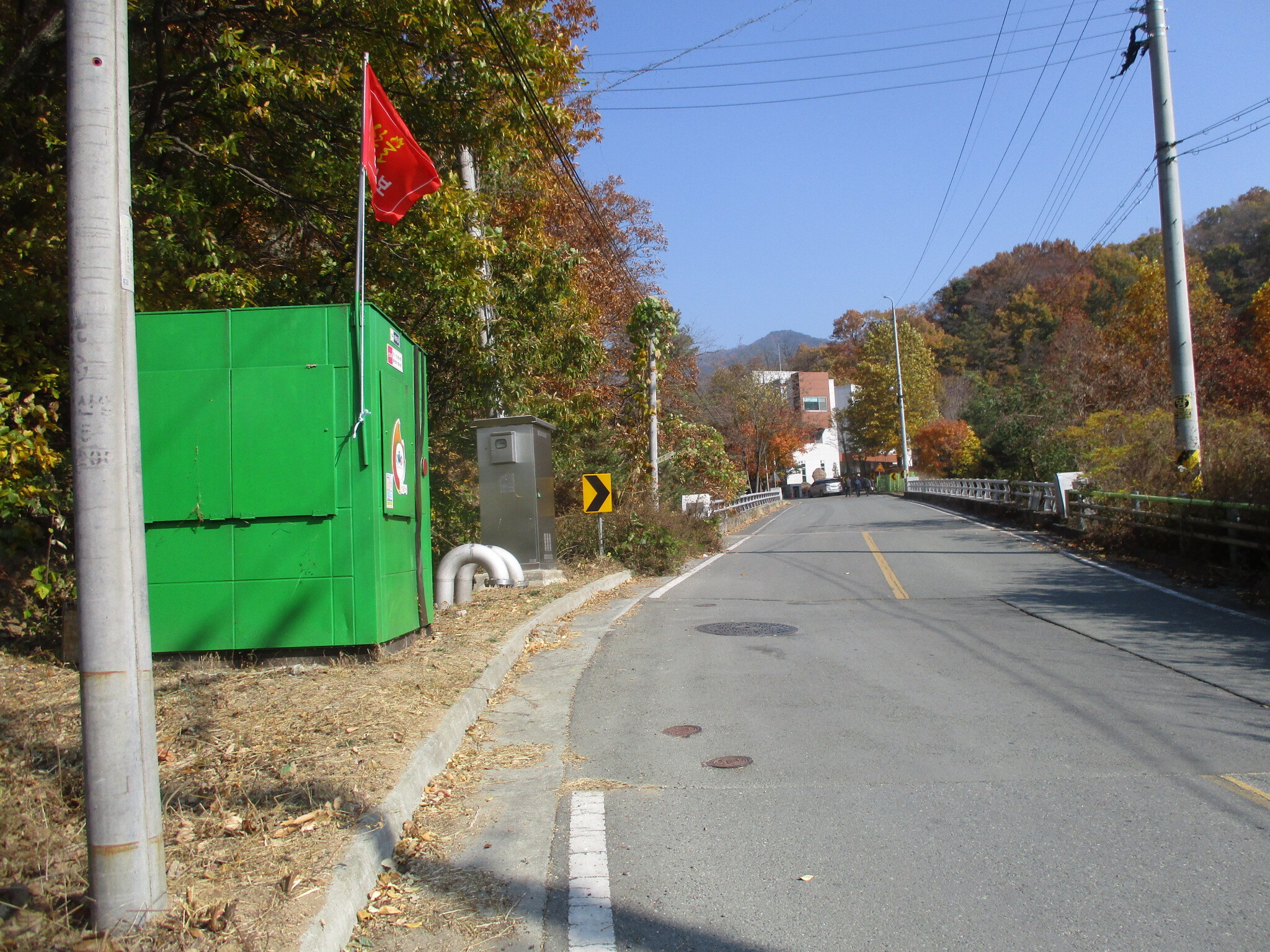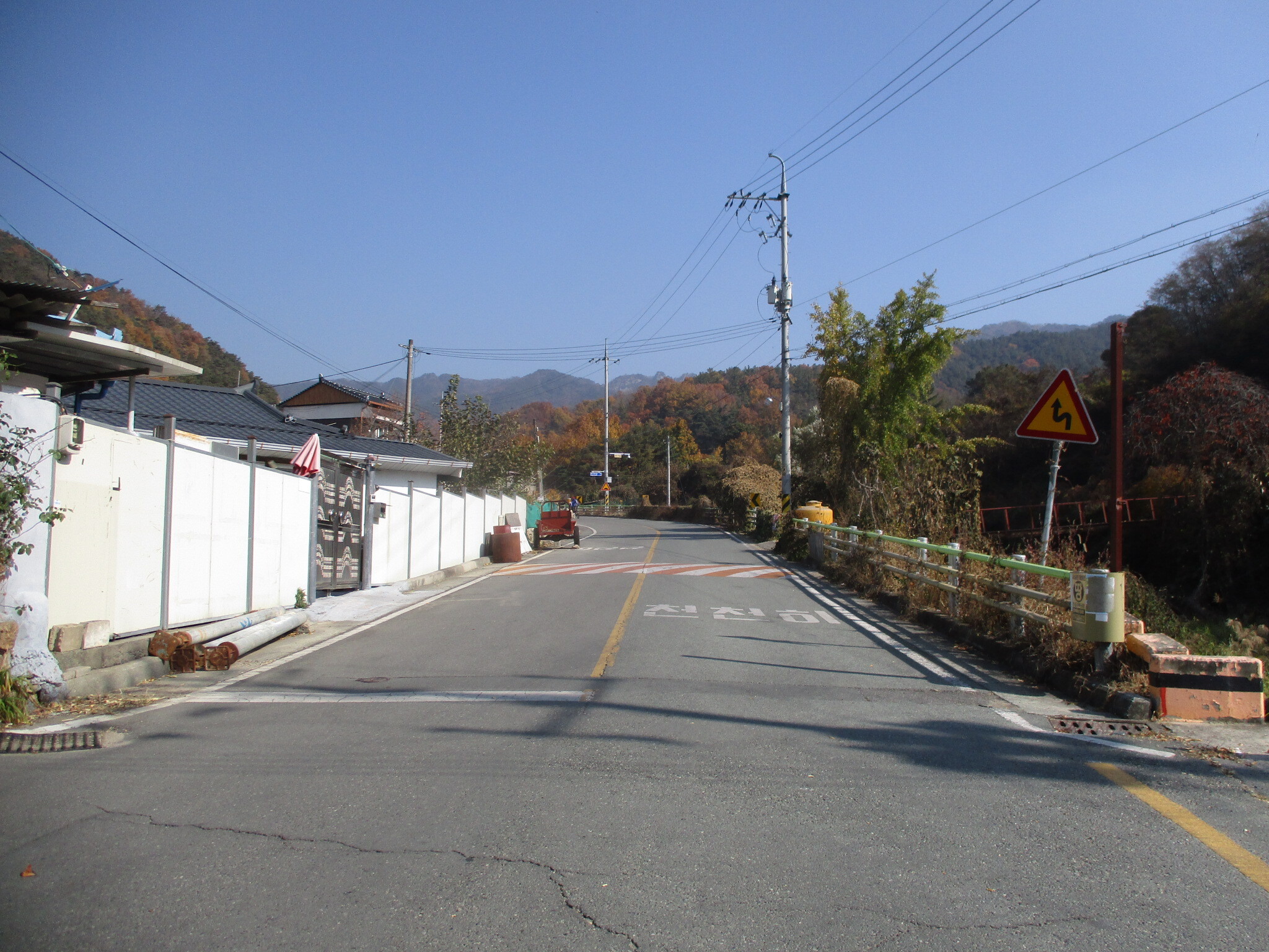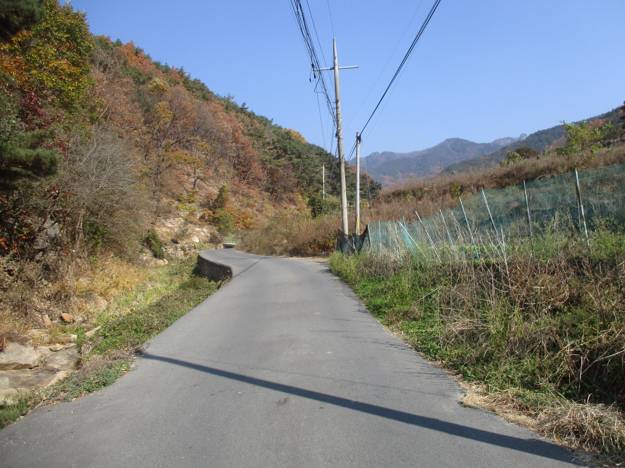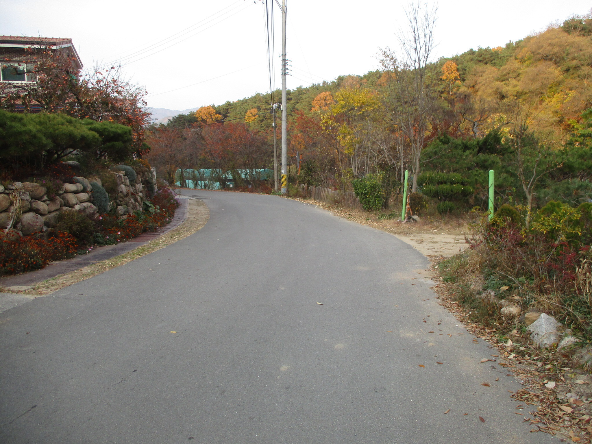 넓은 길을 따라 내리오면 웃갈미마을 포장도로로 내리서게 되고~