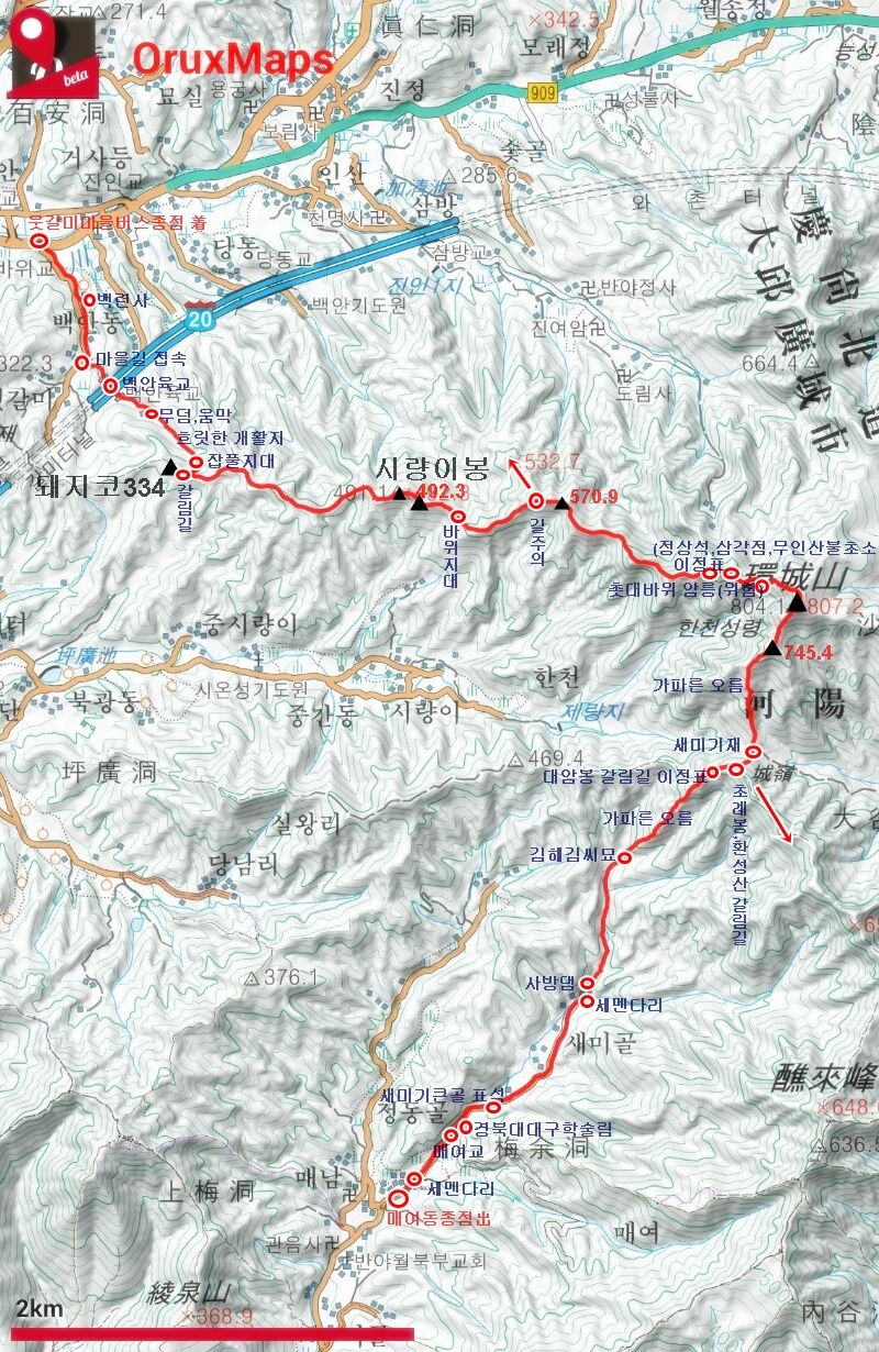 2.어디를: 대구시 동구 매여동 새미기골로 환성산에 올라 팔공산을 조망하며 서쪽 능선을 걷다!~
