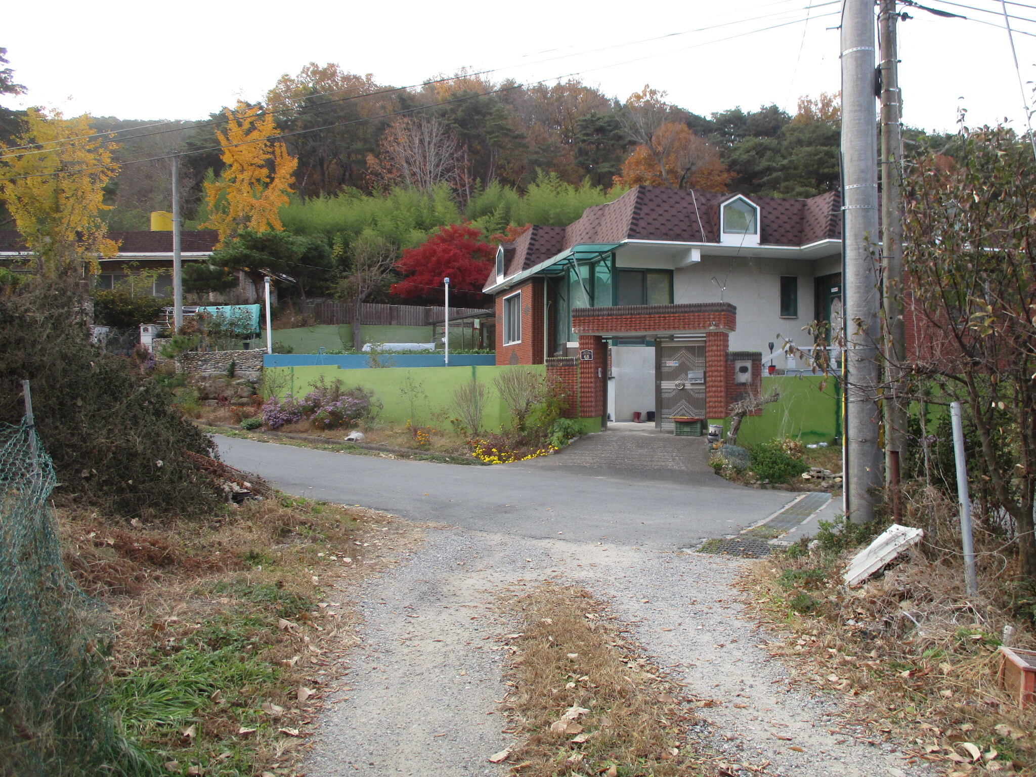 직진해 올라서마 이넘의 골짝 구석구석에도 참한집들이 더러 눈에 띤다!~ 뫼들 니는 저 참한 집에서 살겠나?~ 시러시러!~