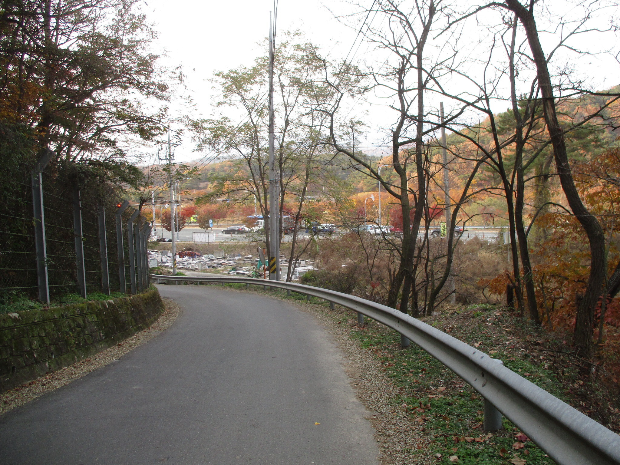 철책 왼쪽으로 뚜렷한 길을 따라 내리오이 띠띠빵빵 소리가 요란타!~ 사람 사는 세상으로 내리왔다!~