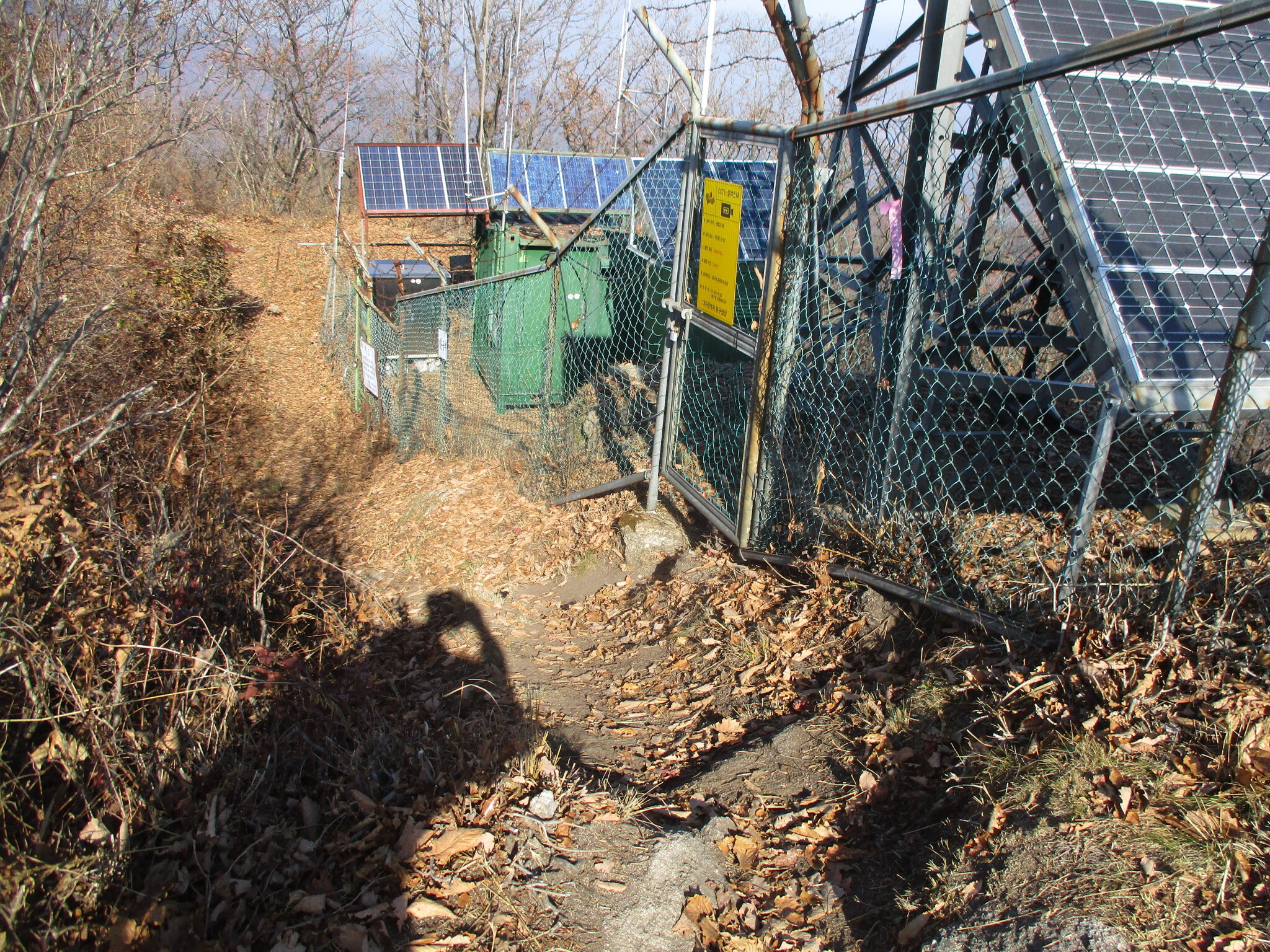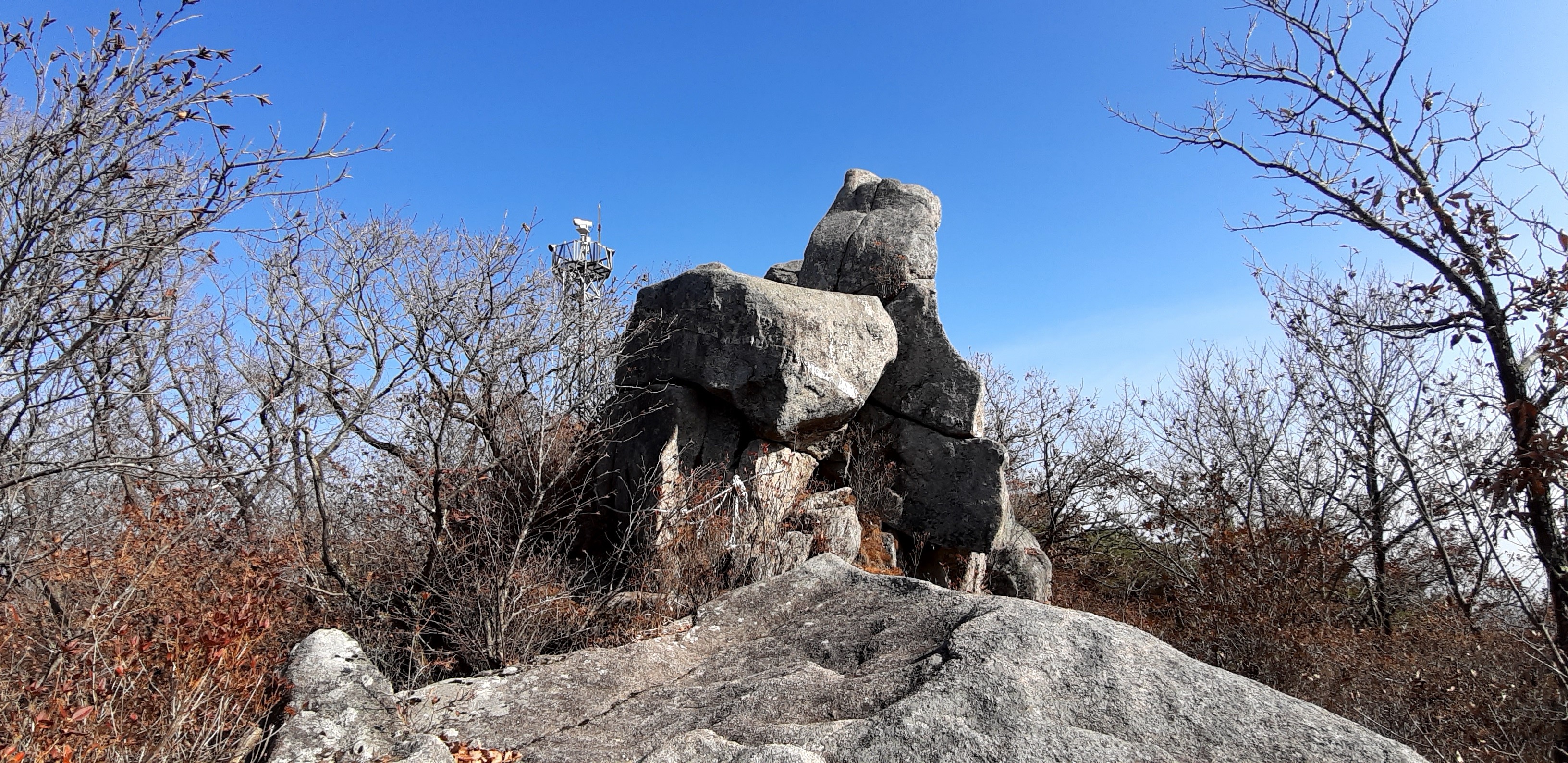 정상석,삼각점, 무인산불초소)~왼쪽 무인 산불감시초소 방향(갓바위)~갈림길 이정표 왼쪽 인산마을 방향~