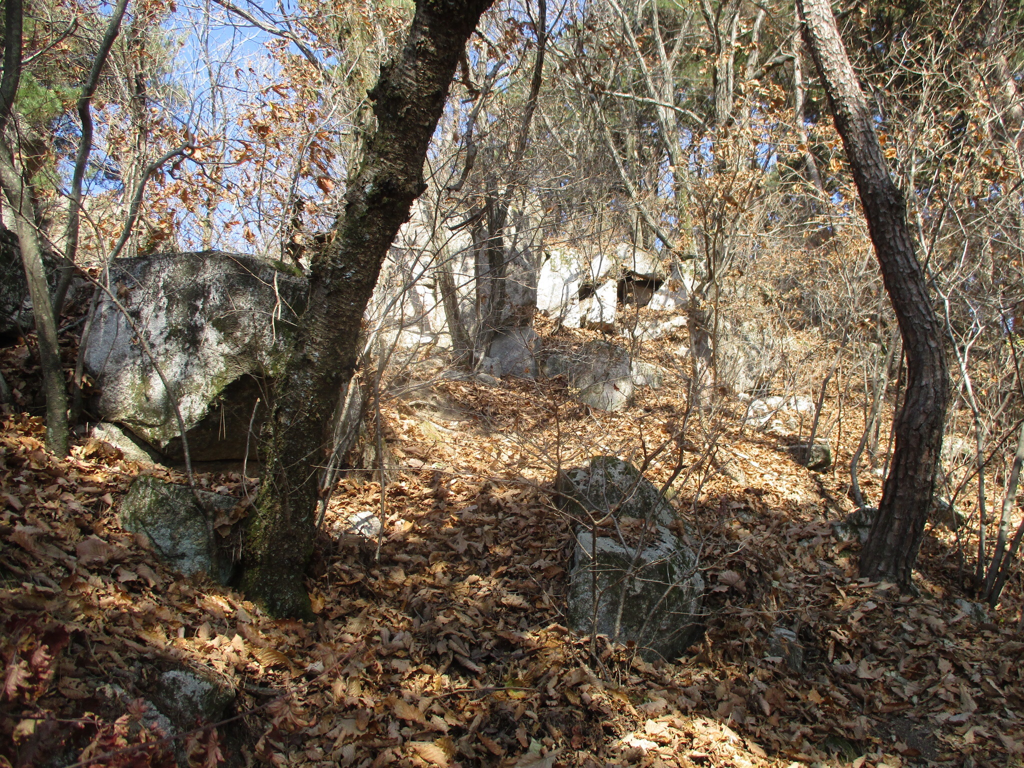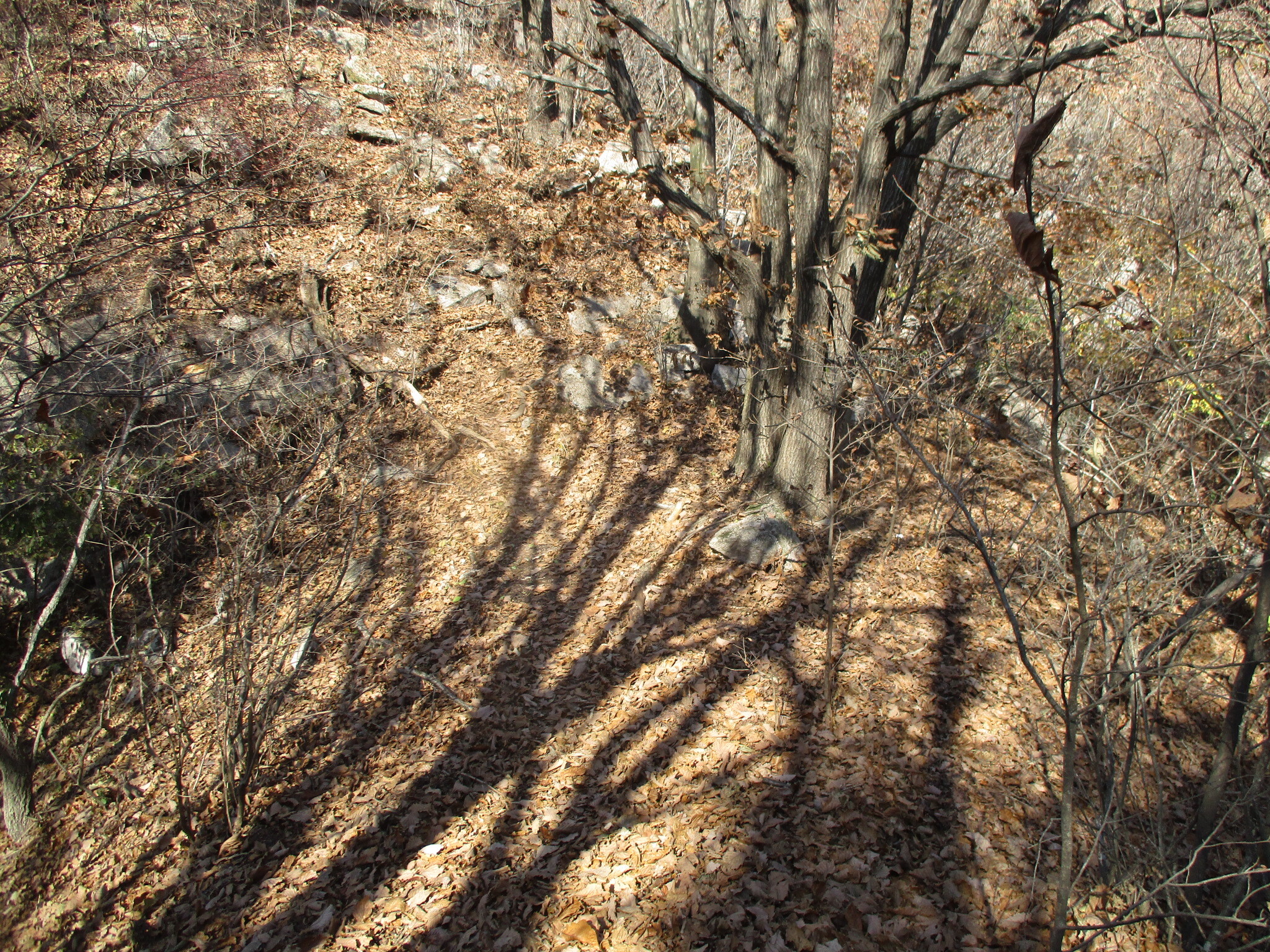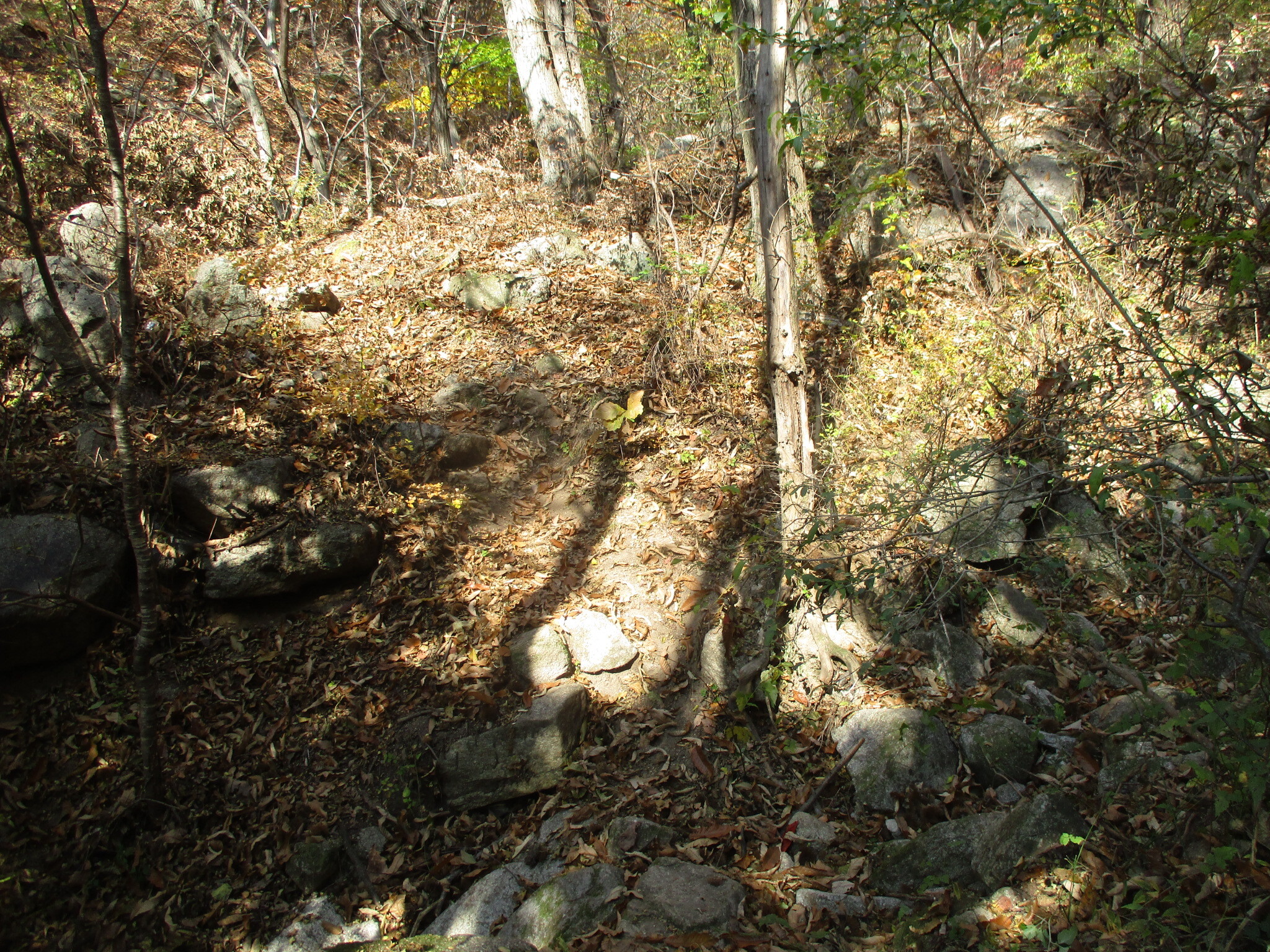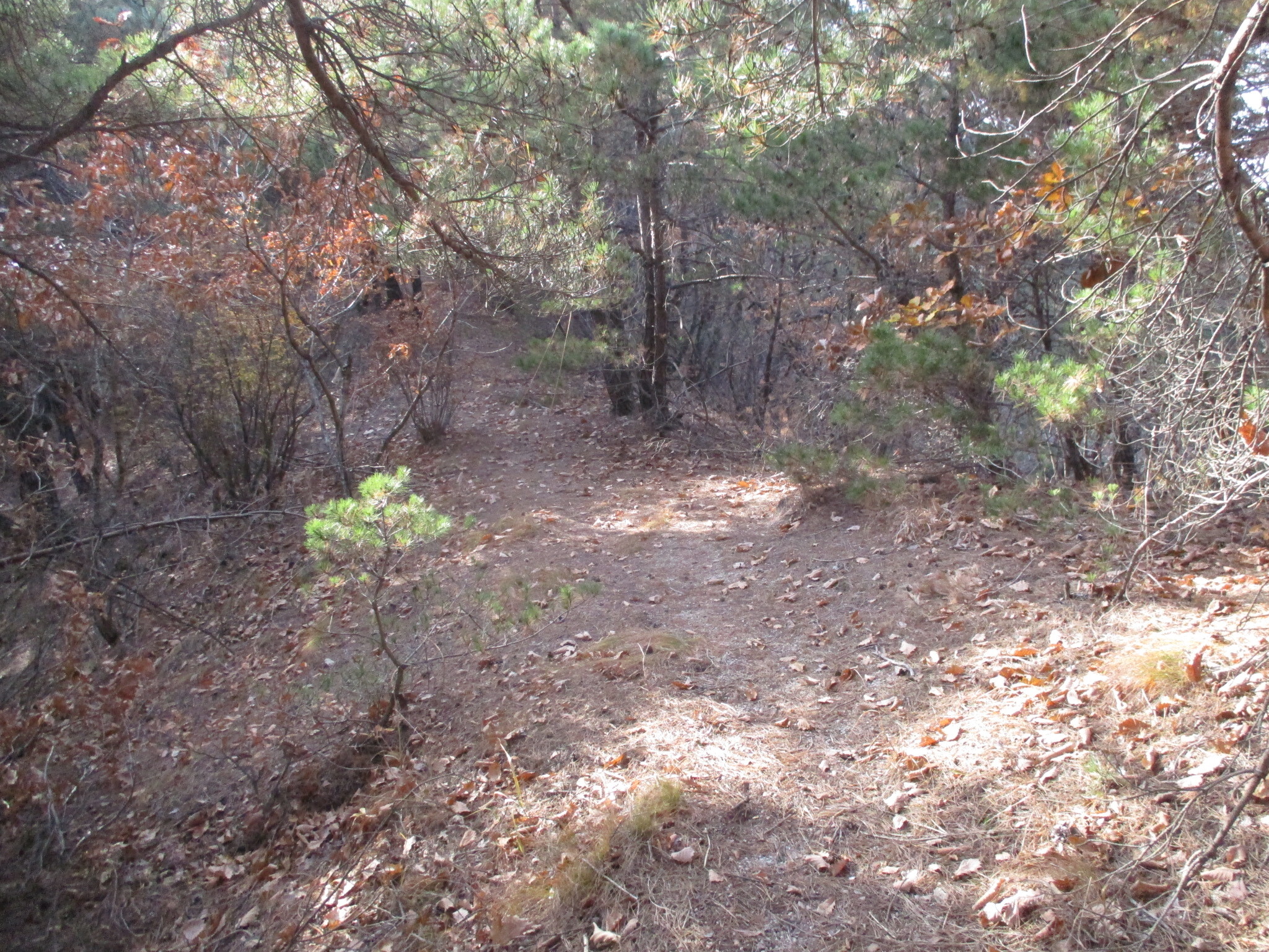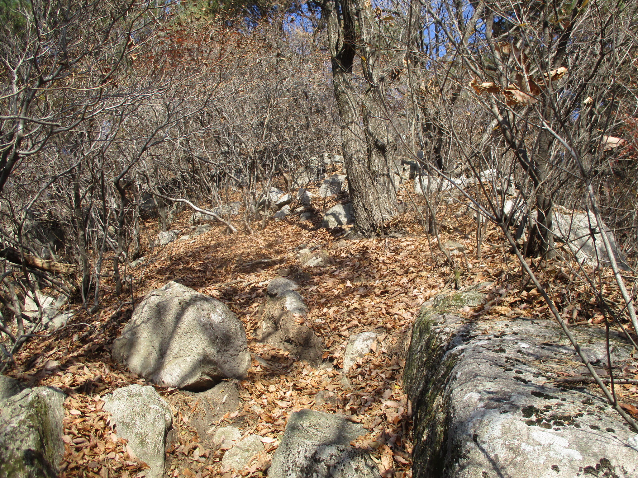 예전에 밭이었던지 과수원이었던지 계단식 경작지 흔적이 보이는 개활지가 티나온다!~ 뚜렷한 길은 없지만 군데군데 보이는