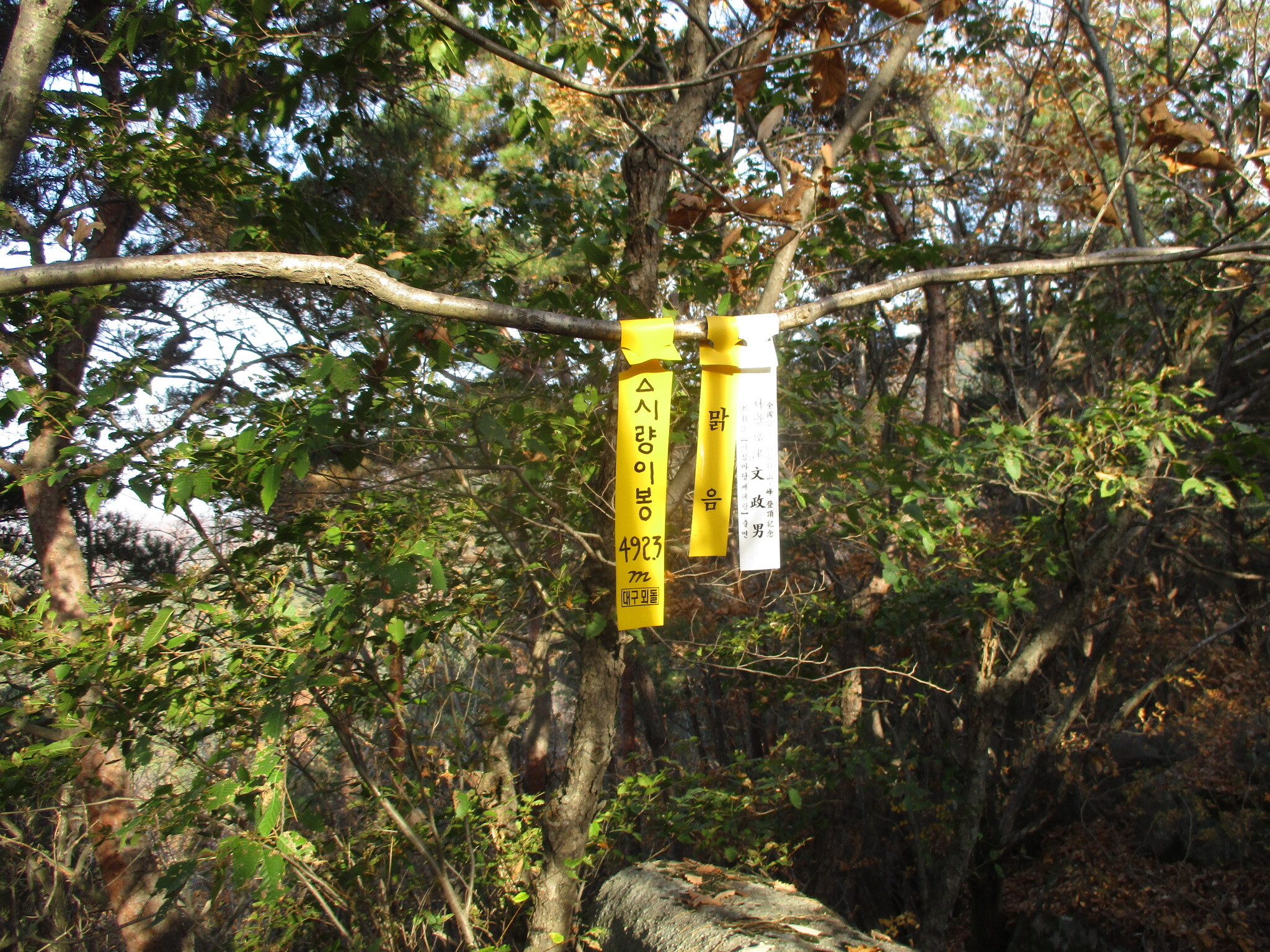 걸어두고~ 마산 산기수님은 표지기를 보이 지나간지 얼메안된긋은데 갑자기 담담님이 생각난다!~