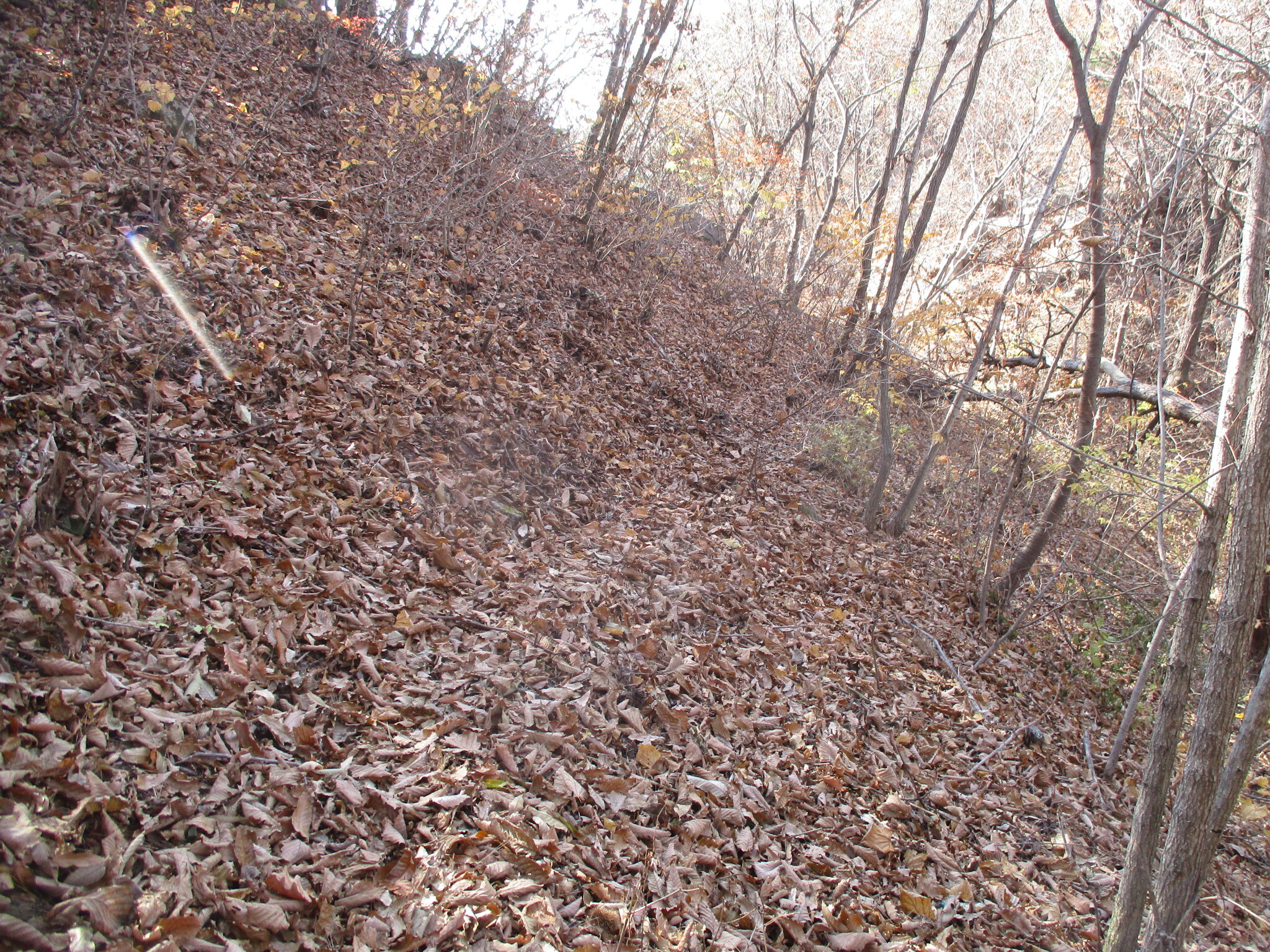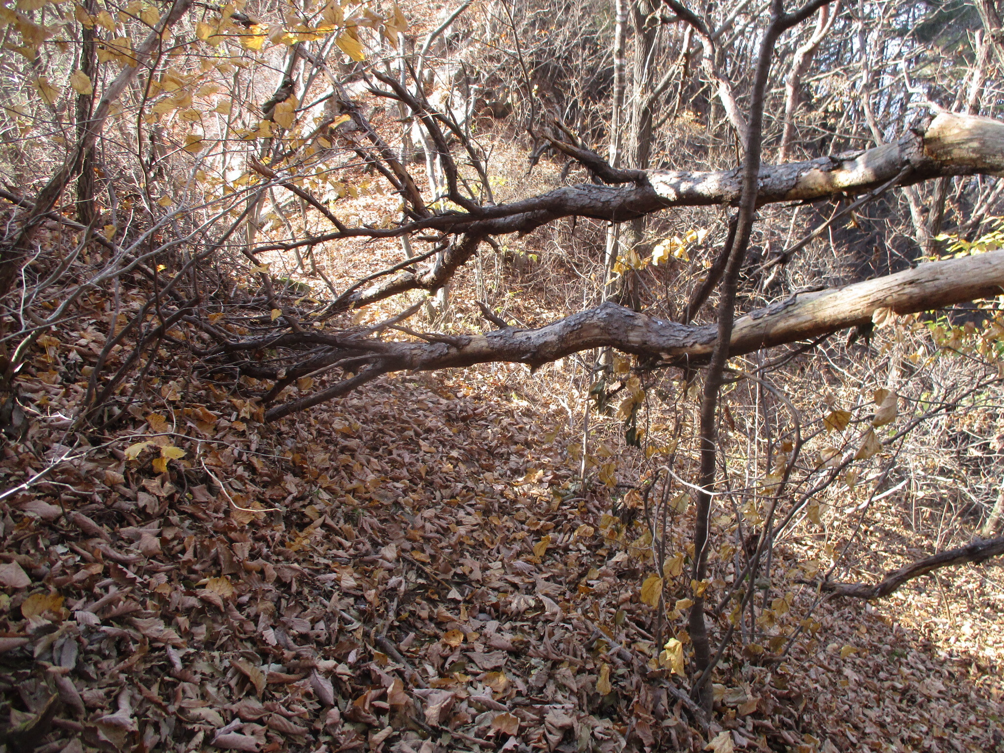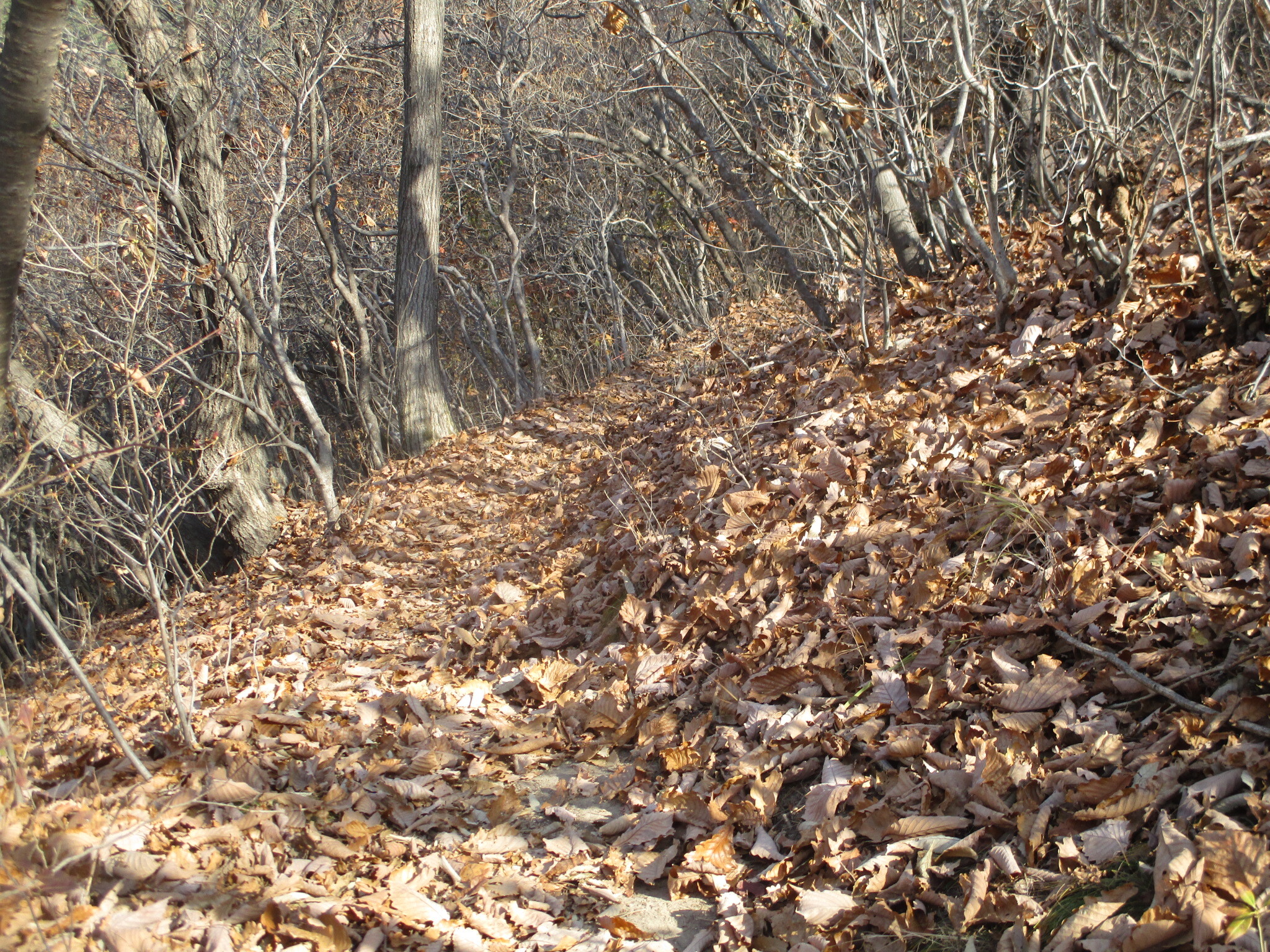 발목까지 푹푹 빠지는 낙엽길 내리막을 조슴조슴 내리서면 여도 사람 흔적이 보이네!~ 한때는 이길도 산꾼들이 마이