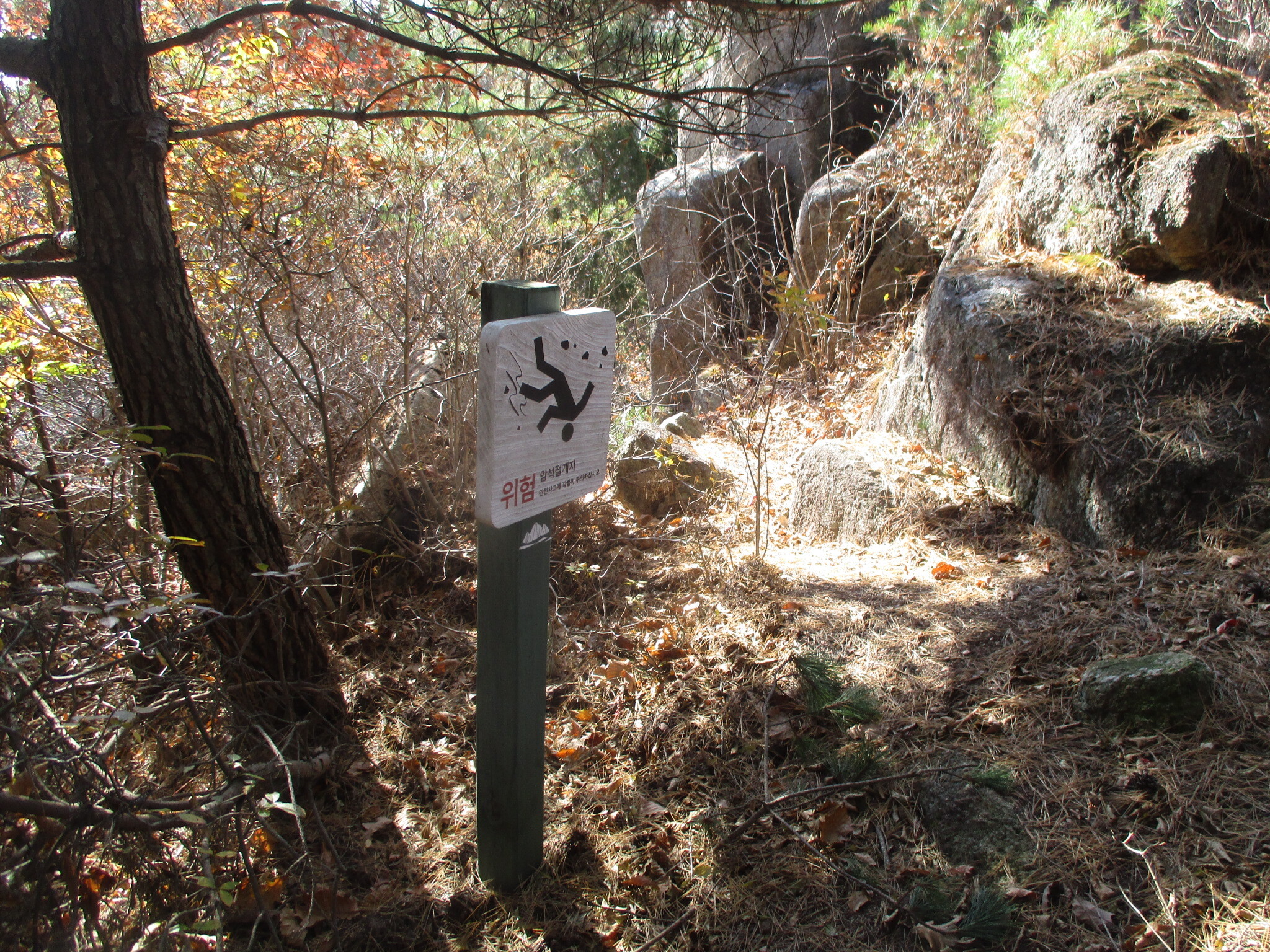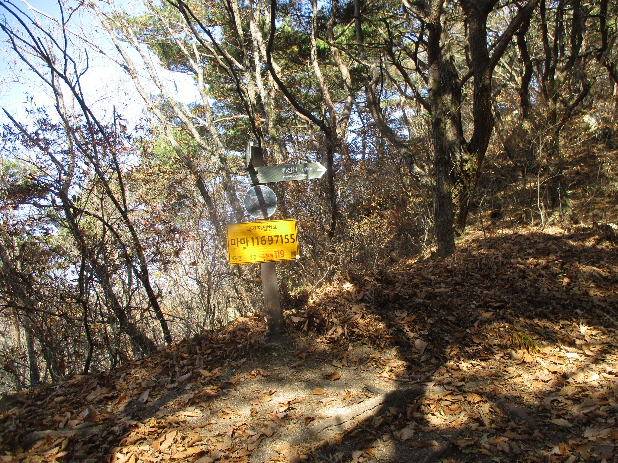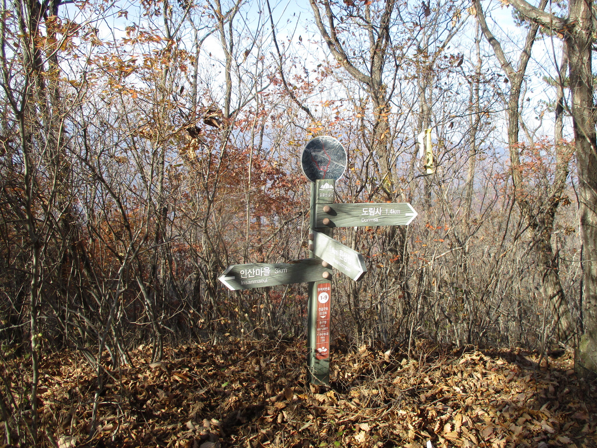 잠시 위험한 바우지대를 빠져나와 낙엽 쌓인 산길을 걸어가다 보면 오른쪽 도림사 갈림길이 보이는 곳에 연이어 이정표가