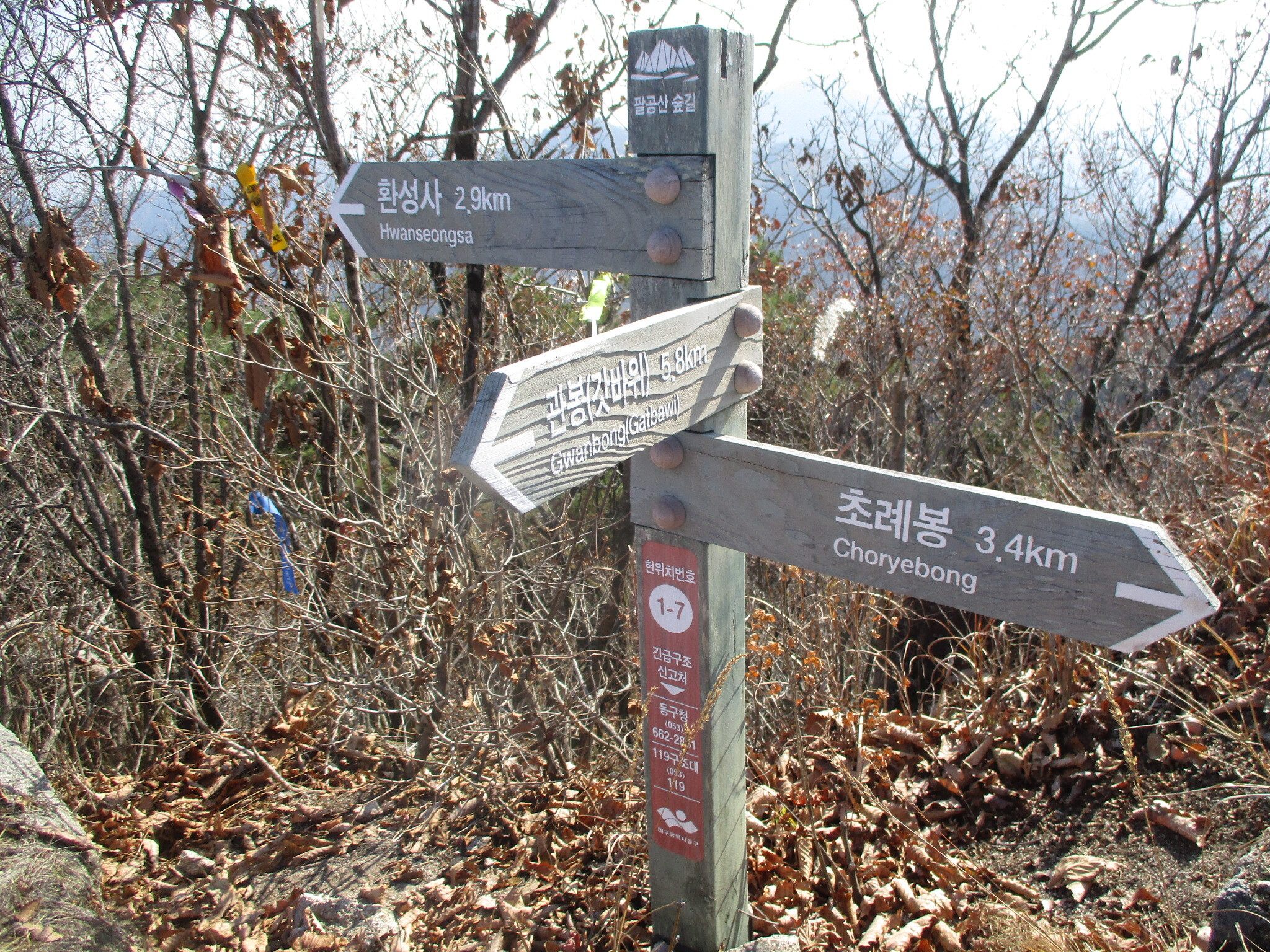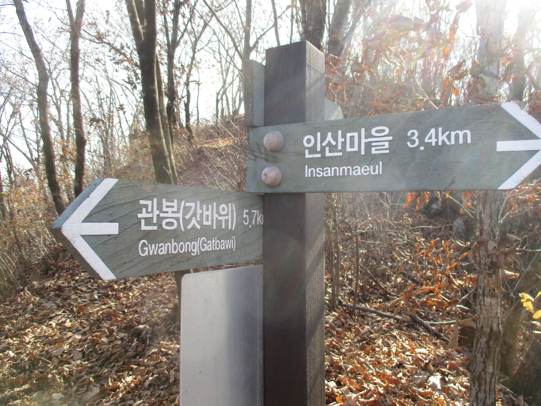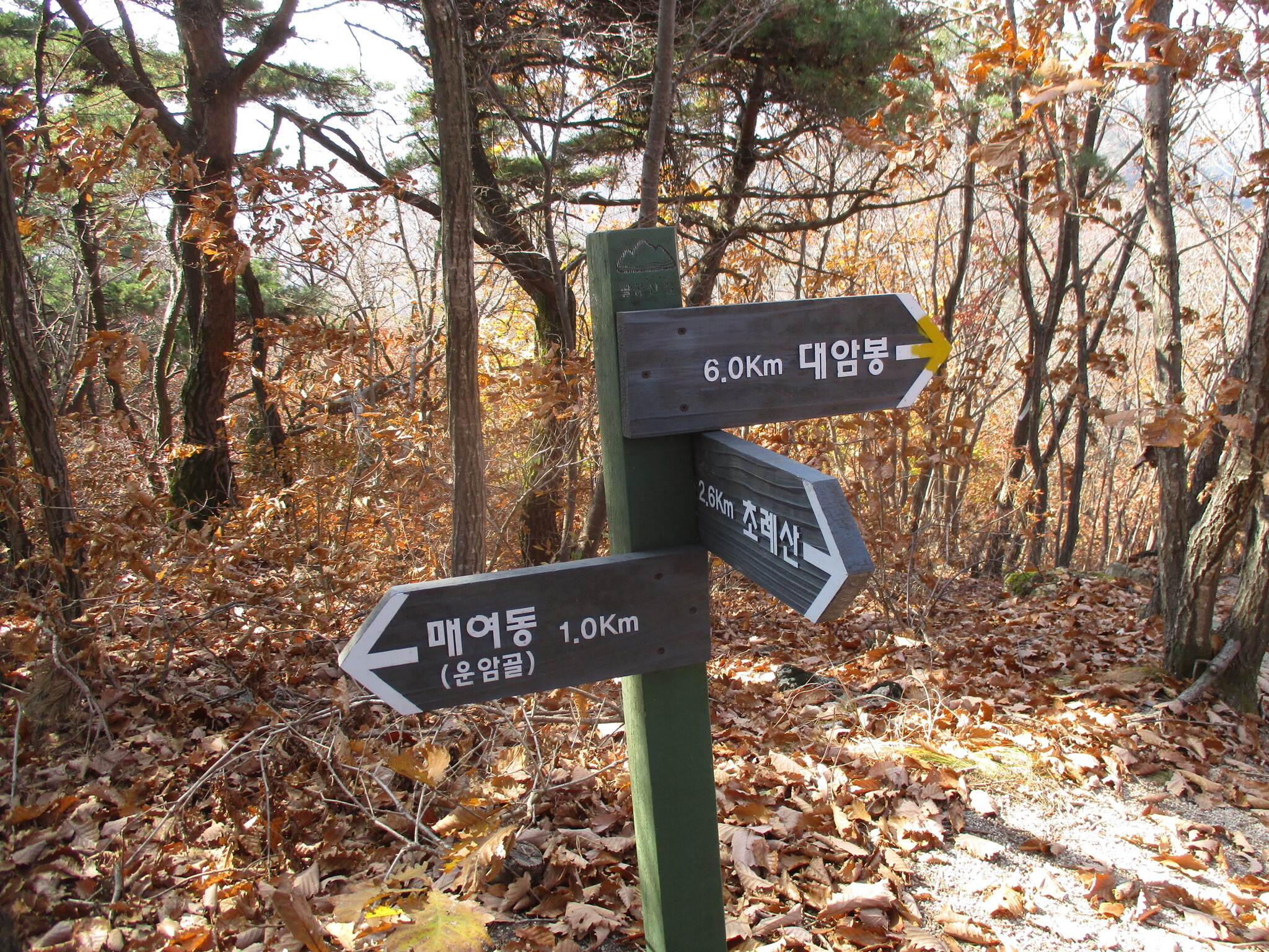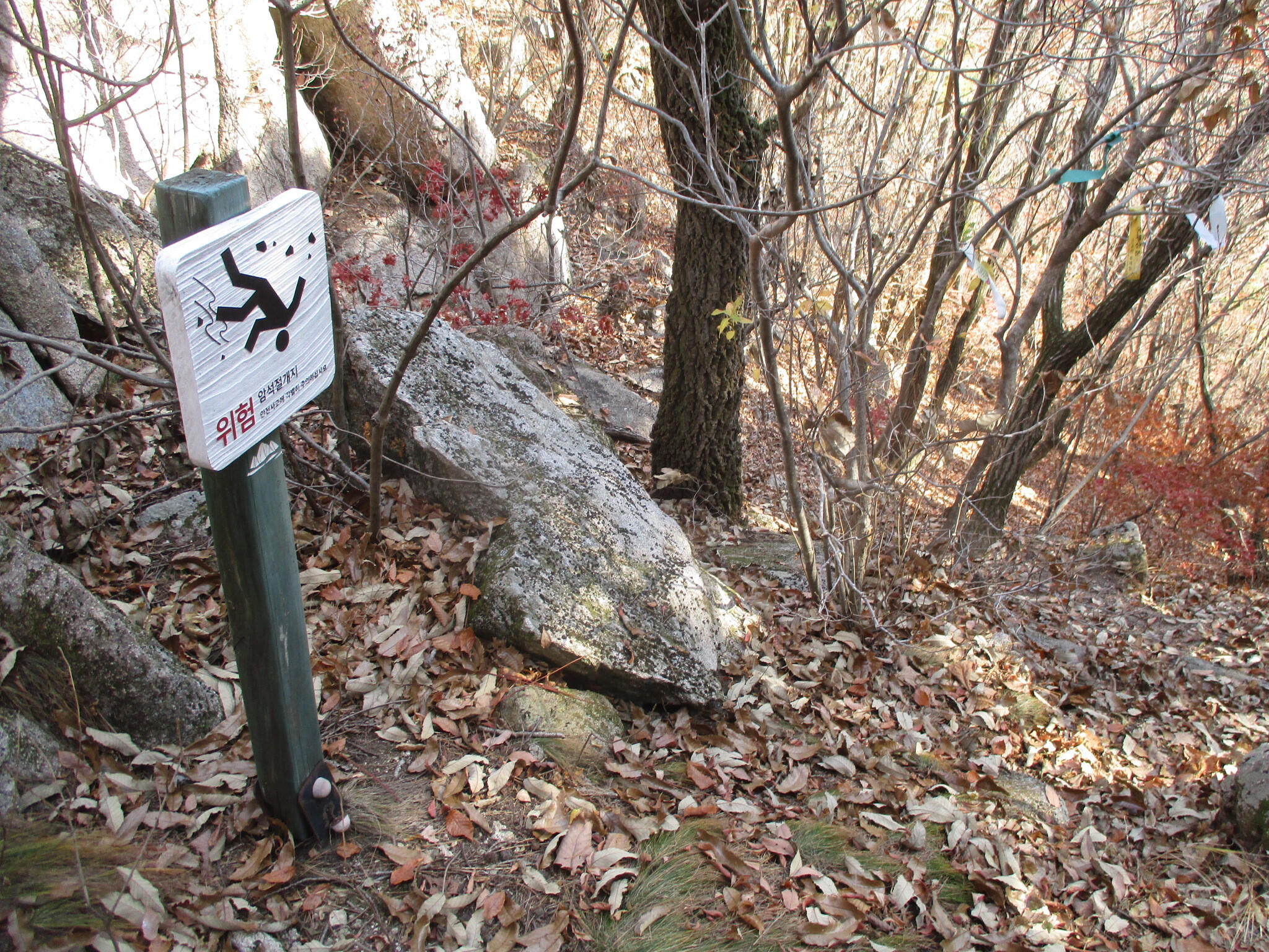 잠시 위험한 바우지대를 빠져나와 낙엽 쌓인 산길을 걸어가다 보면 오른쪽 도림사 갈림길이 보이는 곳에 연이어 이정표가