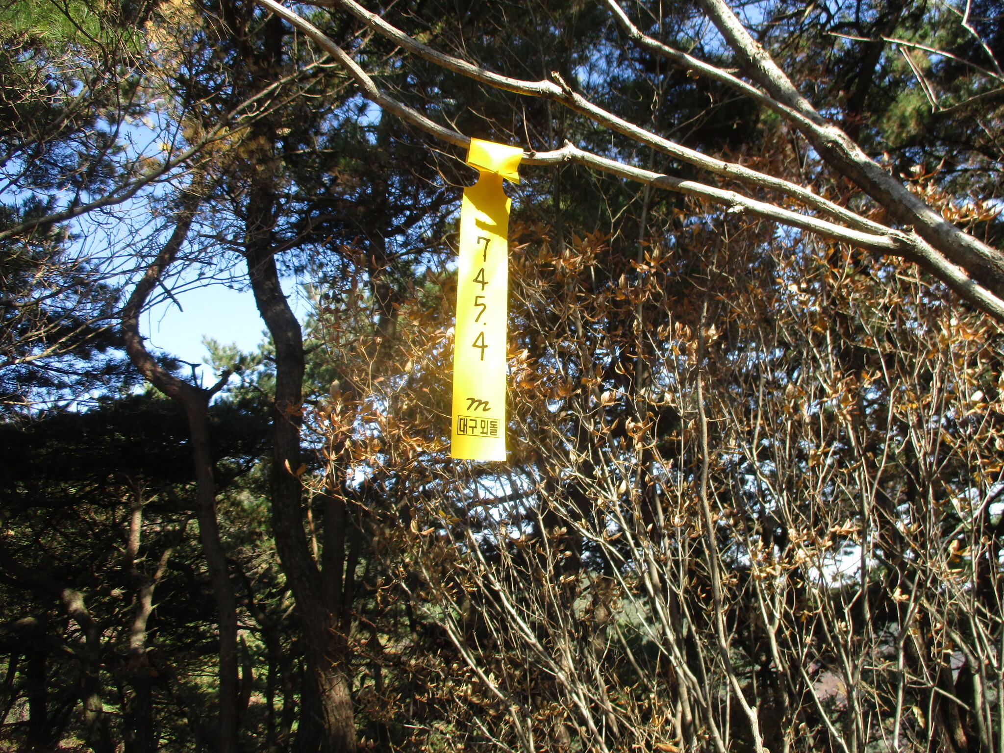 다시 쉬엄쉬엄 745.4봉으로 올라서서 흔적을 남기고 간다!~ 이 길은 및뿐 지나가도 그때는 표지기가 없어 눈인사만 했다~