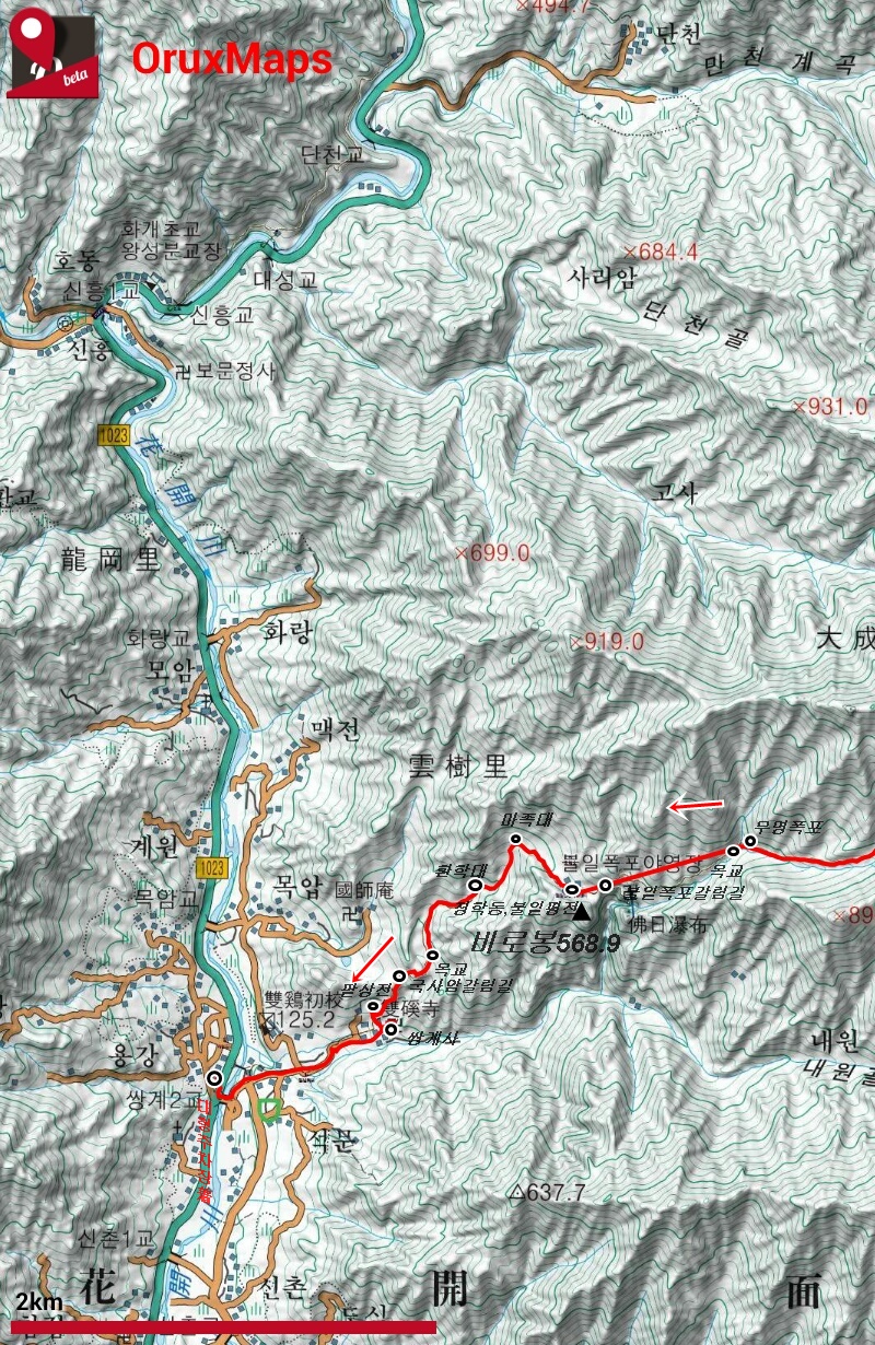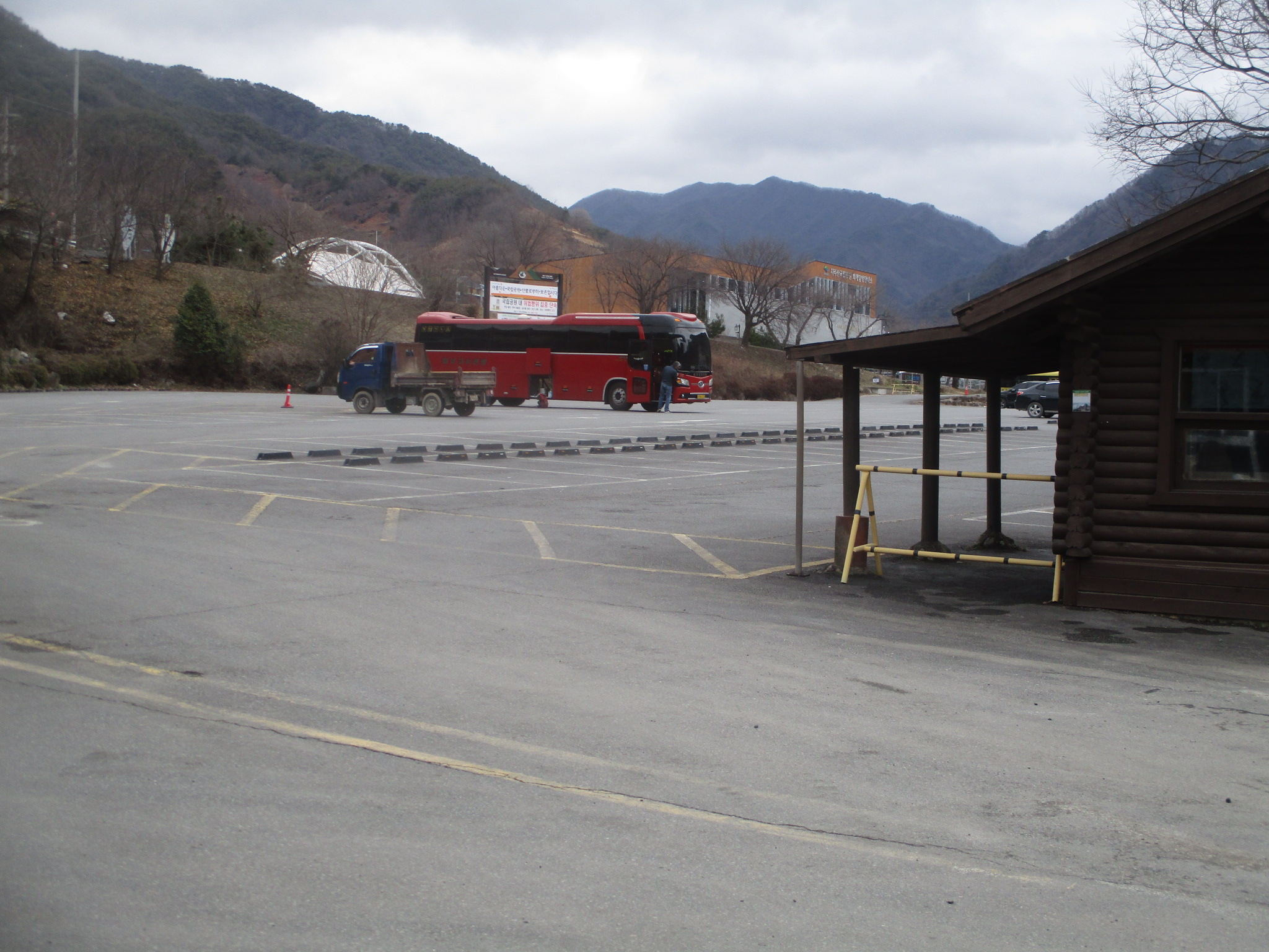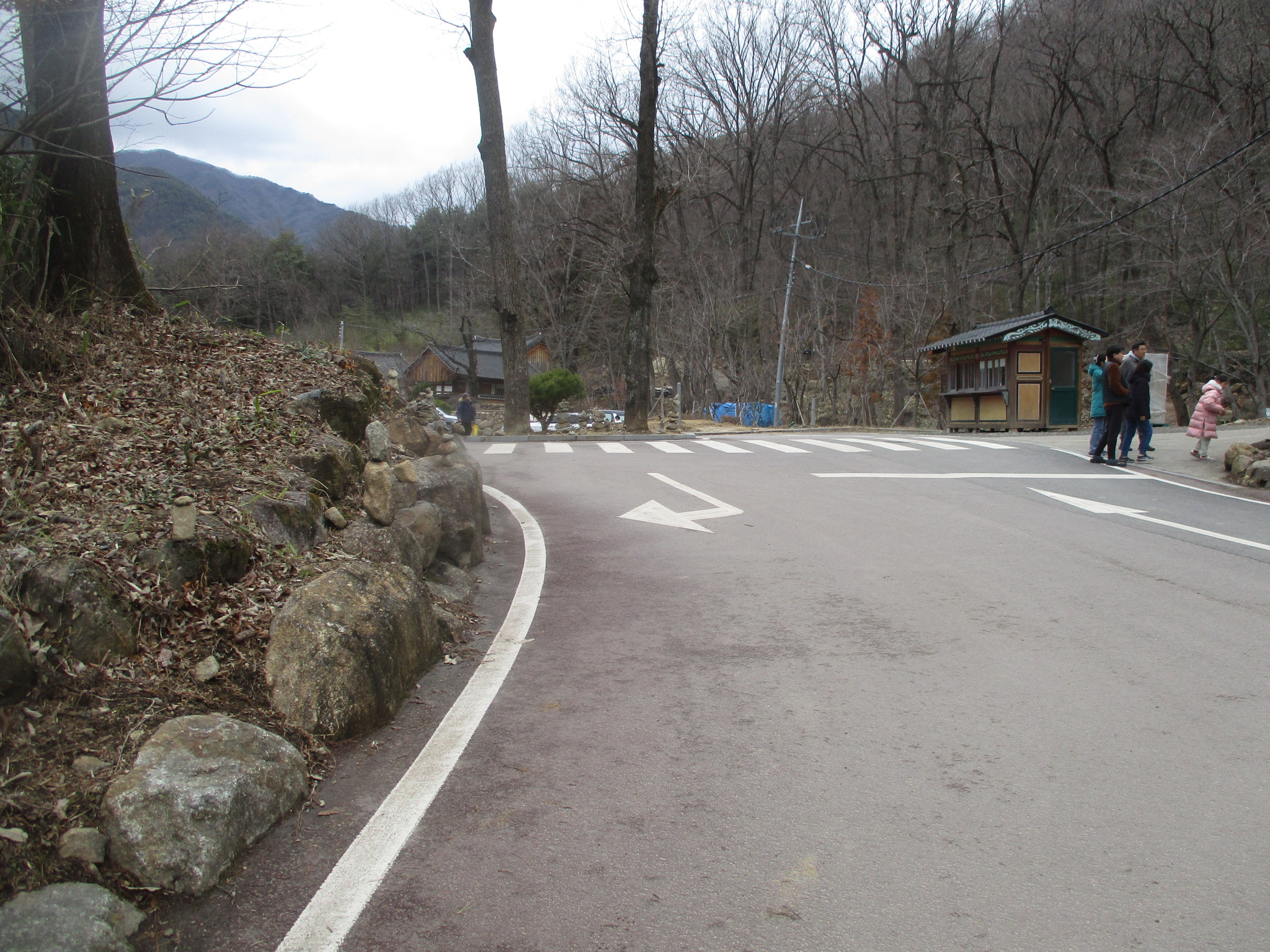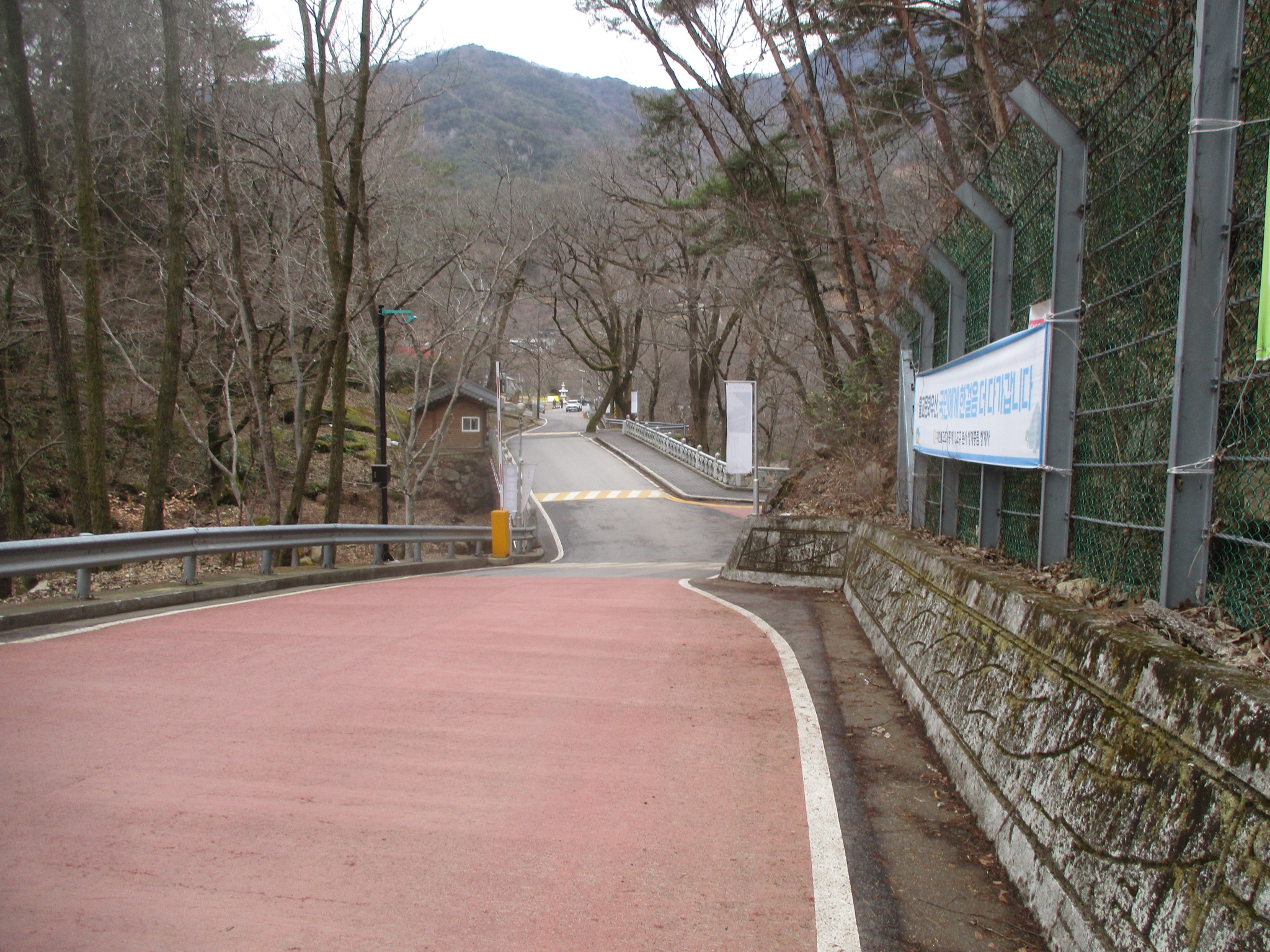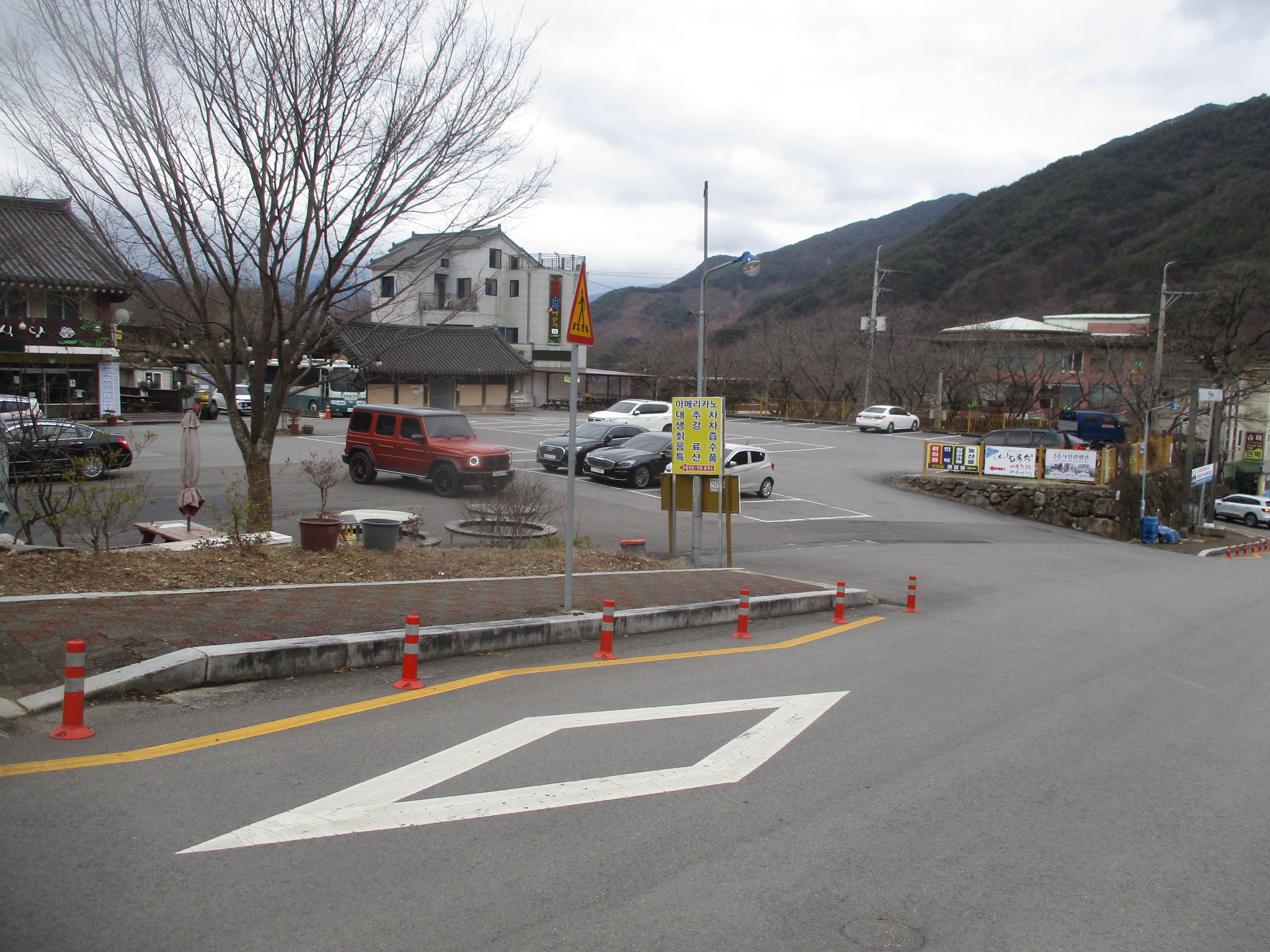 도로로 나와 대형버스 주차장이 있는 화개천까지 터덜터덜 내리간다!~ 소형주차장을 연이어 지나 다리 우를 지나면