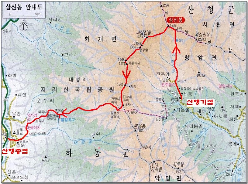 삼신봉(1,288.7m): 지리산 삼신봉은 경남 하동군 청암면 묵계리에 위치한 산으로, 어미의 품처럼 넓은 지리산 자락에