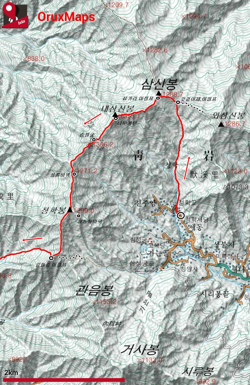 5.산행 경로: 청학동 탐방지원센터~북쪽 김다현길 따라~등산안내도 오른쪽 돌계단으로 올라~연이은 돌계단따라 가파른