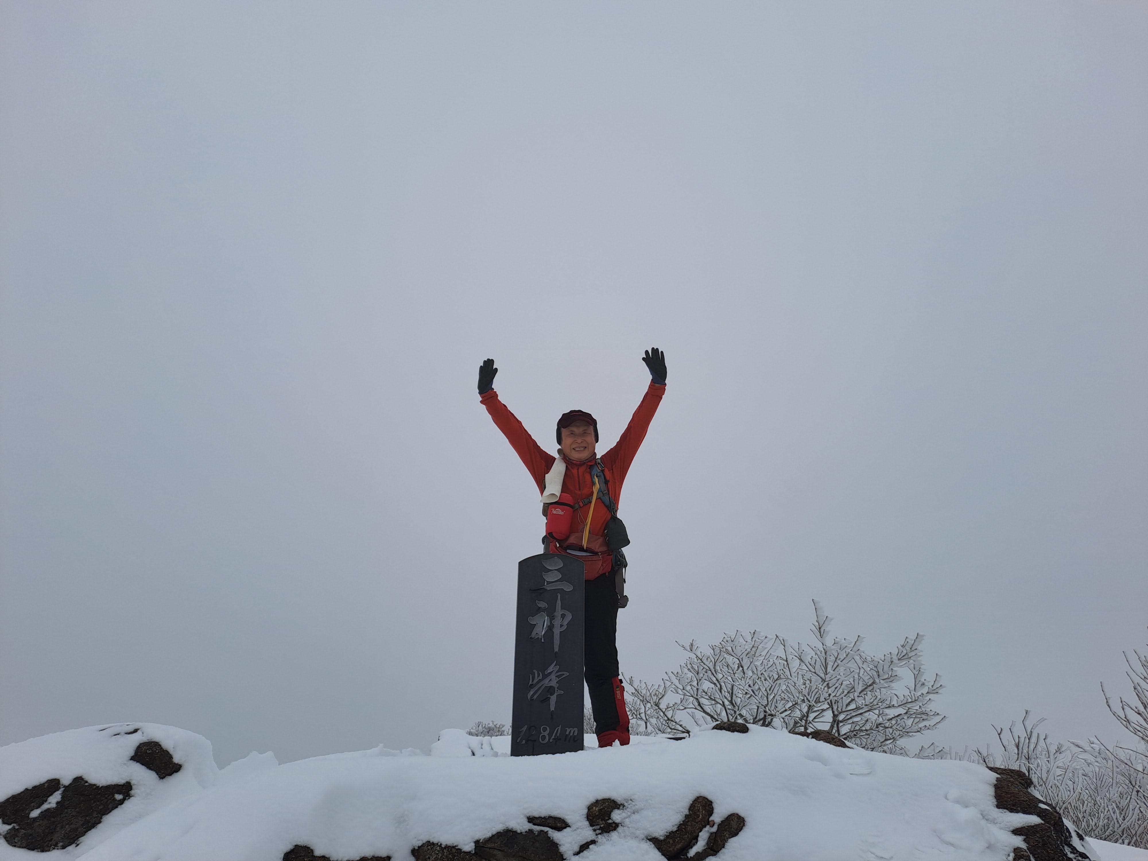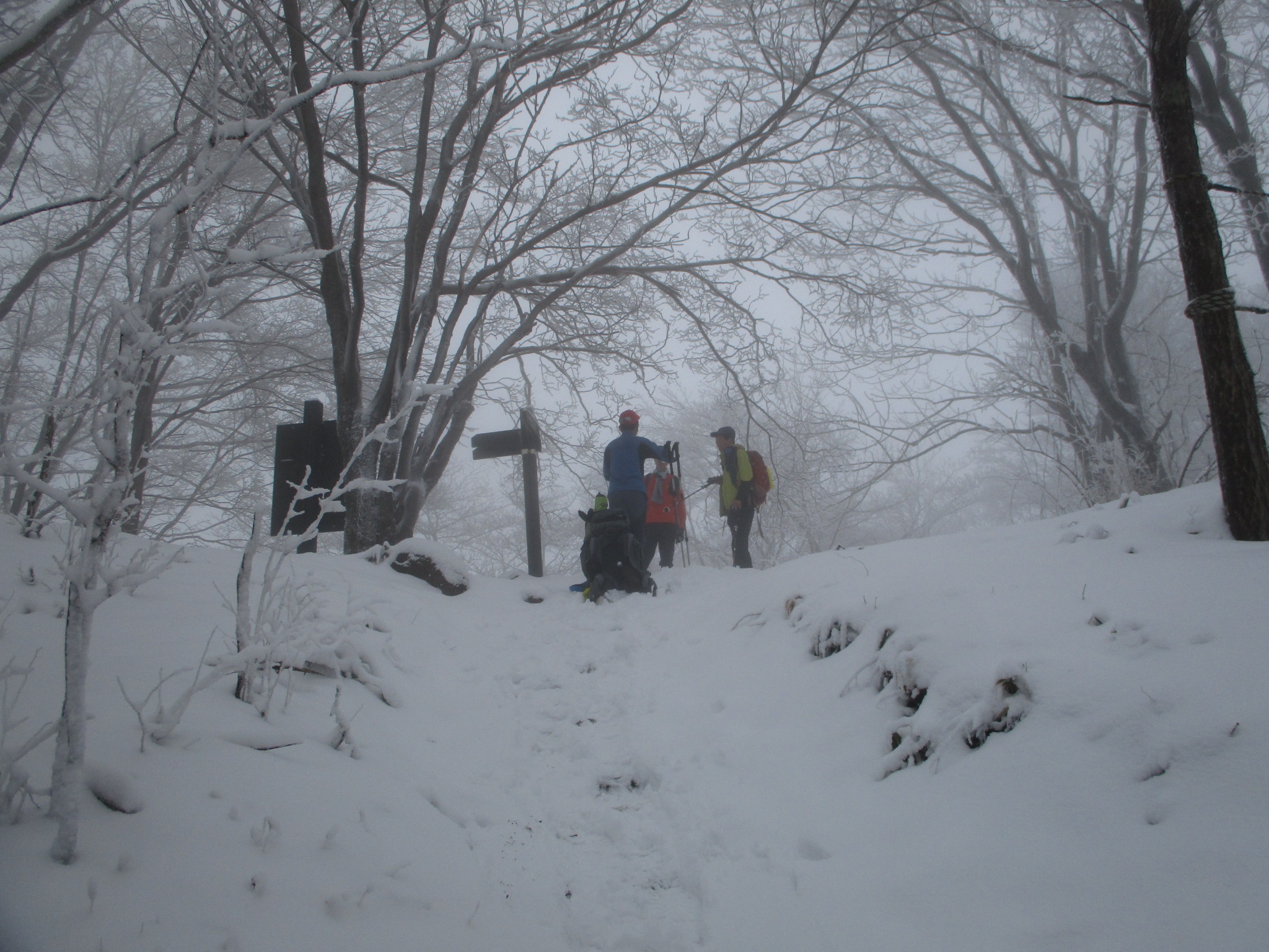 아이젠을 미리 하고 오기를 잘했네!~ 능선에는 눈구디다!~ 햇또를 박고 올라서마 이정표가 서있는 갈림길!~