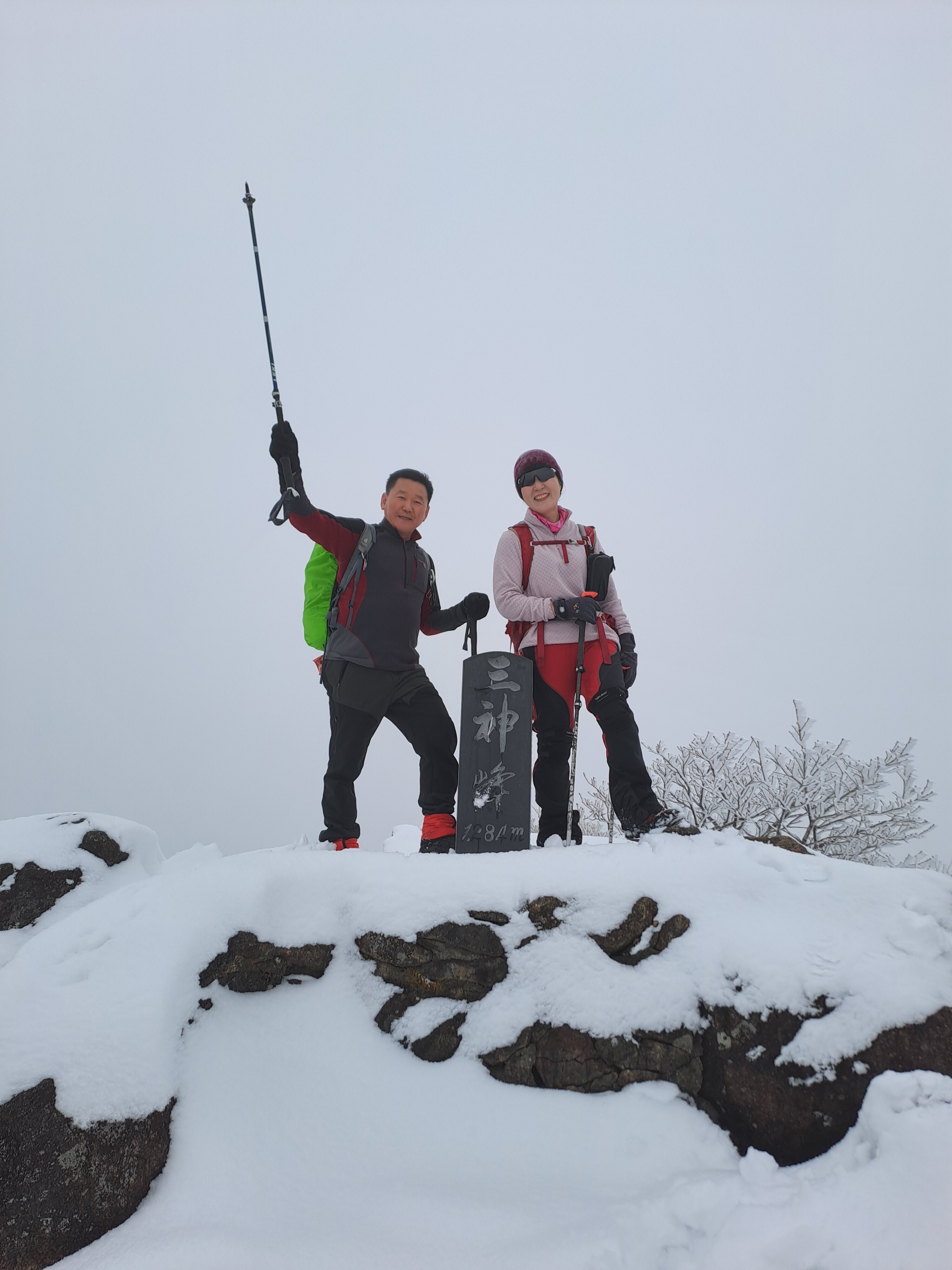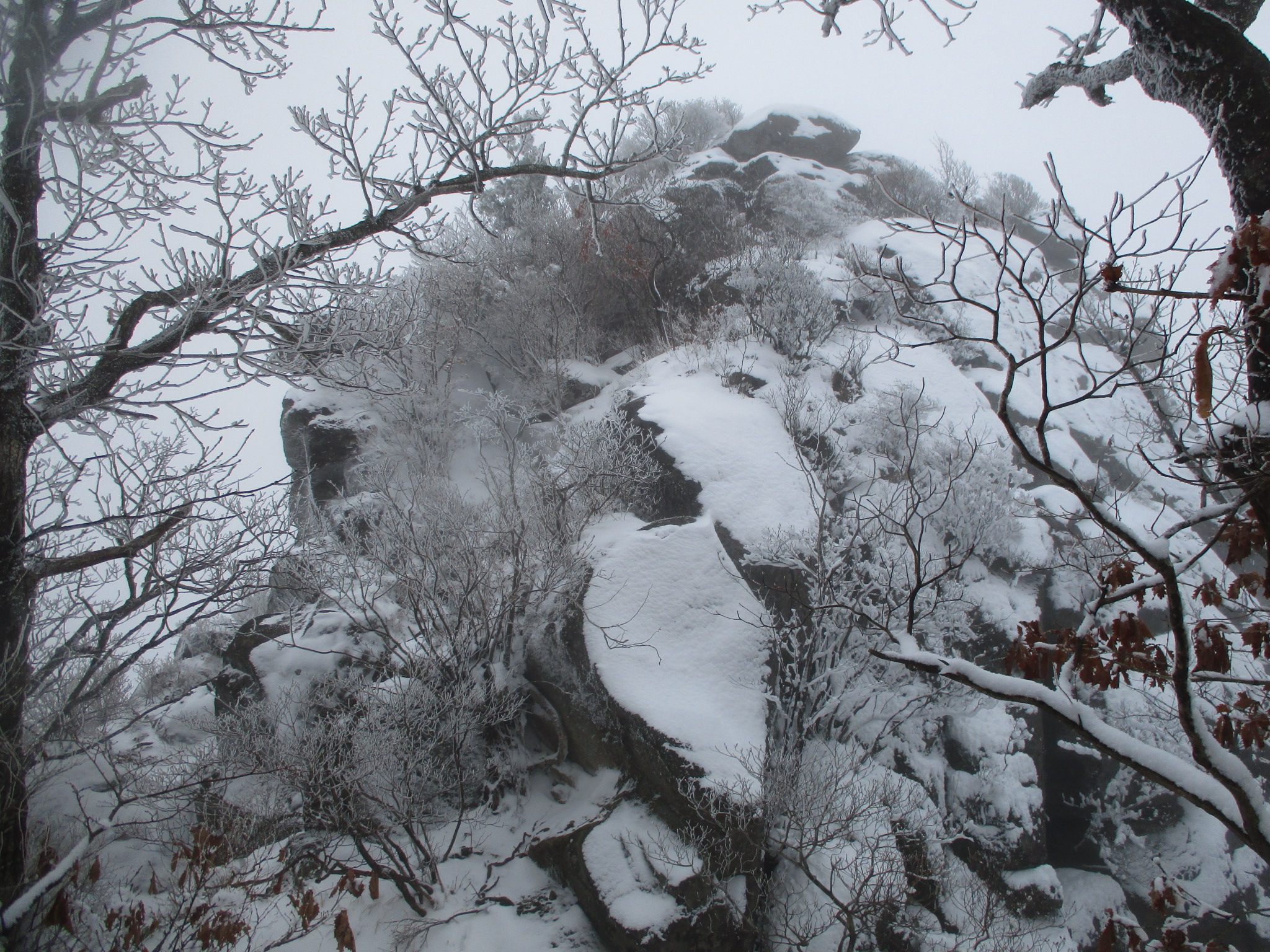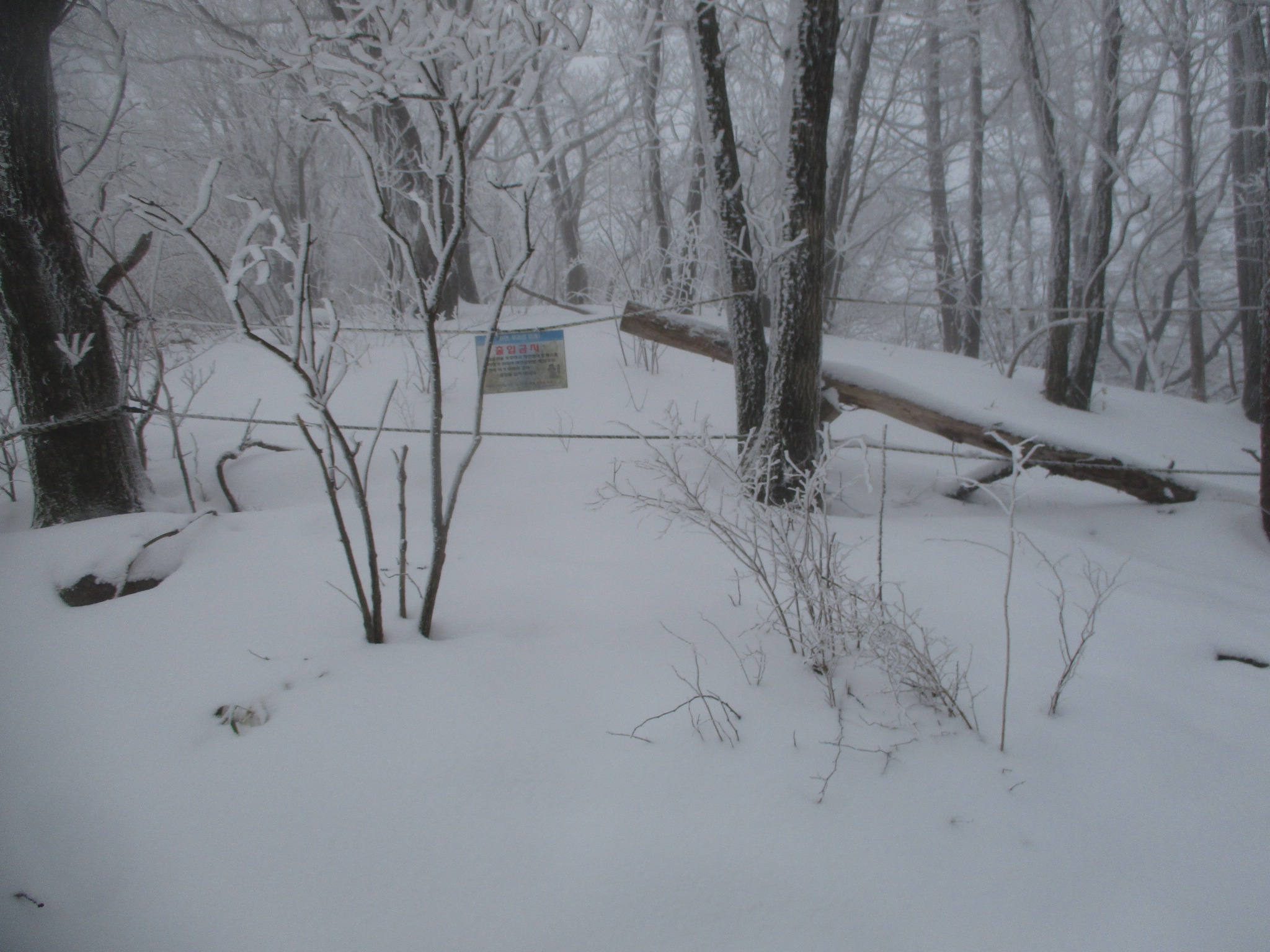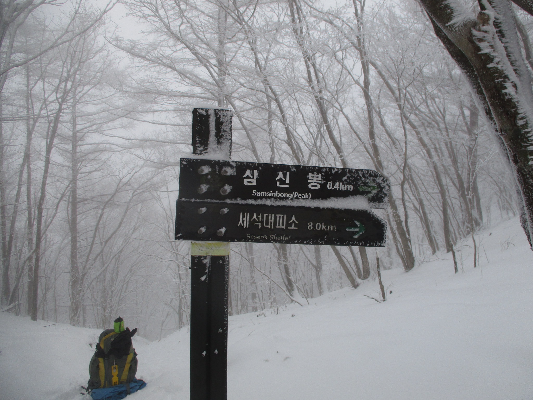 오른쪽으로 40여m 떨어진 삼신봉을 찍고 오기로!~ 예전에 눈이 없을때는 바우를 집고 낑낑대미 올라갔던 코스는