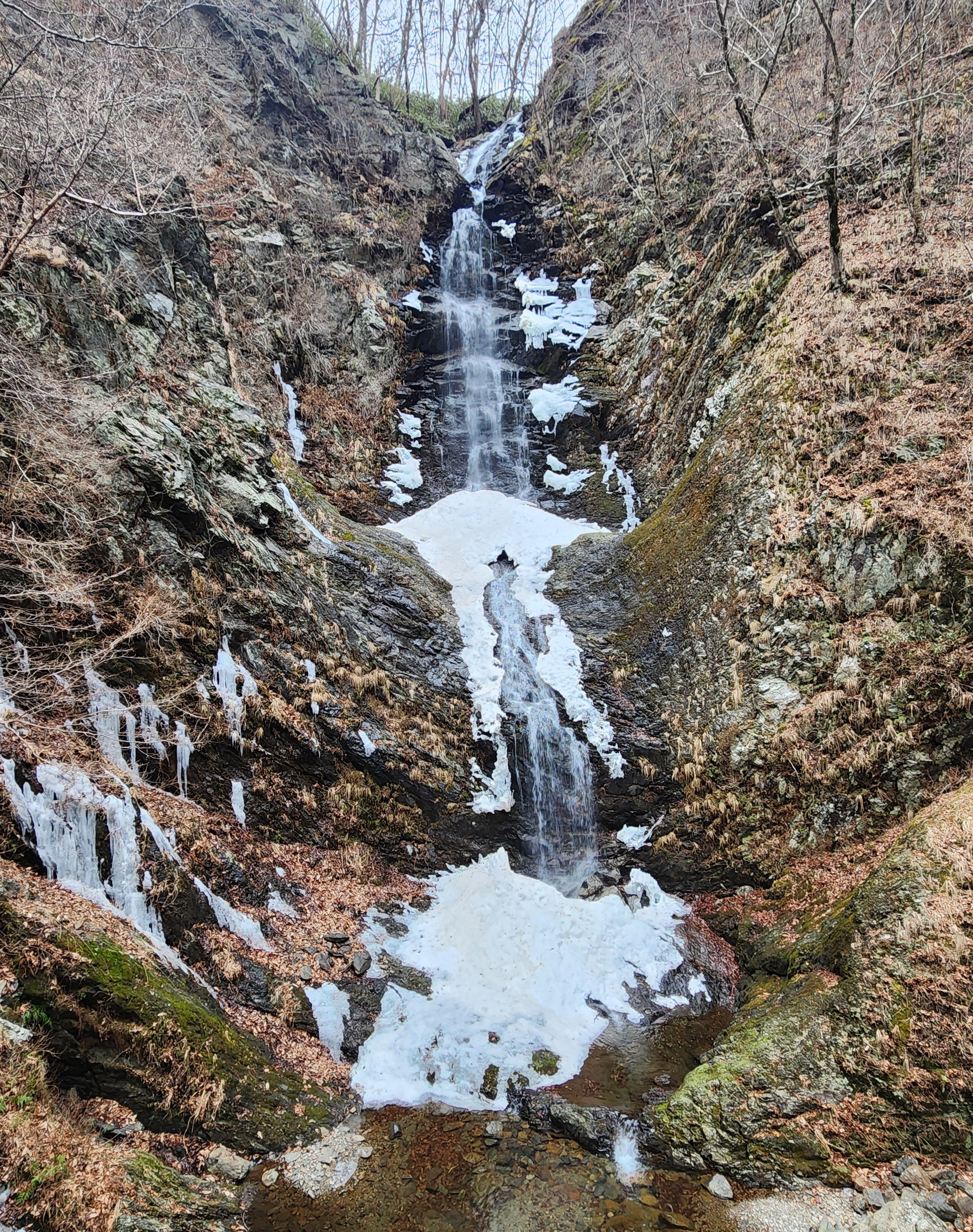 잠시후 식당 자리로 그만인 넙떡 바우를 지나 무명폭포에 도착!~ 아이젠을 씻어가 집어여코 특공대님이 폭포가 10단이라