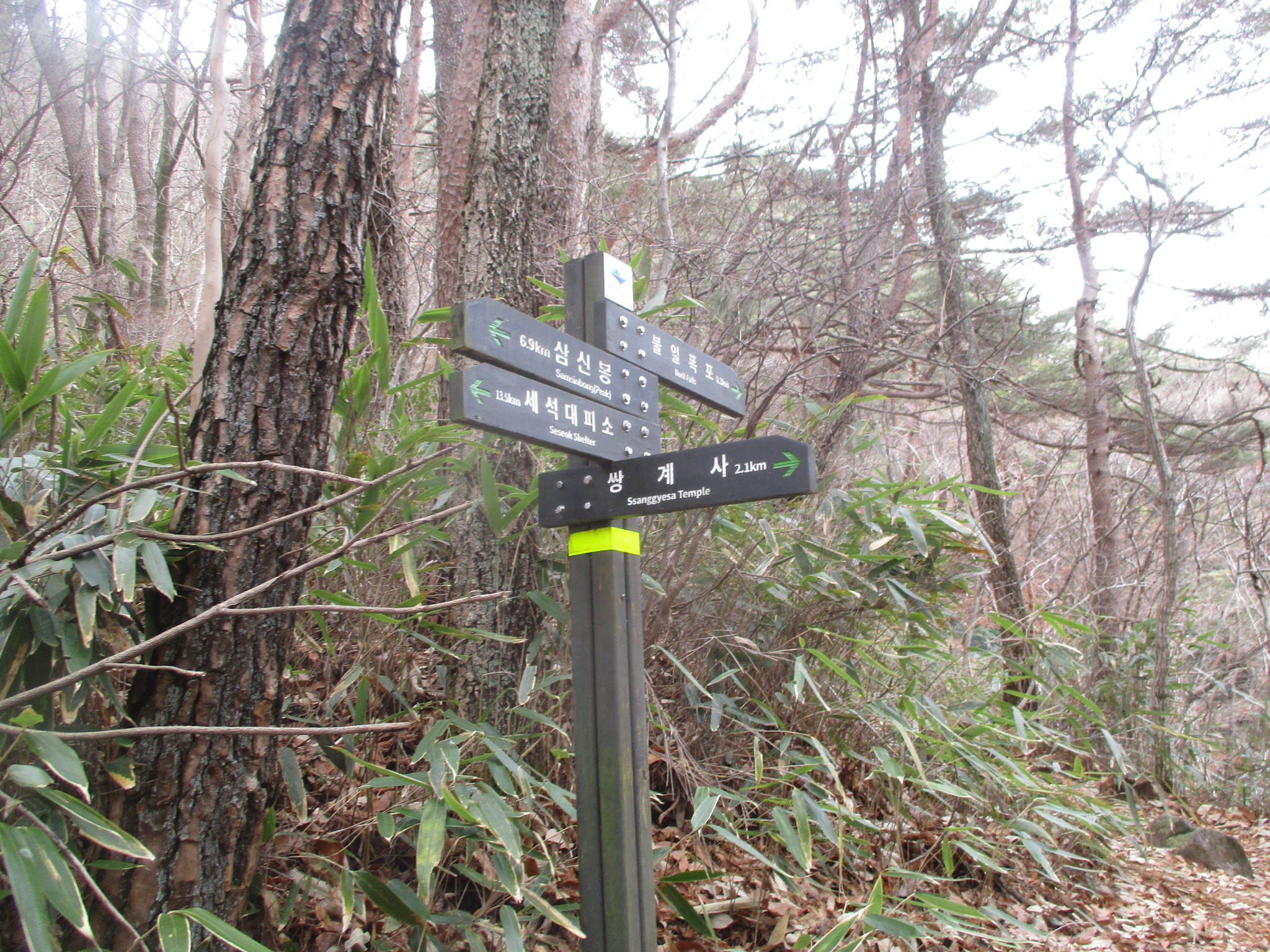 삼신봉 갈림길 이정표~오른쪽 바위타고 삼신봉 오름~삼신봉(1,288.7m, 정상석)~갈림길 빽~쌍계사 9.0km 방향~