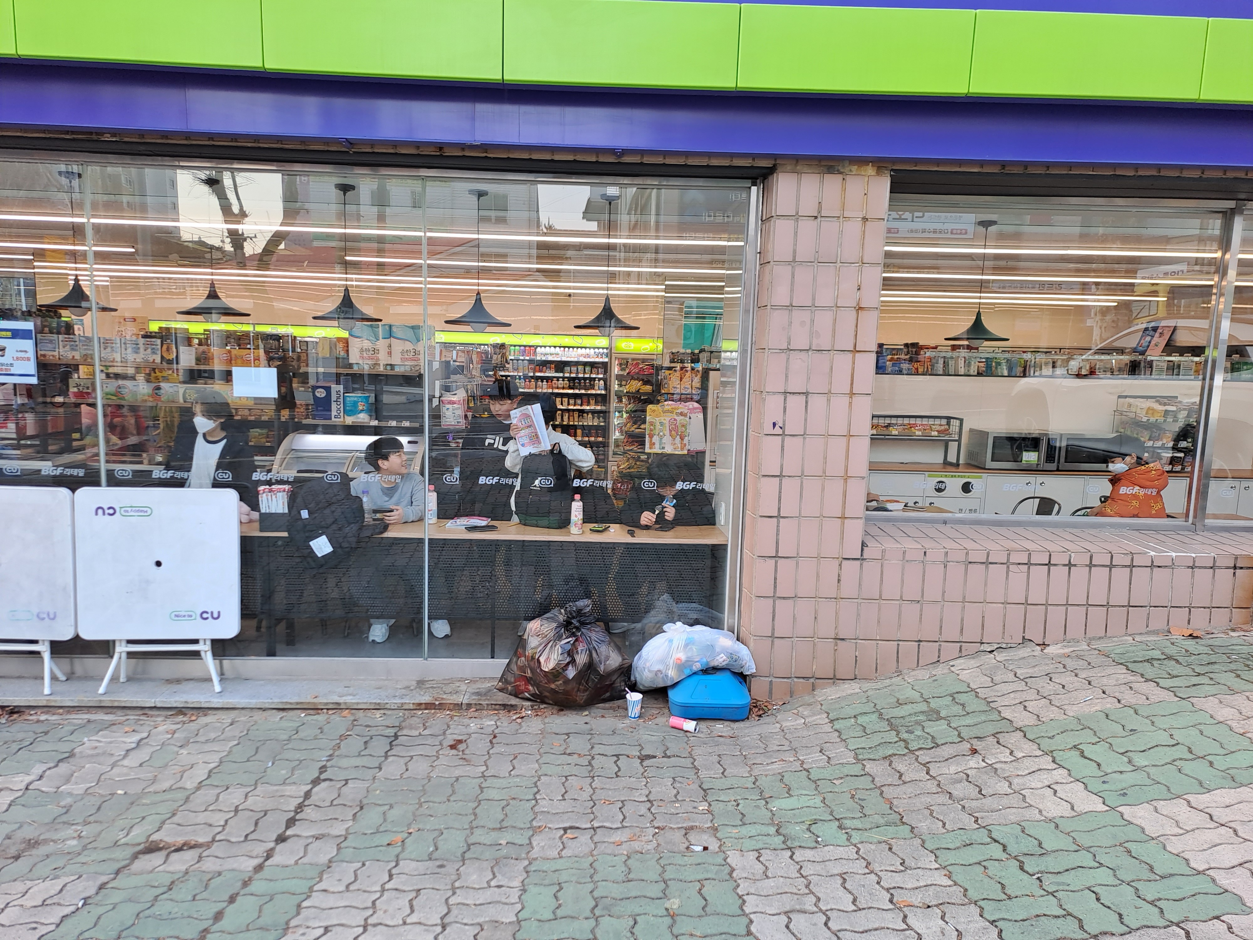 도서관으로 가는데 중앙초등학교앞 학원가에 있는 편의점 간이 매식대에는