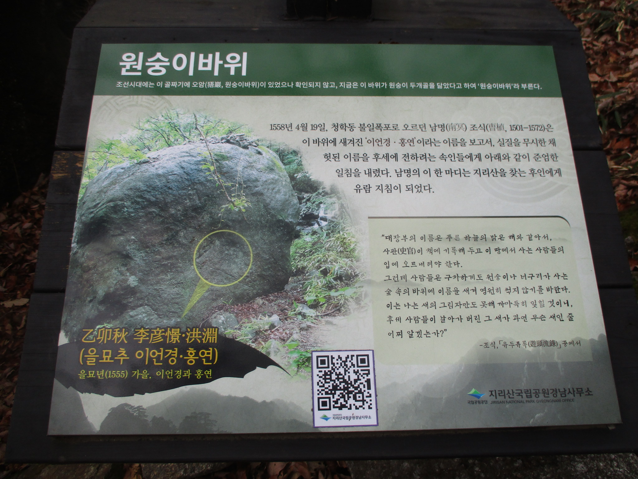 두개골 연상하기가 어렵다!~ 안내판을 읽어보면 바위 사이에 자기 이름을 새긴 것을 두고 남명 조식 선생이 대장부가