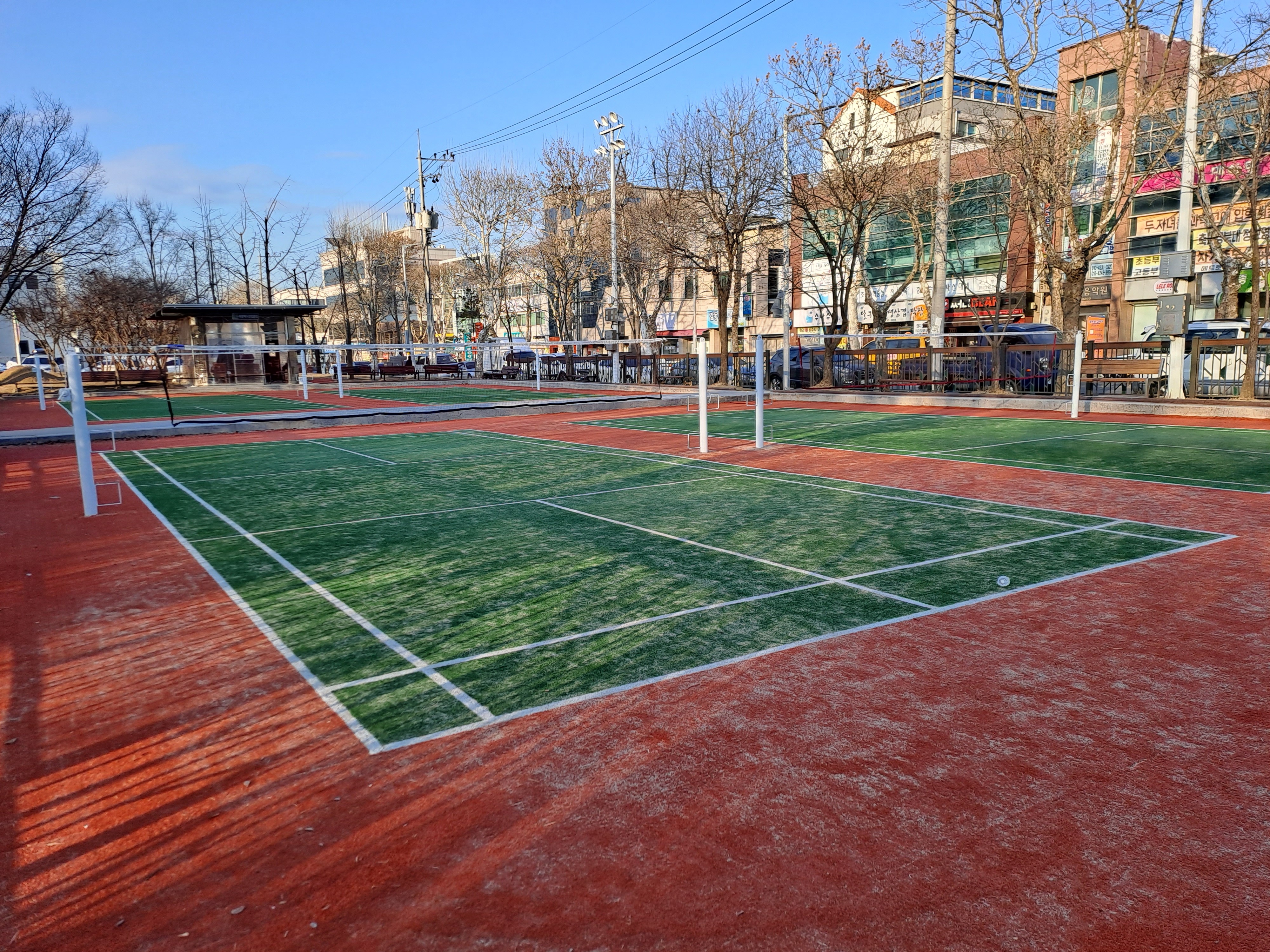 공원 입구에는 얼마전 공사를 끈낸 산뜻한 배드민턴 구장을 맹글어 노코