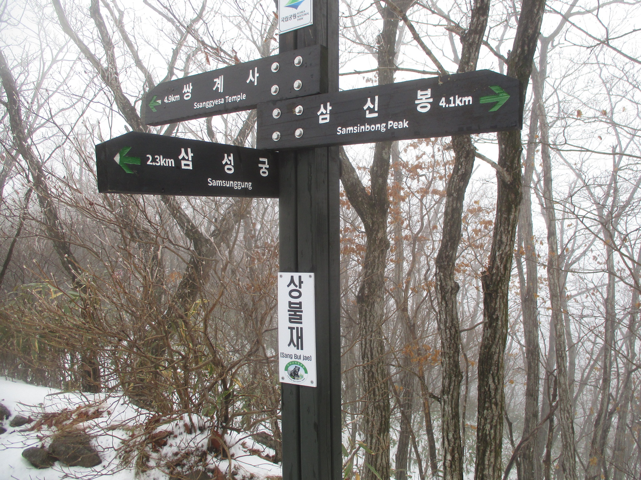 위험해가 패쑤!~ 왼쪽으로 우회해가 올라간다!~ 산신령님한테 제를 올린 제단이 있는 삼신봉!~