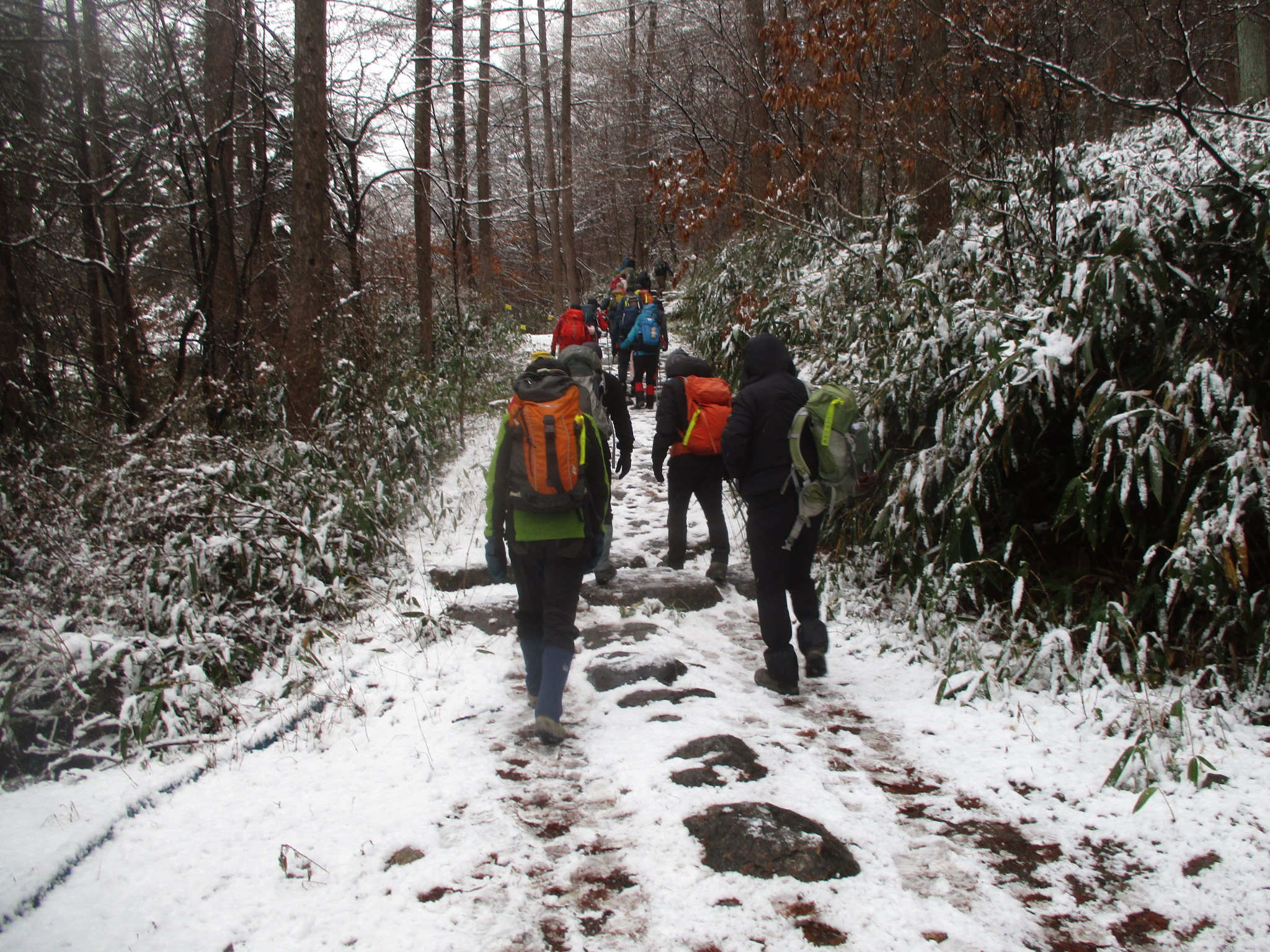 눈을 보이 아이젠은 안해도 되지 시퍼가 스패츠만 하고 덜렁덜렁 올라갔다가 갓걸이재 가파른 오름길에 곡을 한다!~