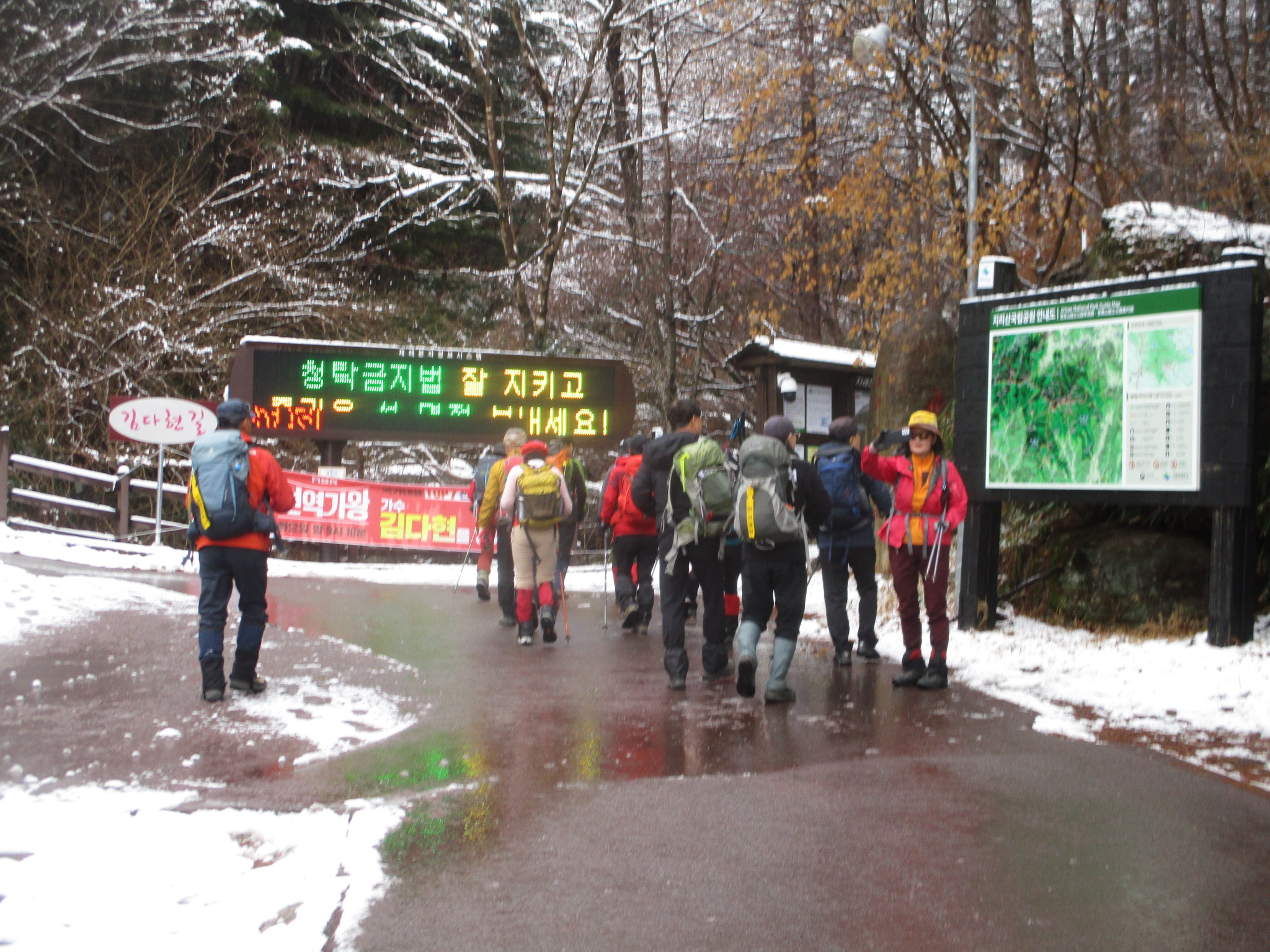 오늘은 차안에서 보내는 시간도 만코 산행시간도 7시간 정도 걸리는 눈 산행이라 보통때보다 시간을 땡기가 아침 일찍