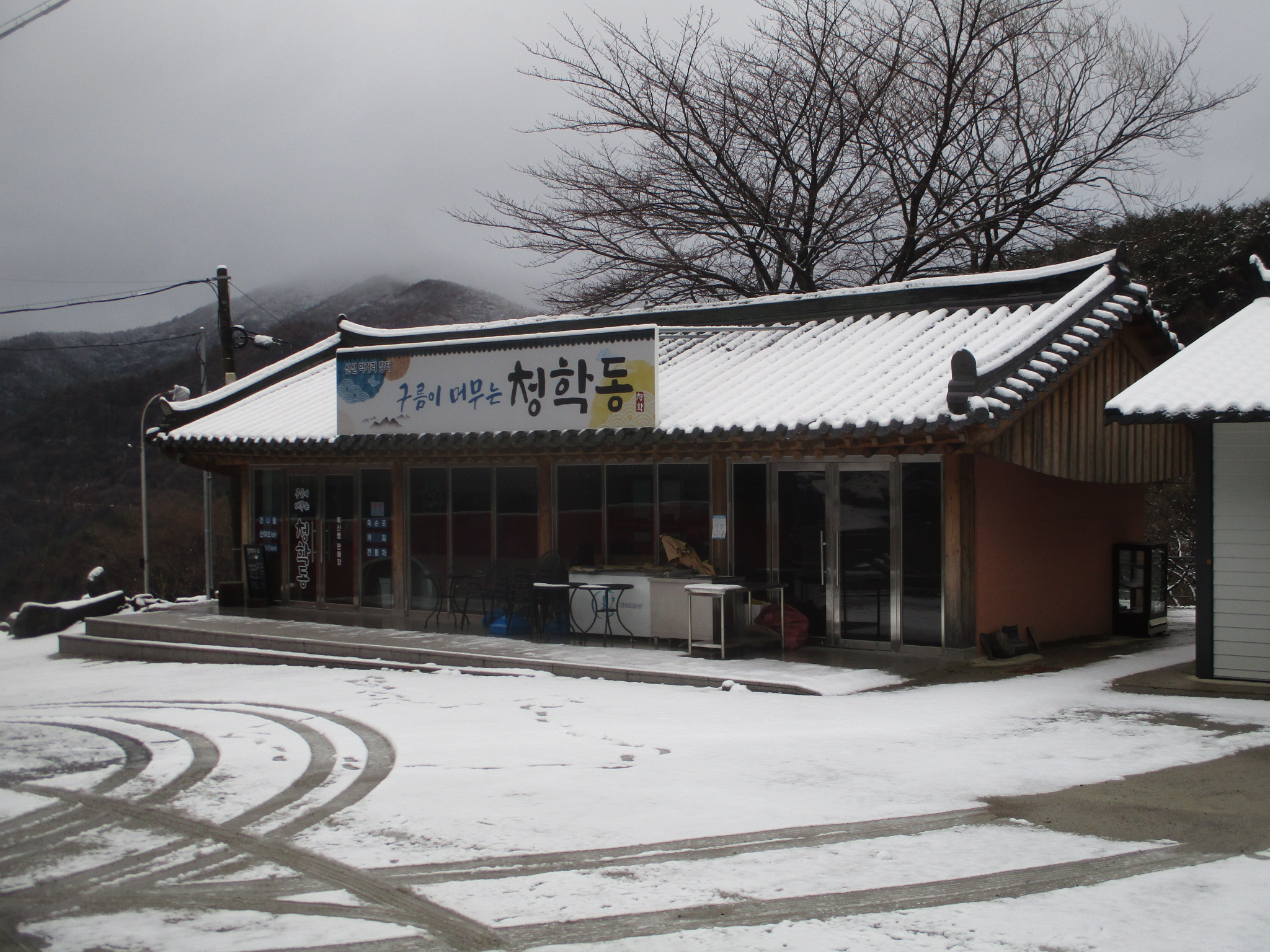 잠시후 바람없는 길까에 눈을 대강 치우고 요기를 하고 간다!~ 눈이 마이 쌓이가 묵는것도 귀찬타!~