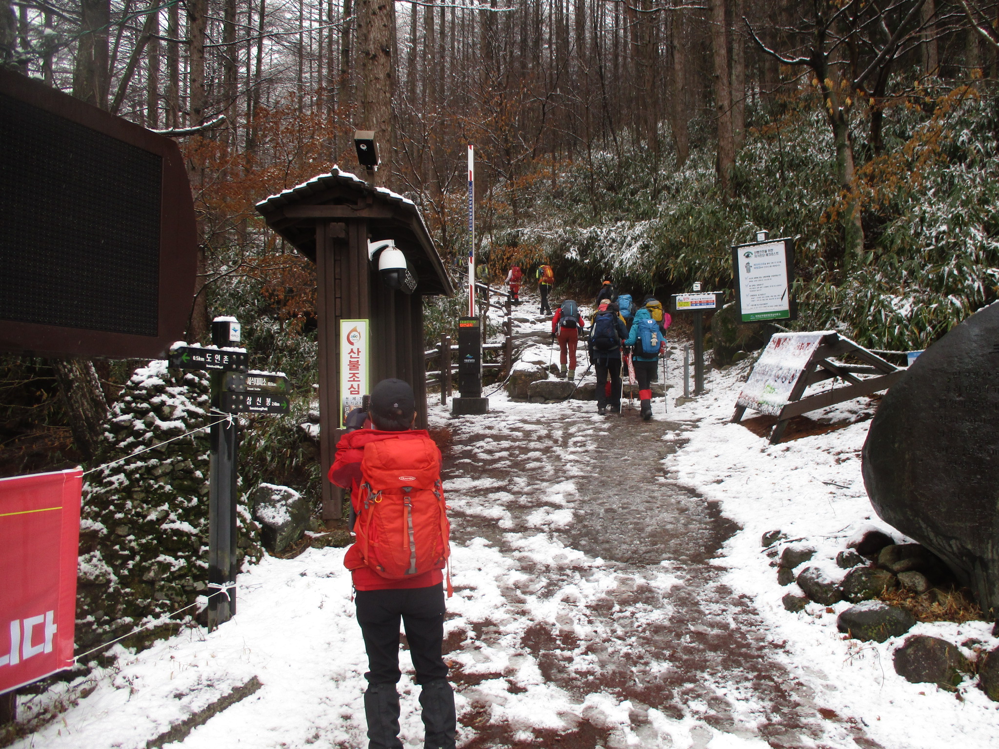 궁디를 노피들고 아이젠을 하는 사람이 따문따문 보이지만 그때까지도 올라가는데는 지장이 있겠나 카미 아이젠을