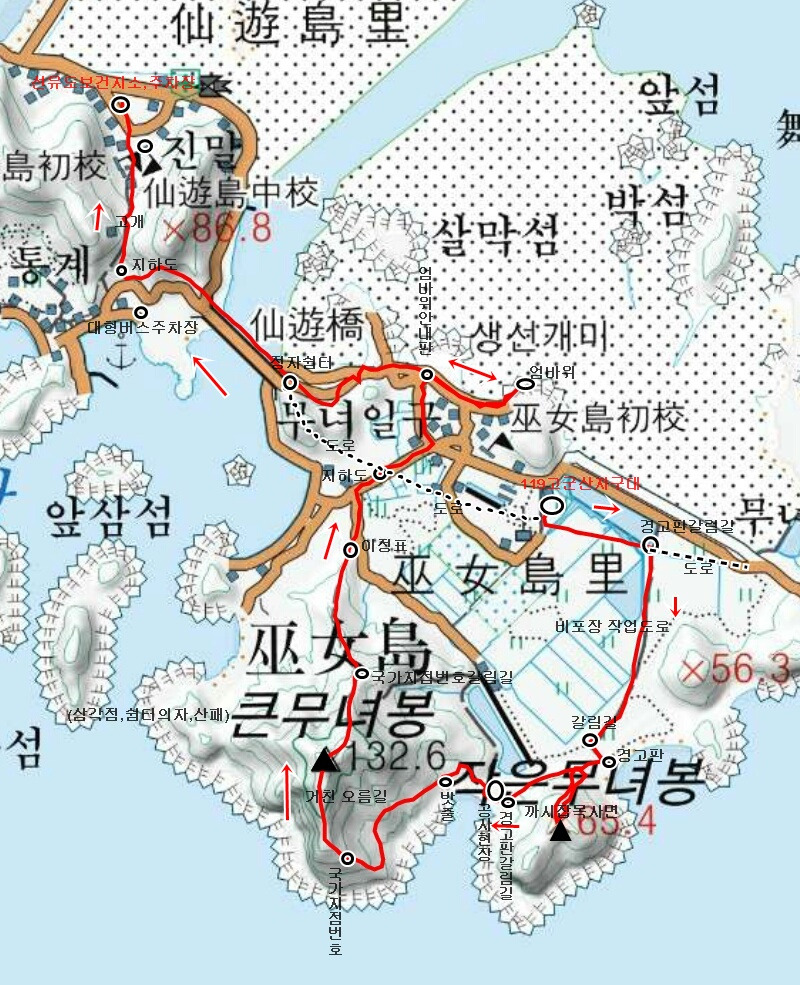 무녀도 큰무녀봉하고 작은 무녀봉은 들머리를 못찾아가 아직 미답으로 남아있다!~