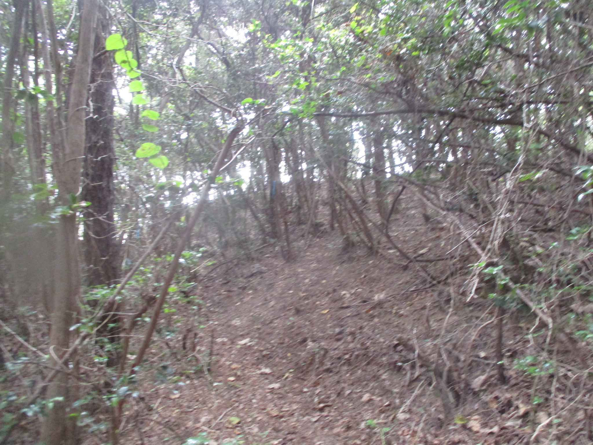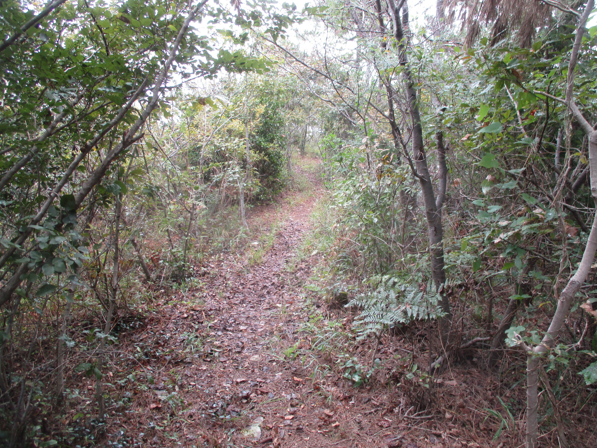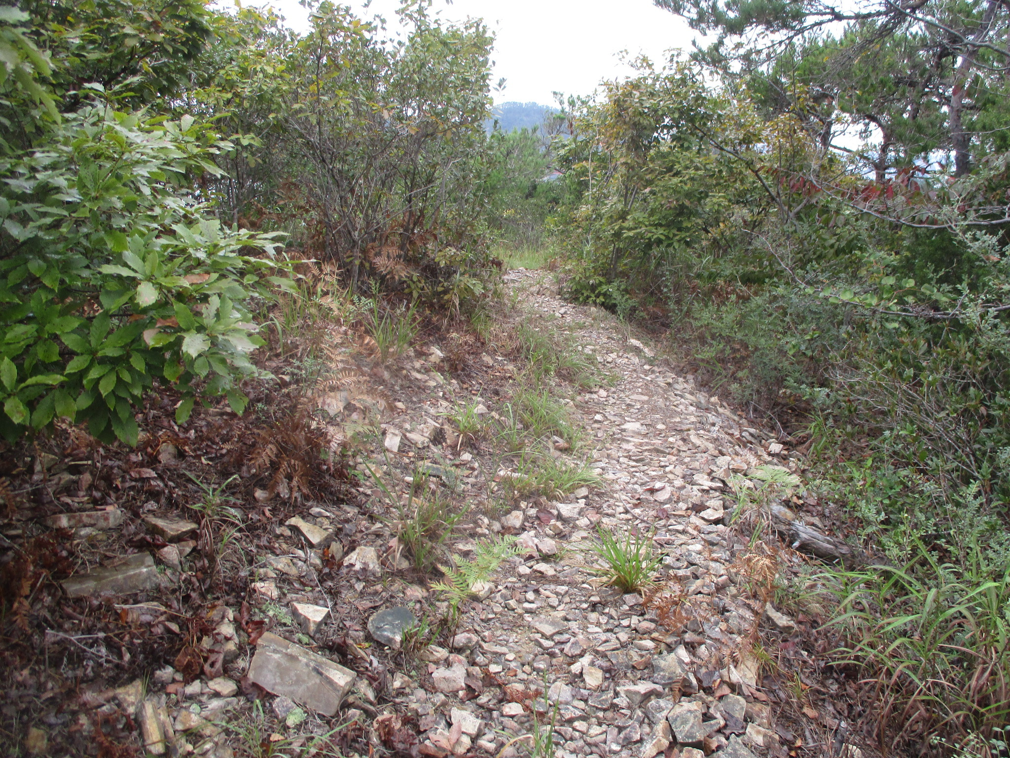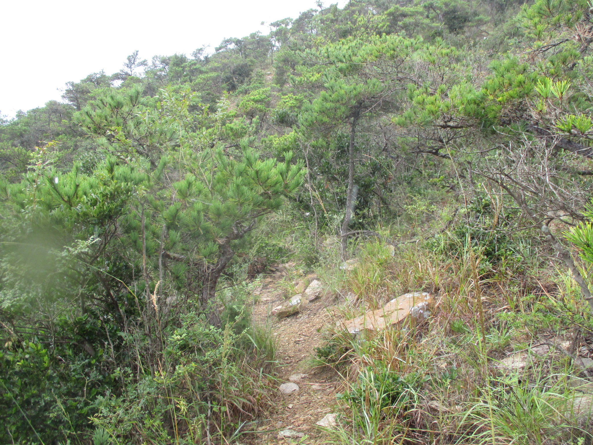 잡목 헤치며 우회해서 오름~뚜렷한 옛길 만남~밧줄지대 내림~계곡 건너 오름~연이어 국가지점번호판 지나~