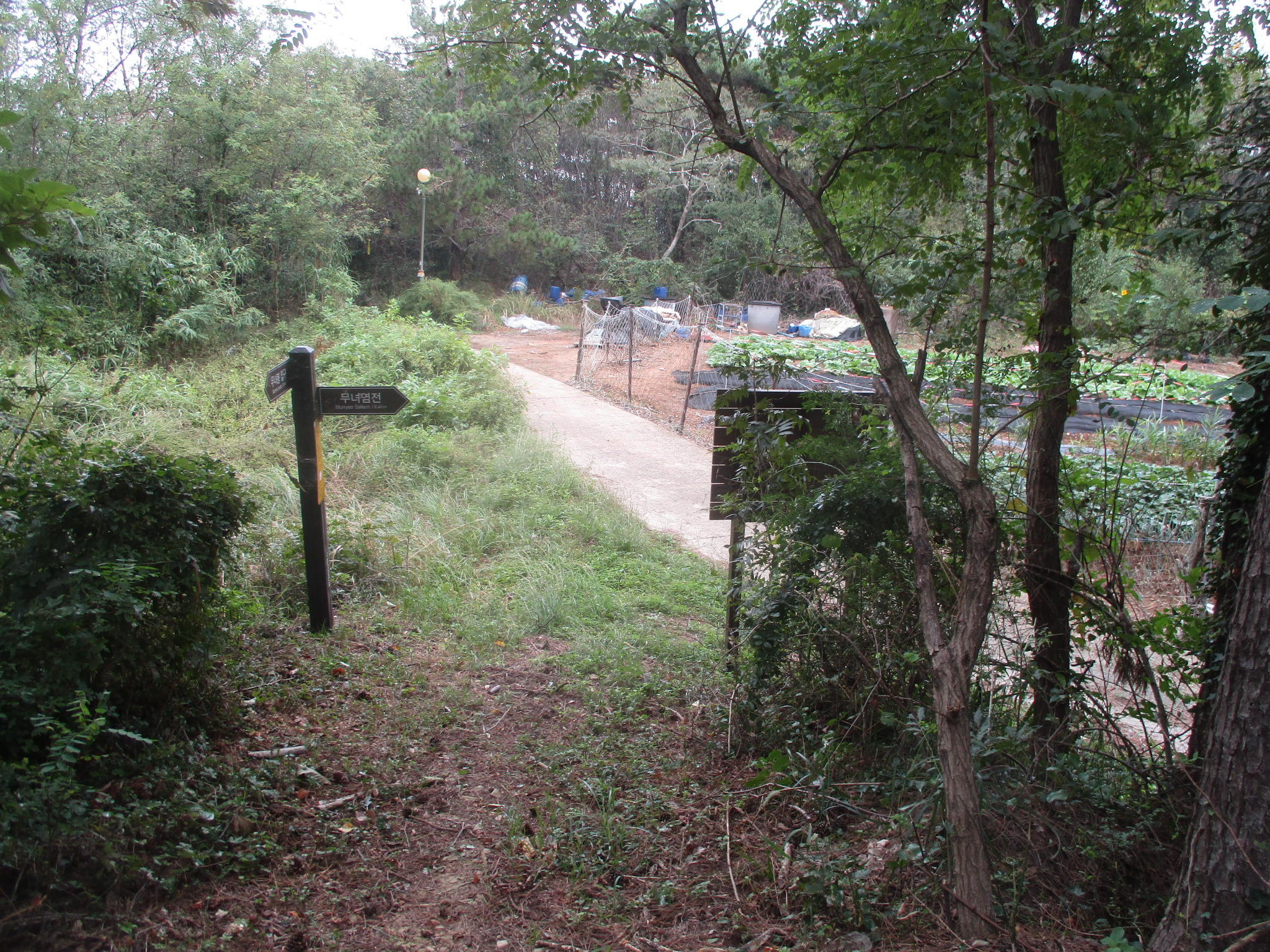 시에서 사유지 주인하고 합의소당을 안봤는지 큰 무녀봉 쪽으로 내리가보이 텃밭 주인이 이정표가 엄연히 있는데도