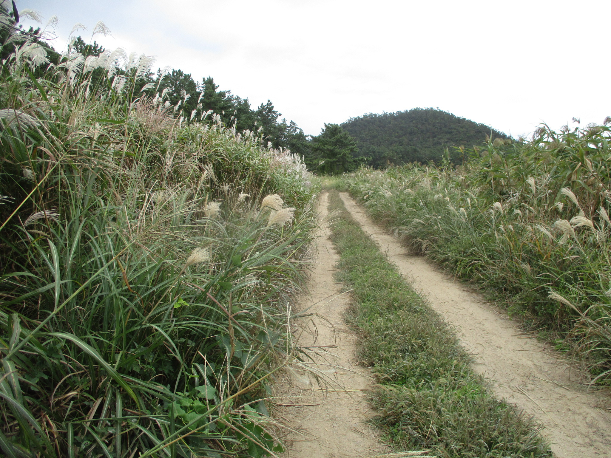 입구는 흐릿하지만 들어서면 둘레길긋은기 길은 뚜렷하다!~ 난중에 알고보이 이 길은 군산시에서 맹글어논 둘레길인