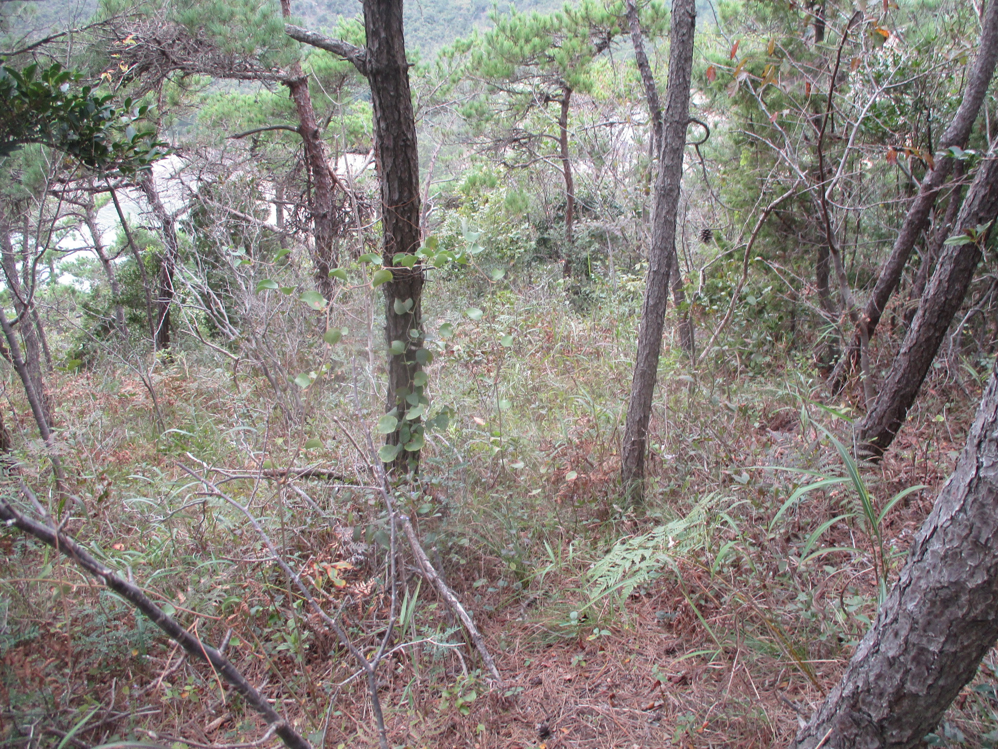 잡목 사면으로 치고 오름~거친 사면으로 이리저리 올라~작은 무녀봉(65.4m, 잡목숲)~다시 건친 잡목 사면