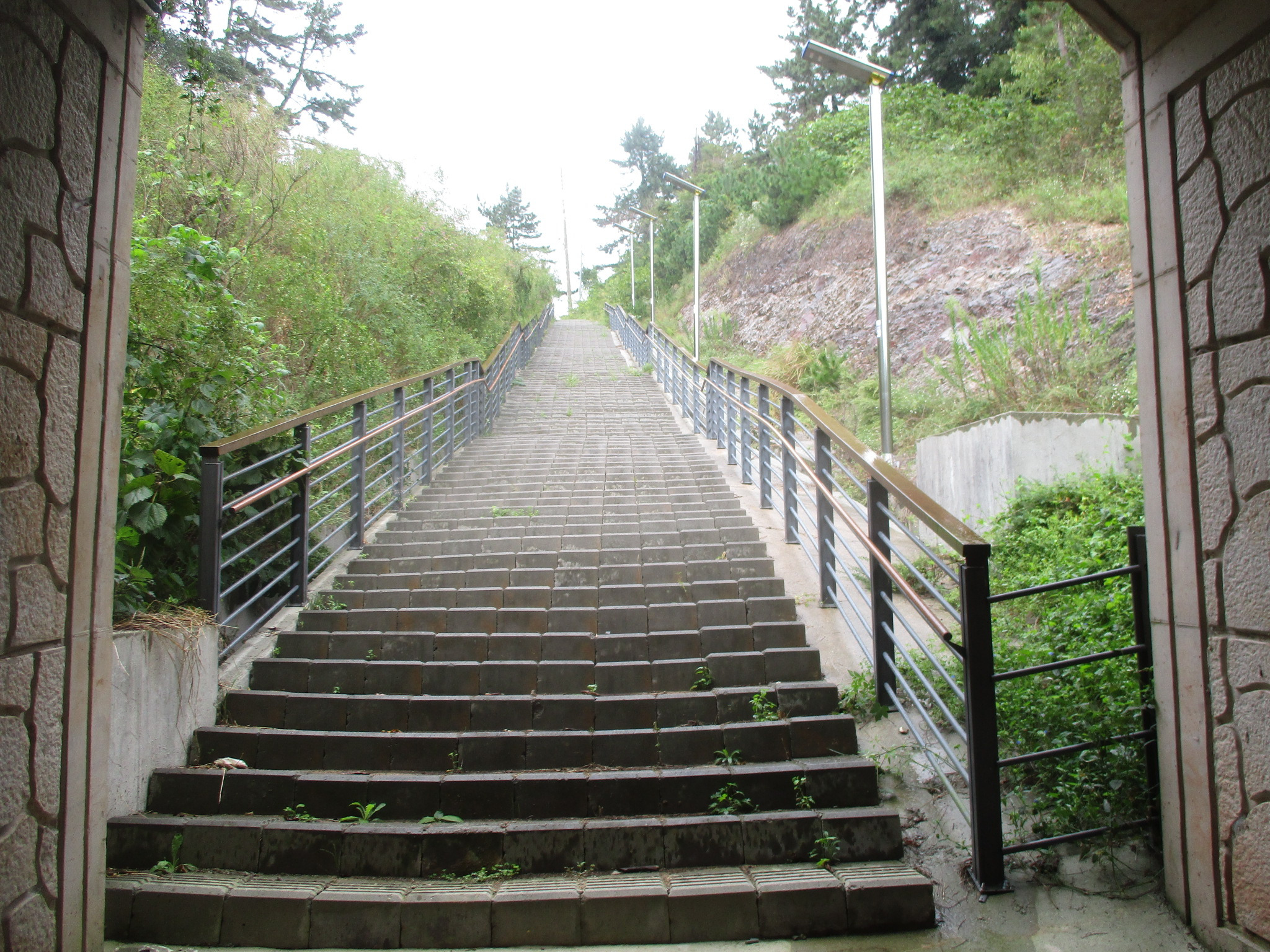 갈림길에서 선유교를 질러 갈라꼬 복판 세멘 포장도로 따라가다 왼쪽 계단으로 올라서면 쉼터 정자가 보이는 널분 광장은