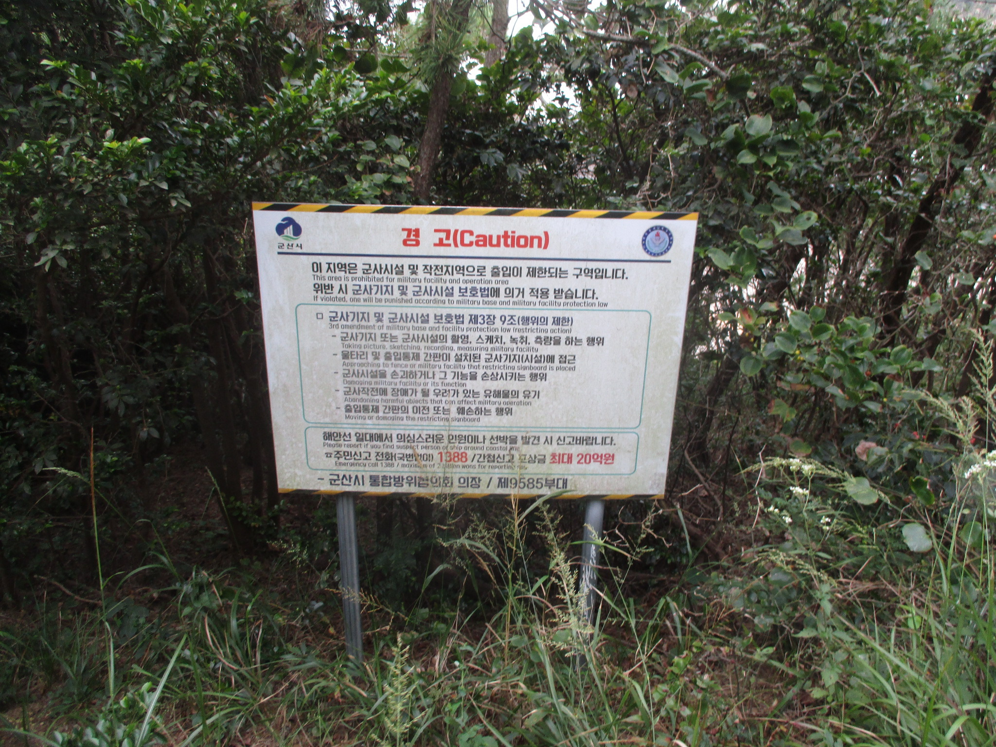 물한모금 하고 한참 쉬다가 다시 둘레길을 이어 가는데 갈림길에 또 경고판이!~ 뭐꼬 이거!~ 이분에는 군부대 경고문이다!~