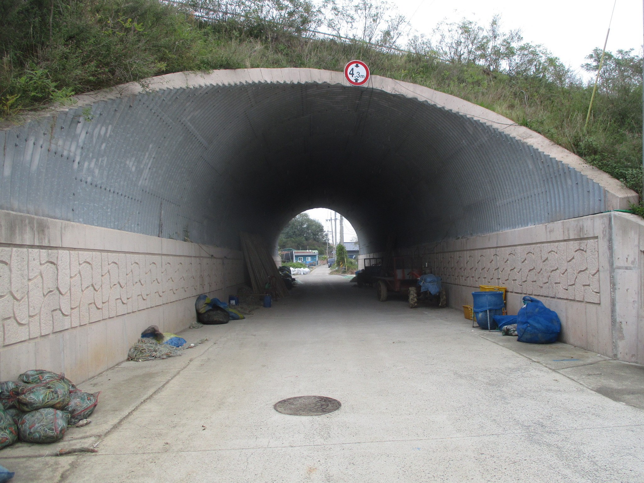 오른쪽 굴따리를 빠져 나오마 이내 만나는 반사경 갈림길에서는 아무 표식도 없는 왼쪽으로~ 차들도 겨우 댕기는 좁은