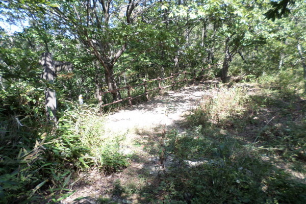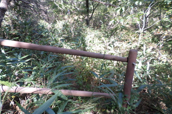 능선을 갈아타고 잠시 하산하듯 내려서면 입산금지 카미 목책이 길을 턱 막아선다!~