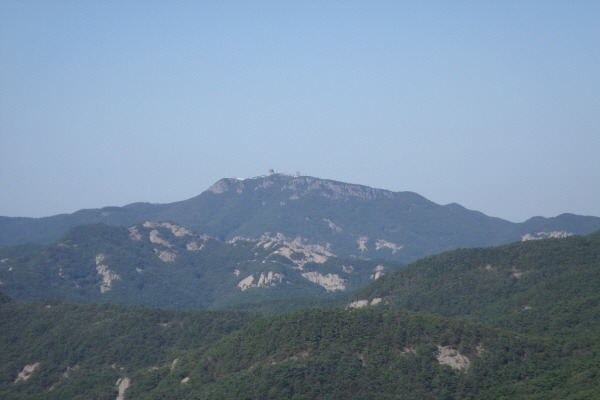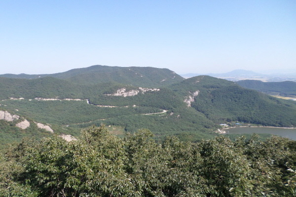 바위전망대에서 올라 동쪽방향 우측으로 눈을 돌리니 오른쪽 우동제뒤 남대봉이 보이고
