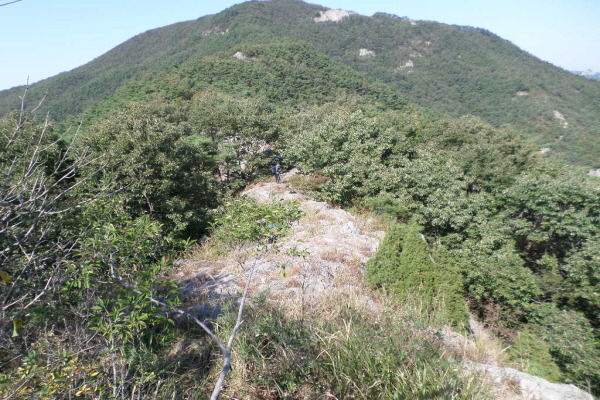 희미한 등로를 잠시 이어가다 보면 용각봉에서 되돌아가 우측 능선을 타는