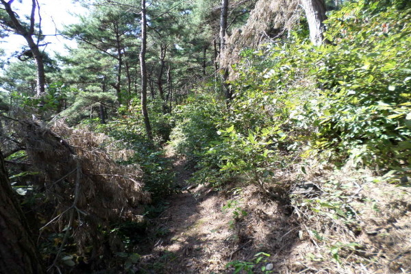 넝쿨길과 바위길을 벗어나면 다시 등로는 잔잔해지고 좌측으로 휘어지는 능선을 벗어나