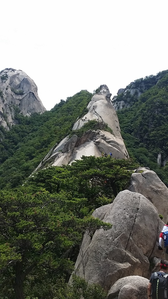 숨은벽암릉이하늘을 향해 솟구쳐 있는게 보인다. 오늘 이 암릉을 삼년만에 다시 오르게 된다.