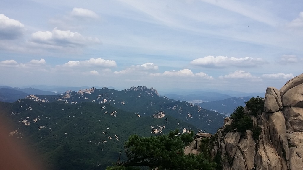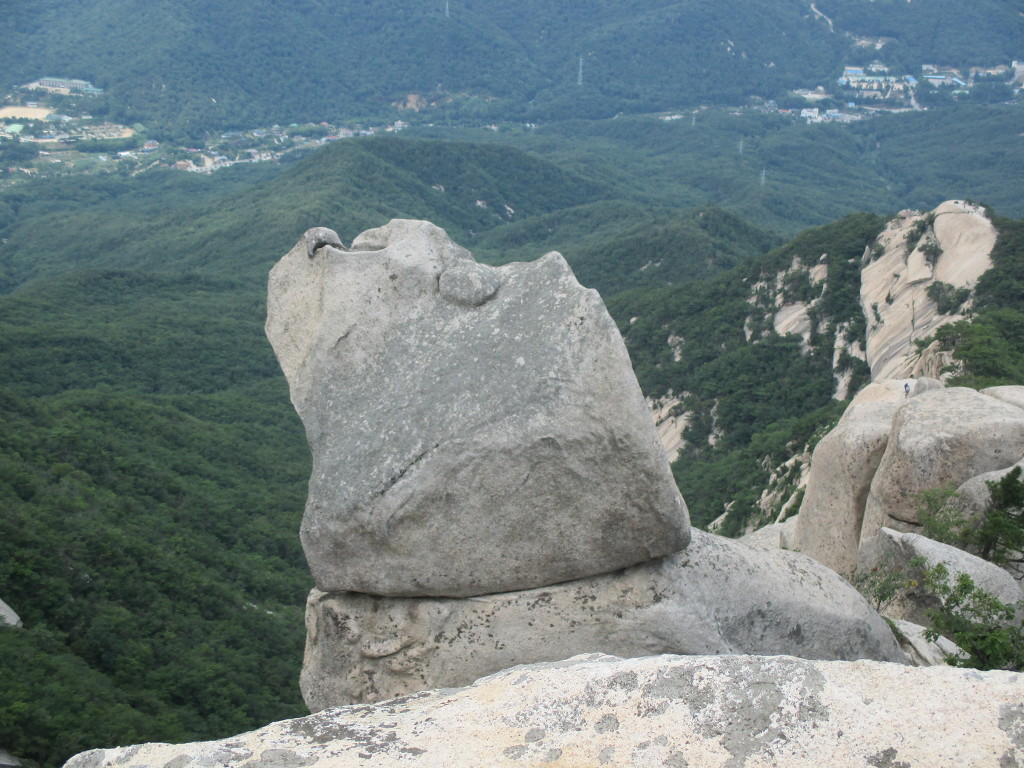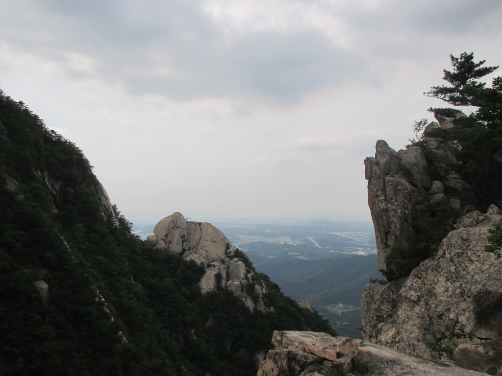 웅장한 자태가 보이고 오른쪽에는 삼각산의 주봉인 백운대의 시원한 자태가 보이며 그 중간에 좁고 길게 솟아 오른