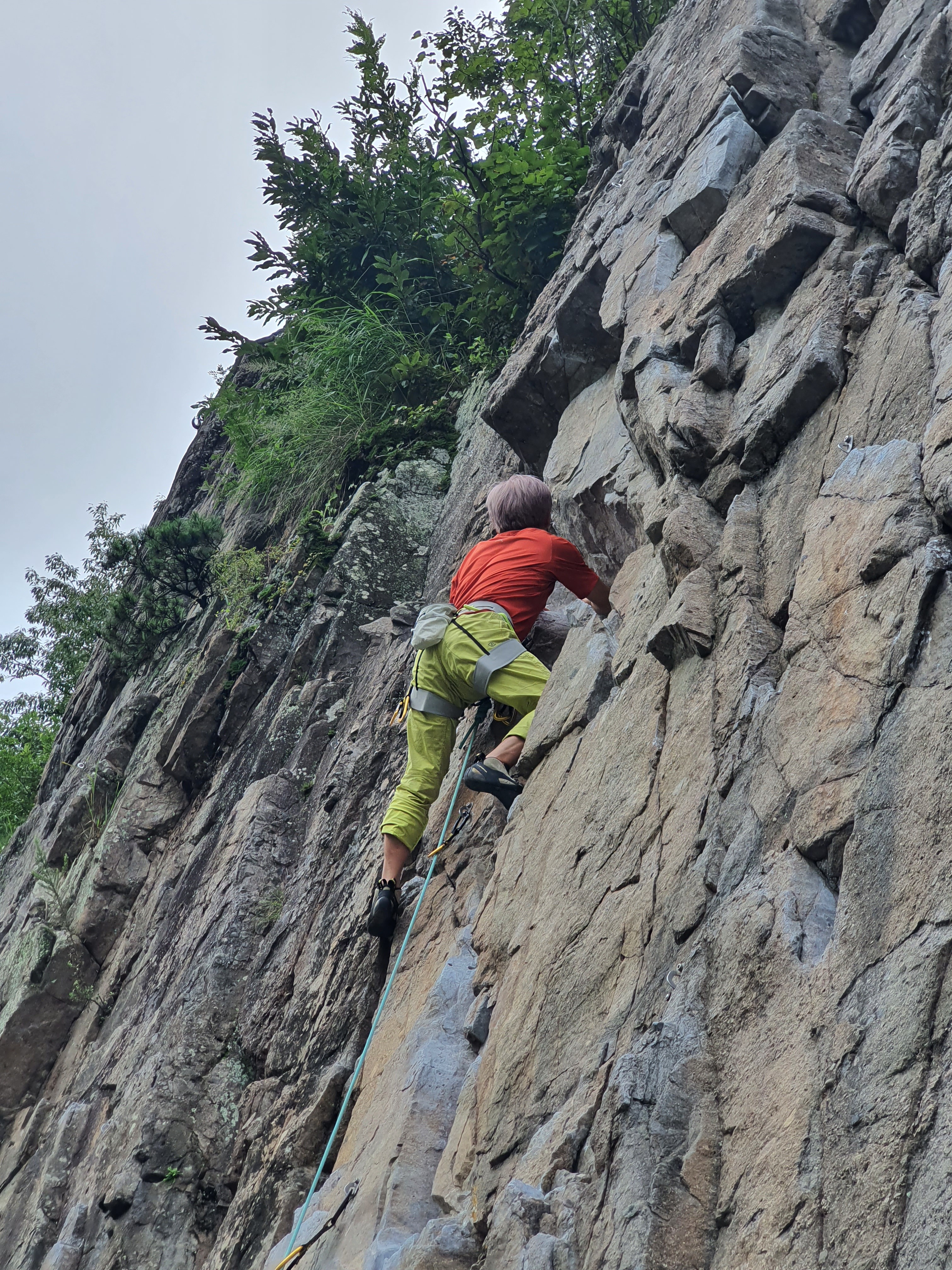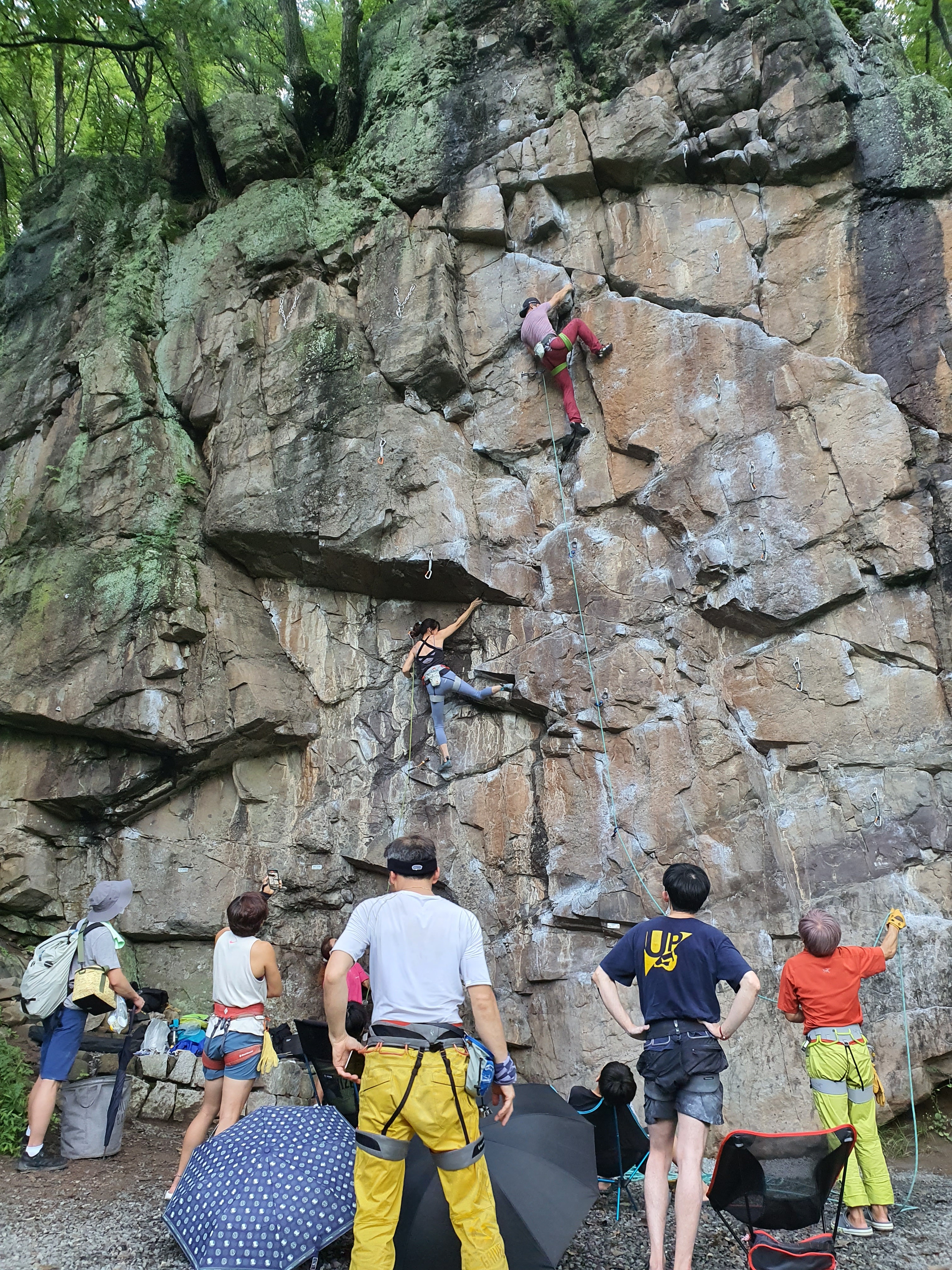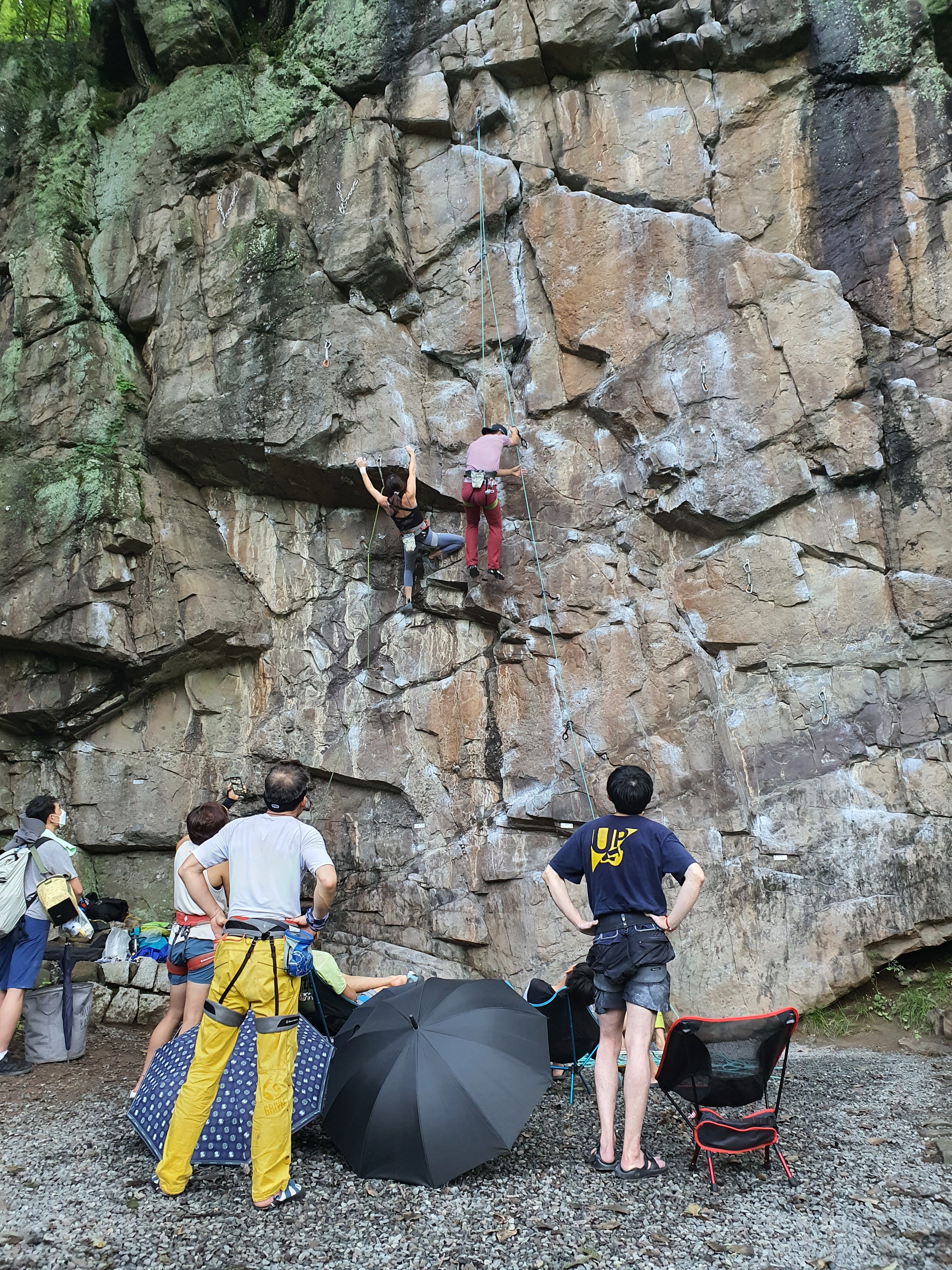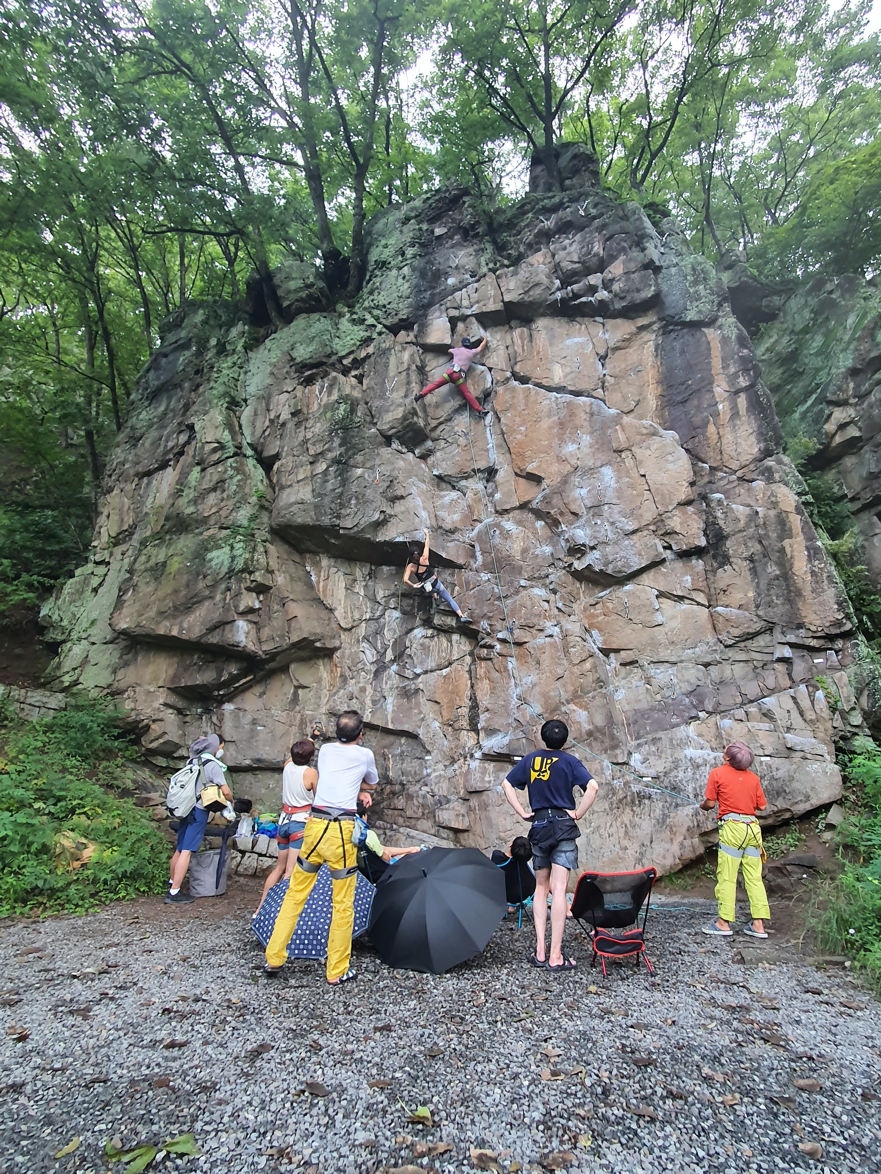 연경의 바위는 거의 각도가 오버행이라 비에 잘 젖지를 않습니다.