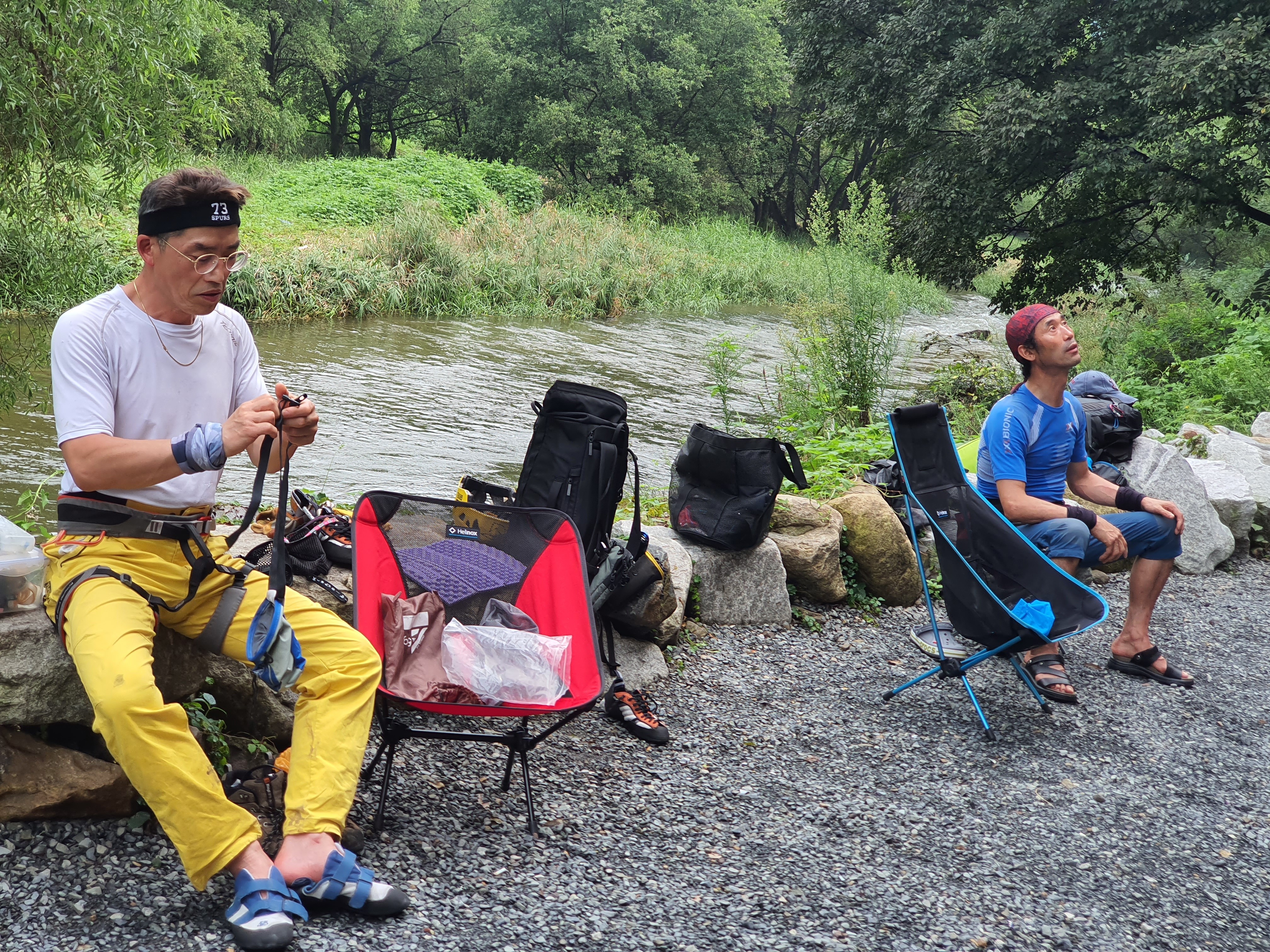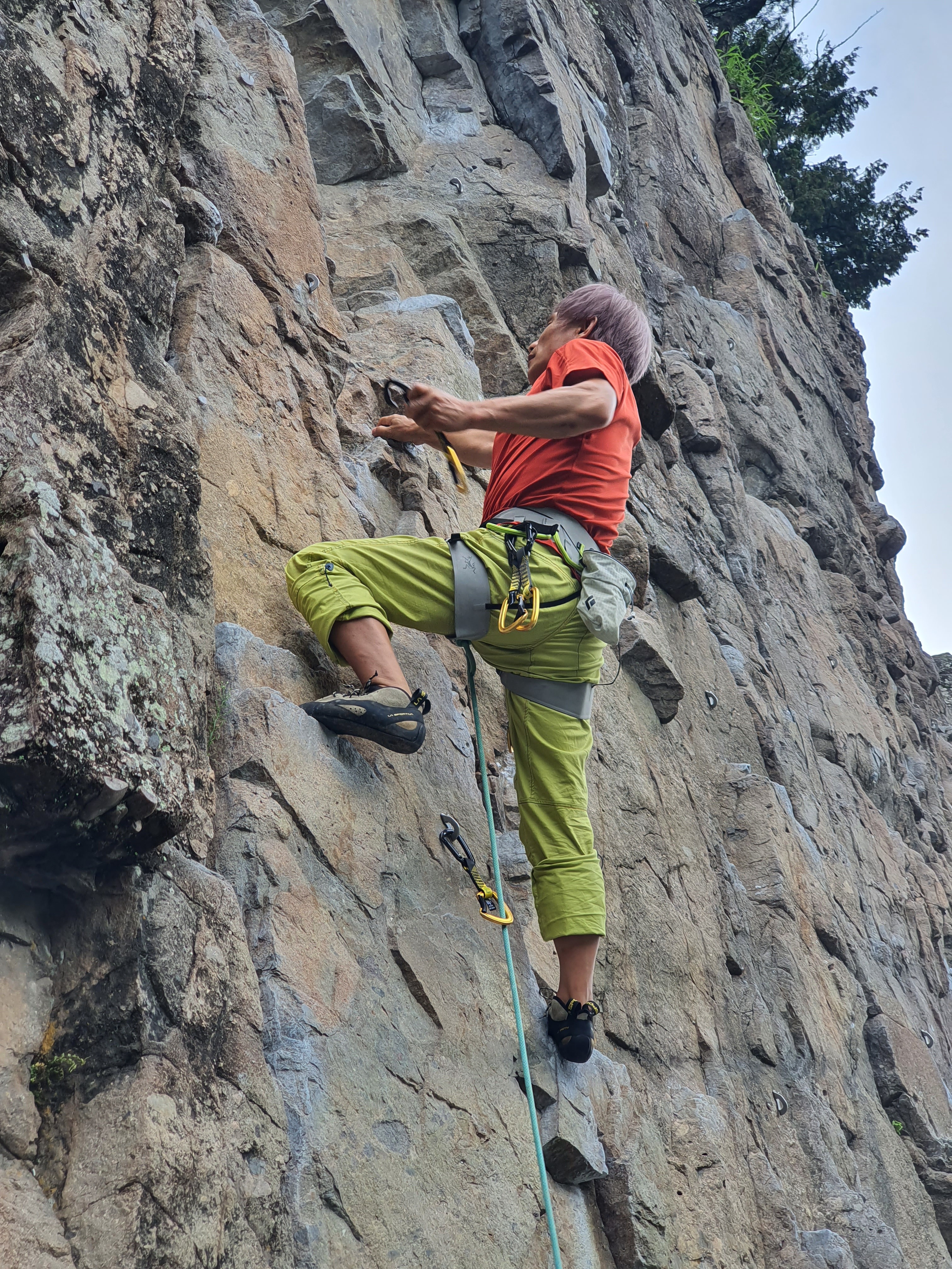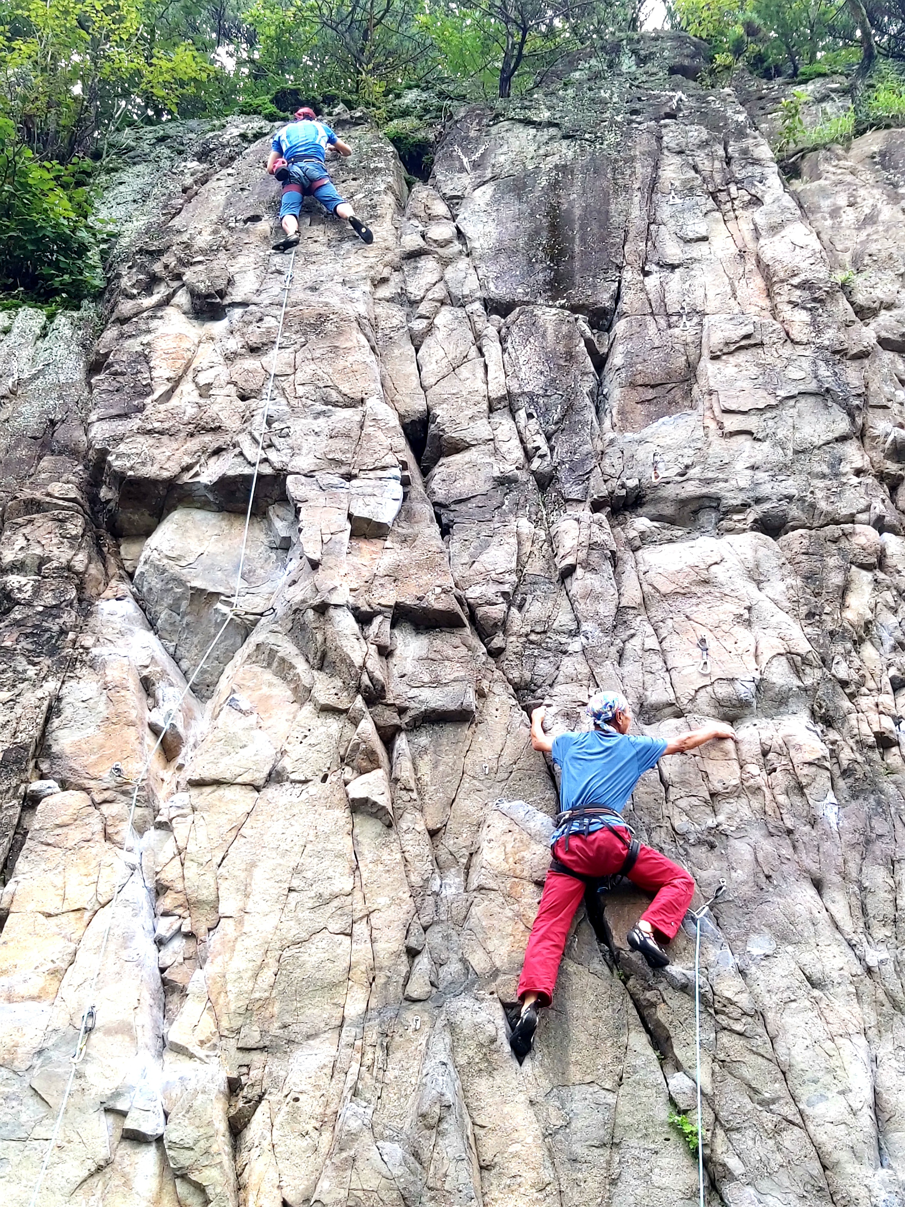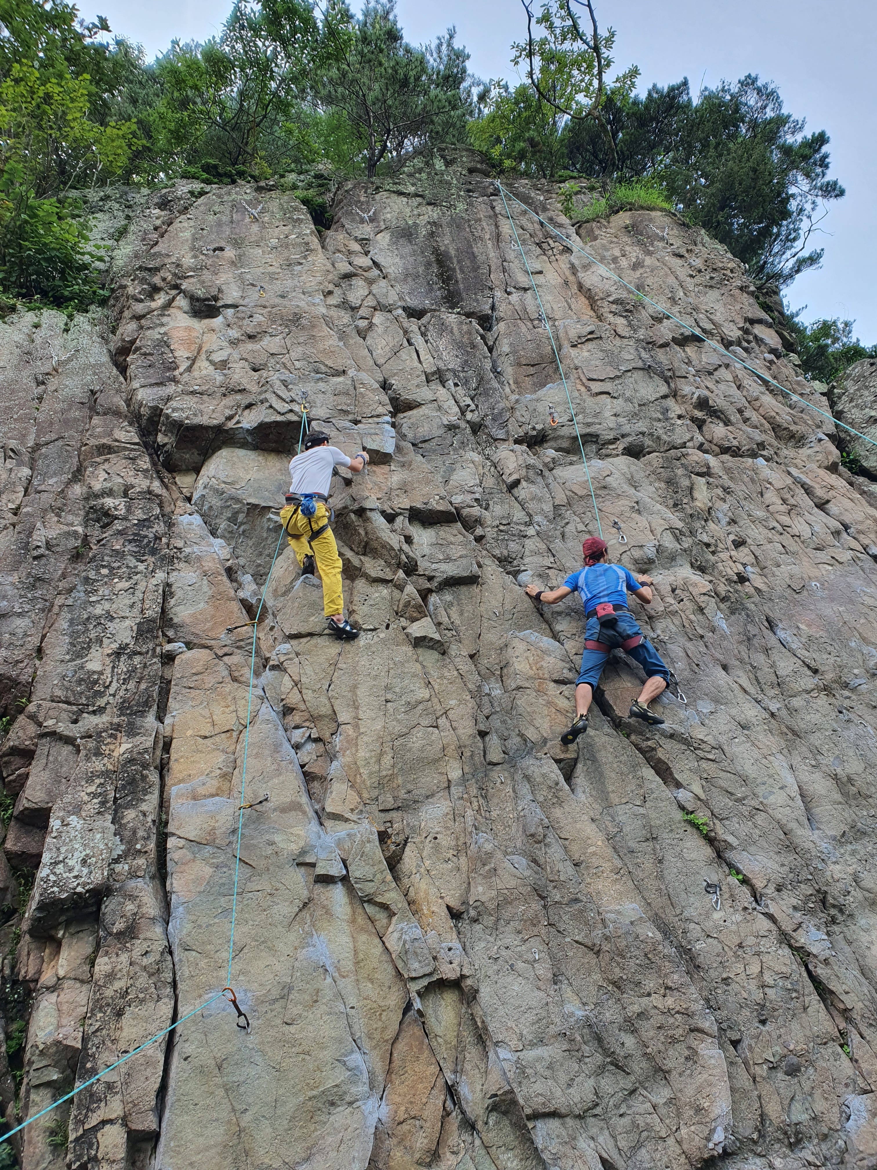 연경의 바위는 거의 각도가 오버행이라 비에 잘 젖지를 않습니다.
