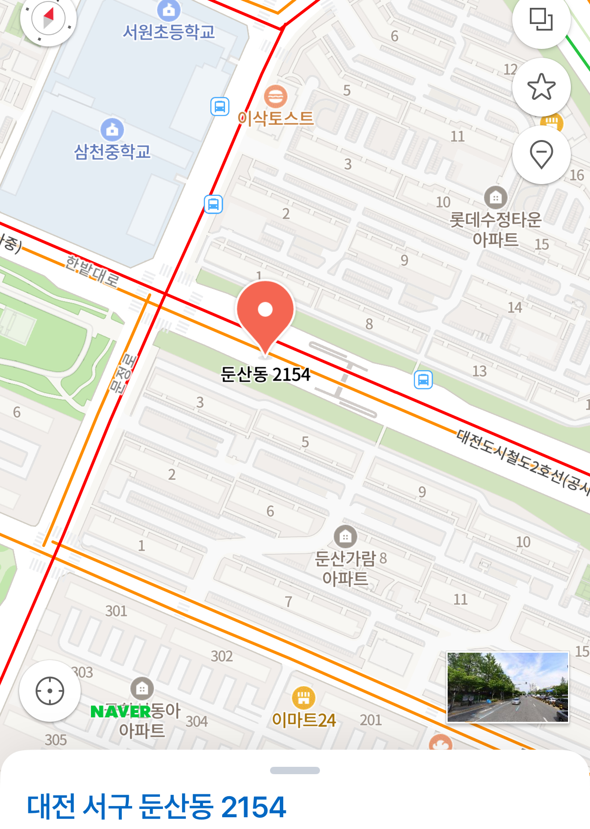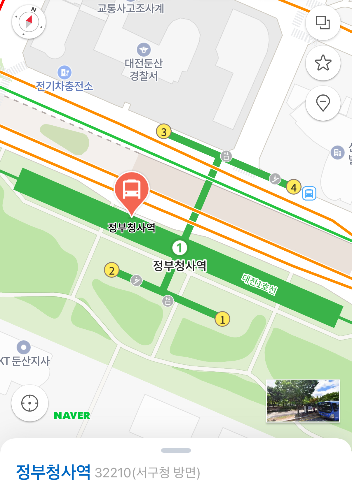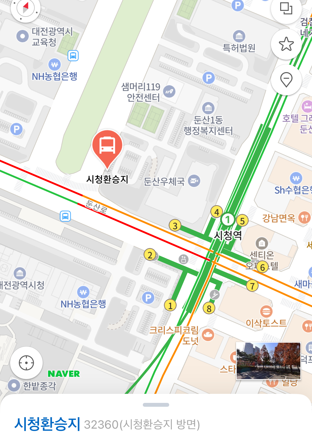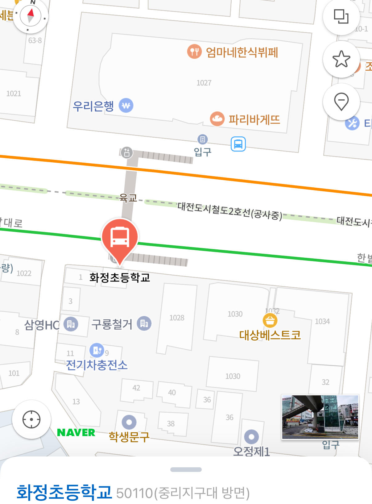 [네이버 지도](둔산우체국뒤 버스정류장)