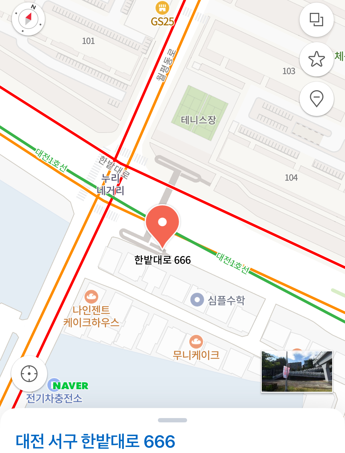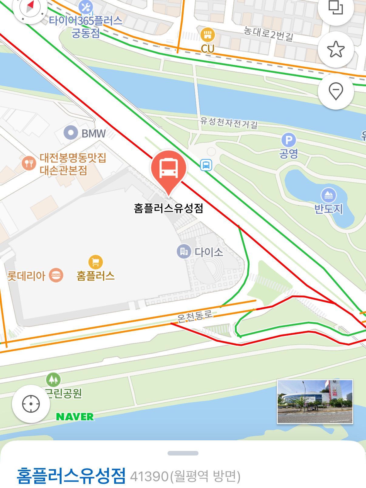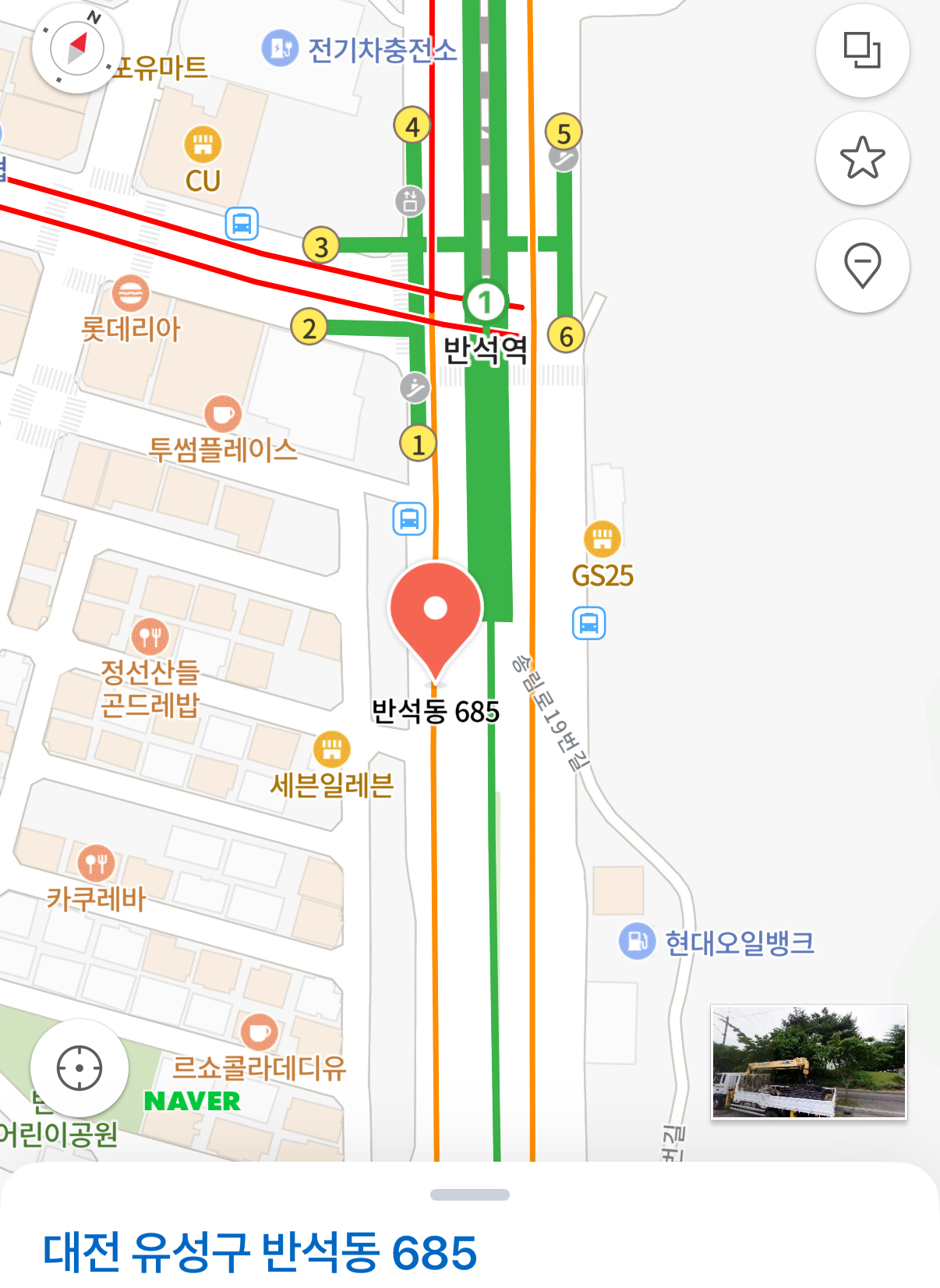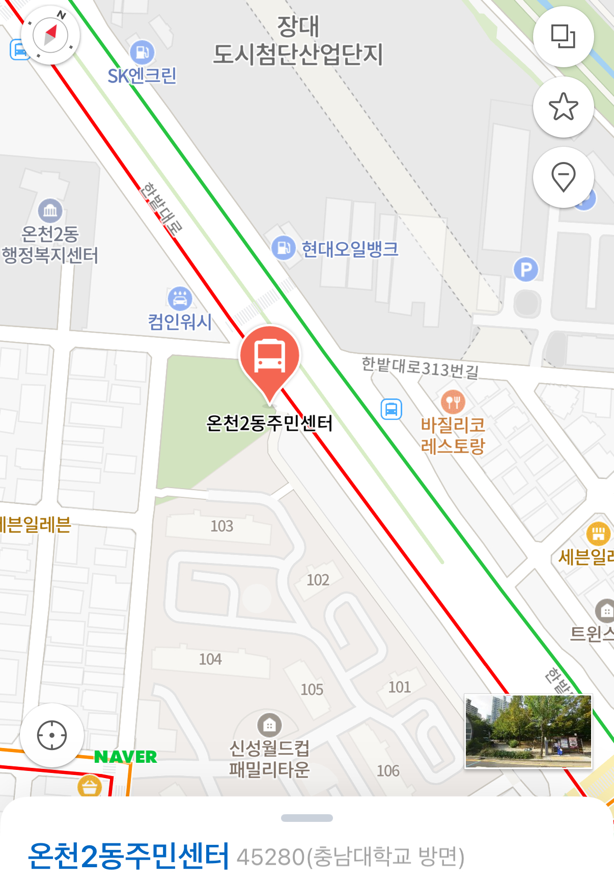 [네이버 지도](둔산우체국뒤 버스정류장)