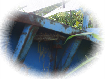 한쪽에 둔 경운기에 접시 만한 벌집이 있네요..