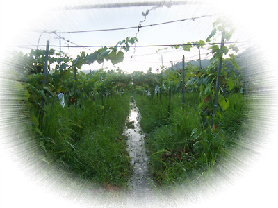 포도나무 사이로 임시로 물길이 열렸습니다.